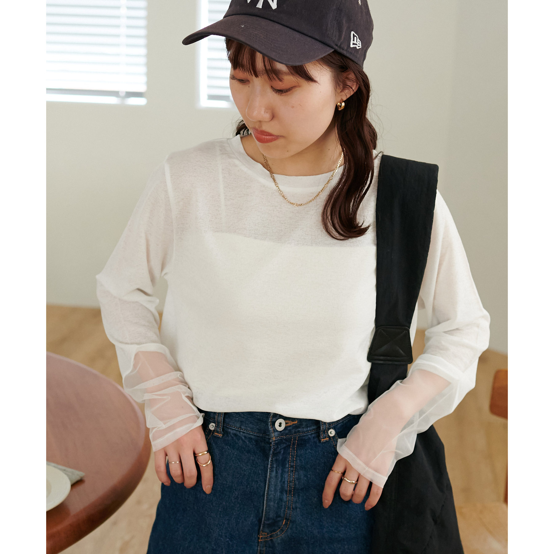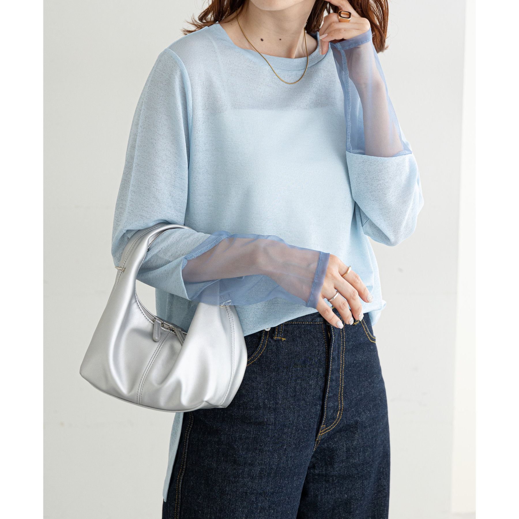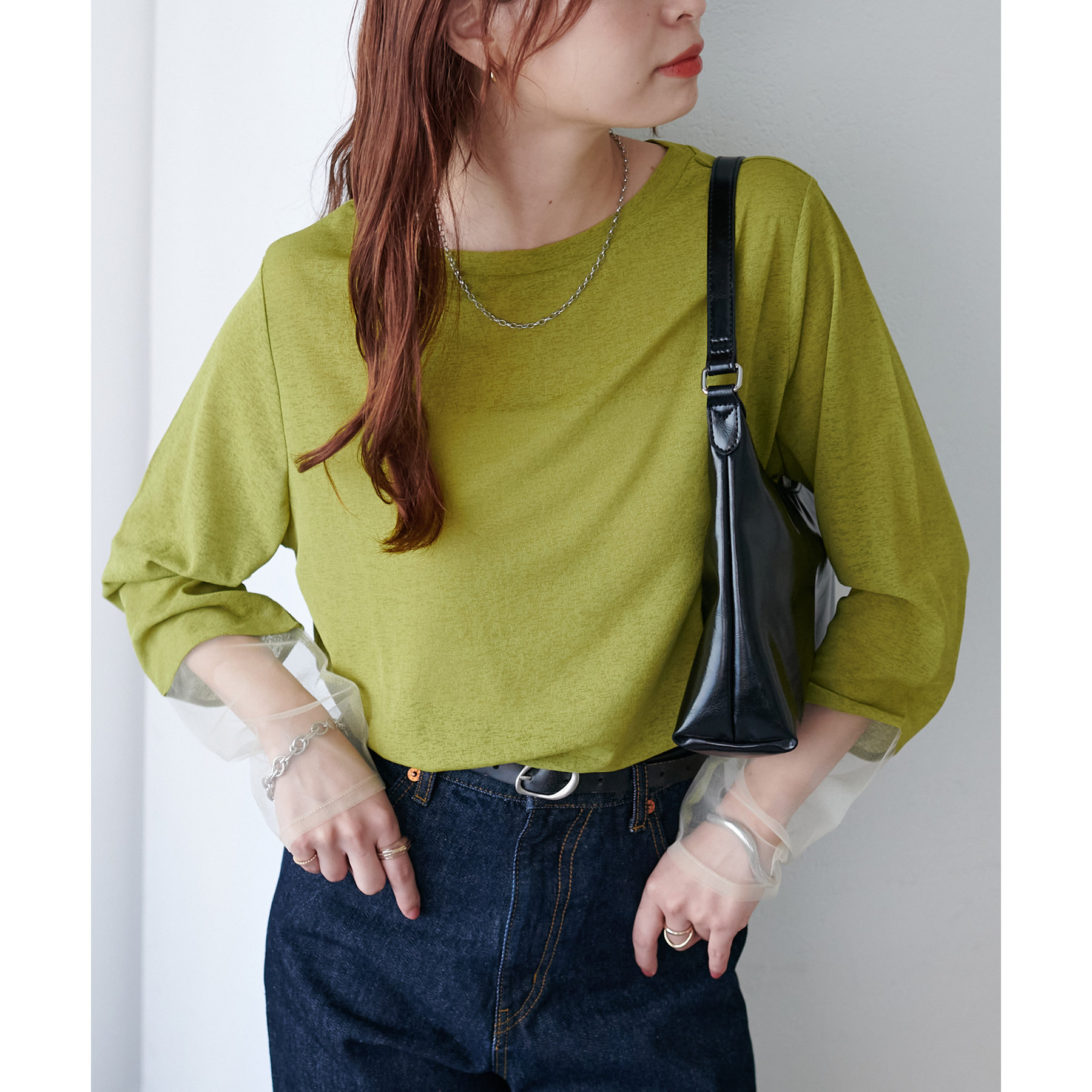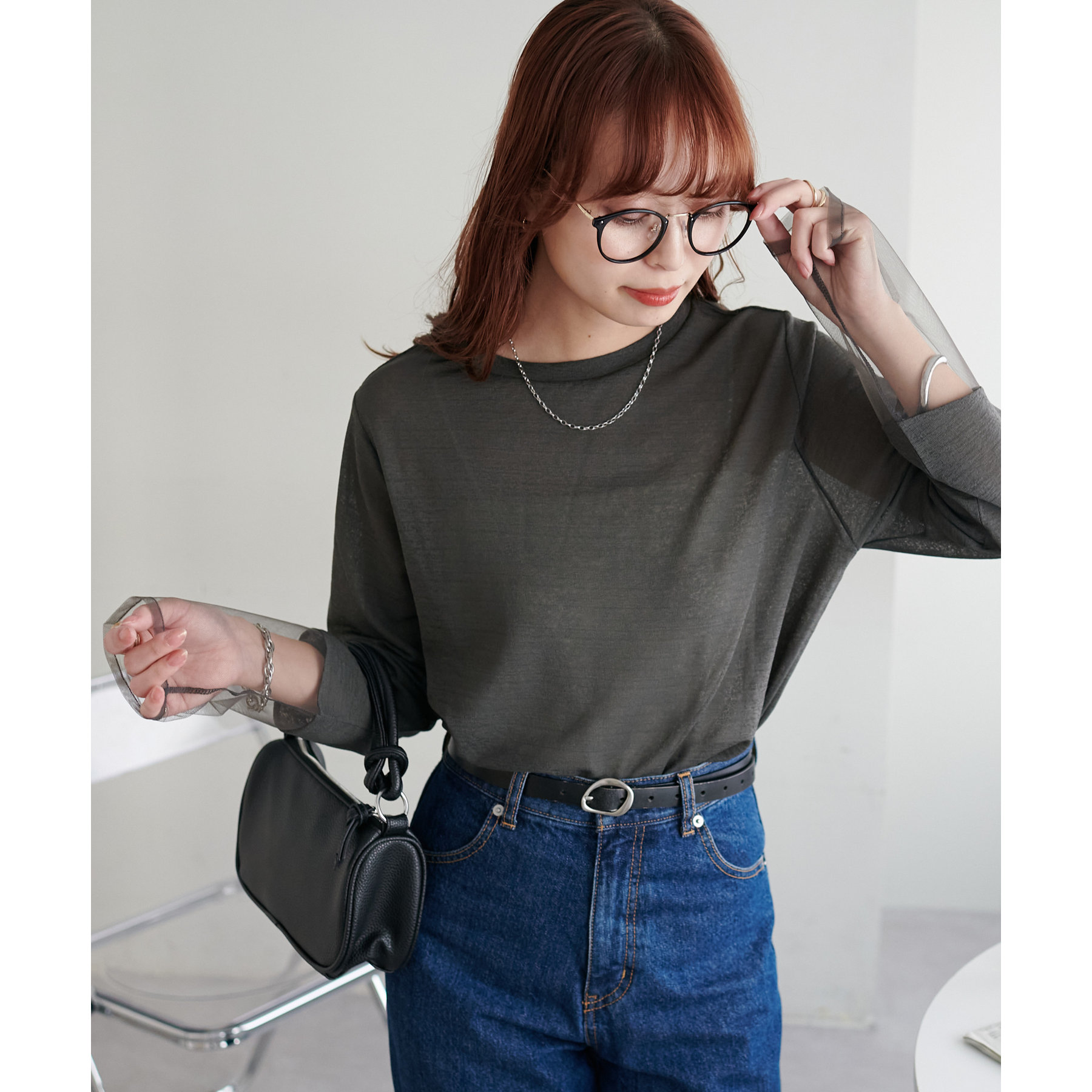 【新色追加!/全16色展開】シアー袖切替プルオーバー≪WEB限定カラーあり≫