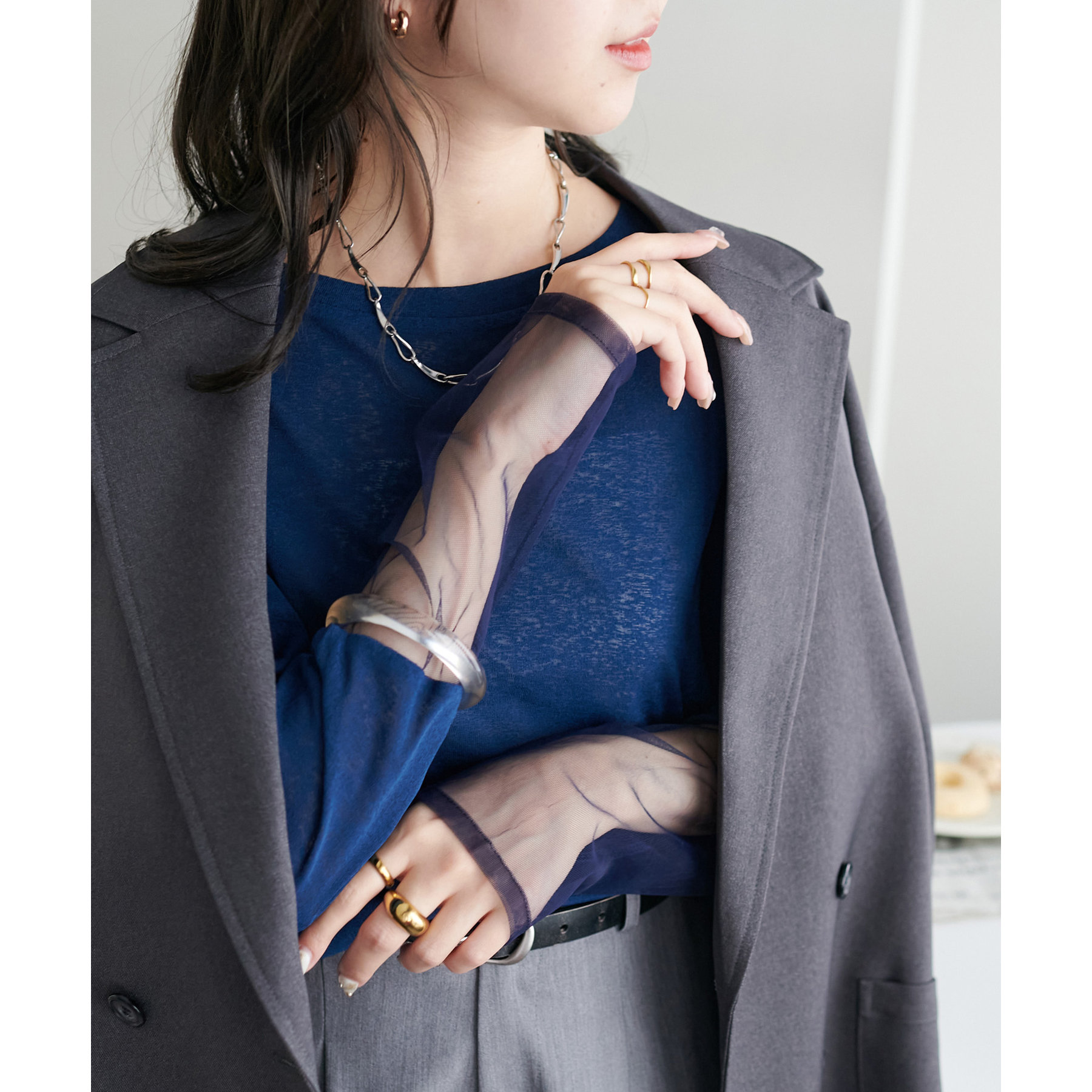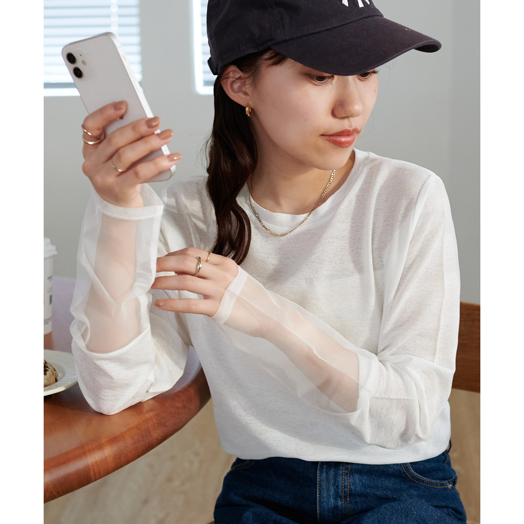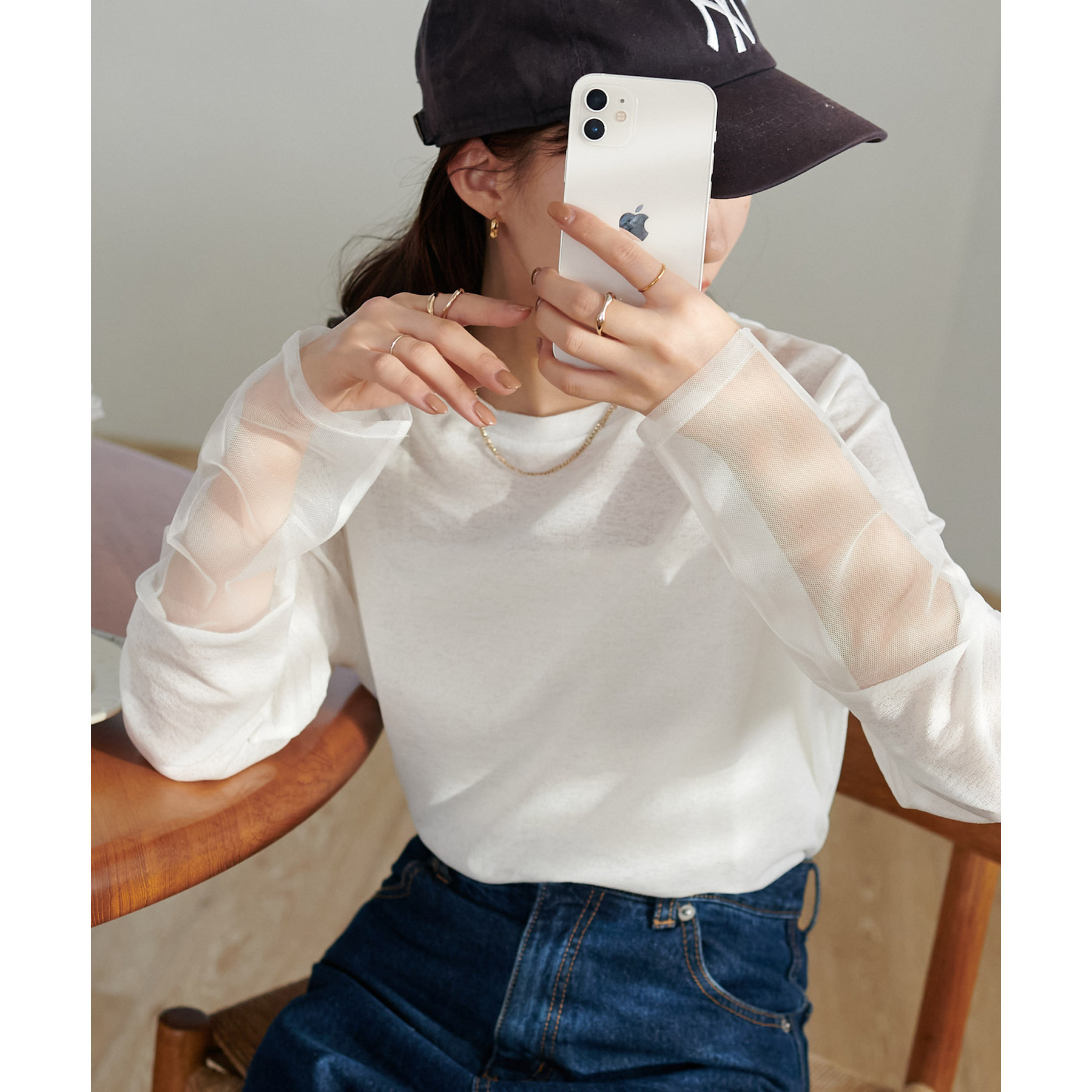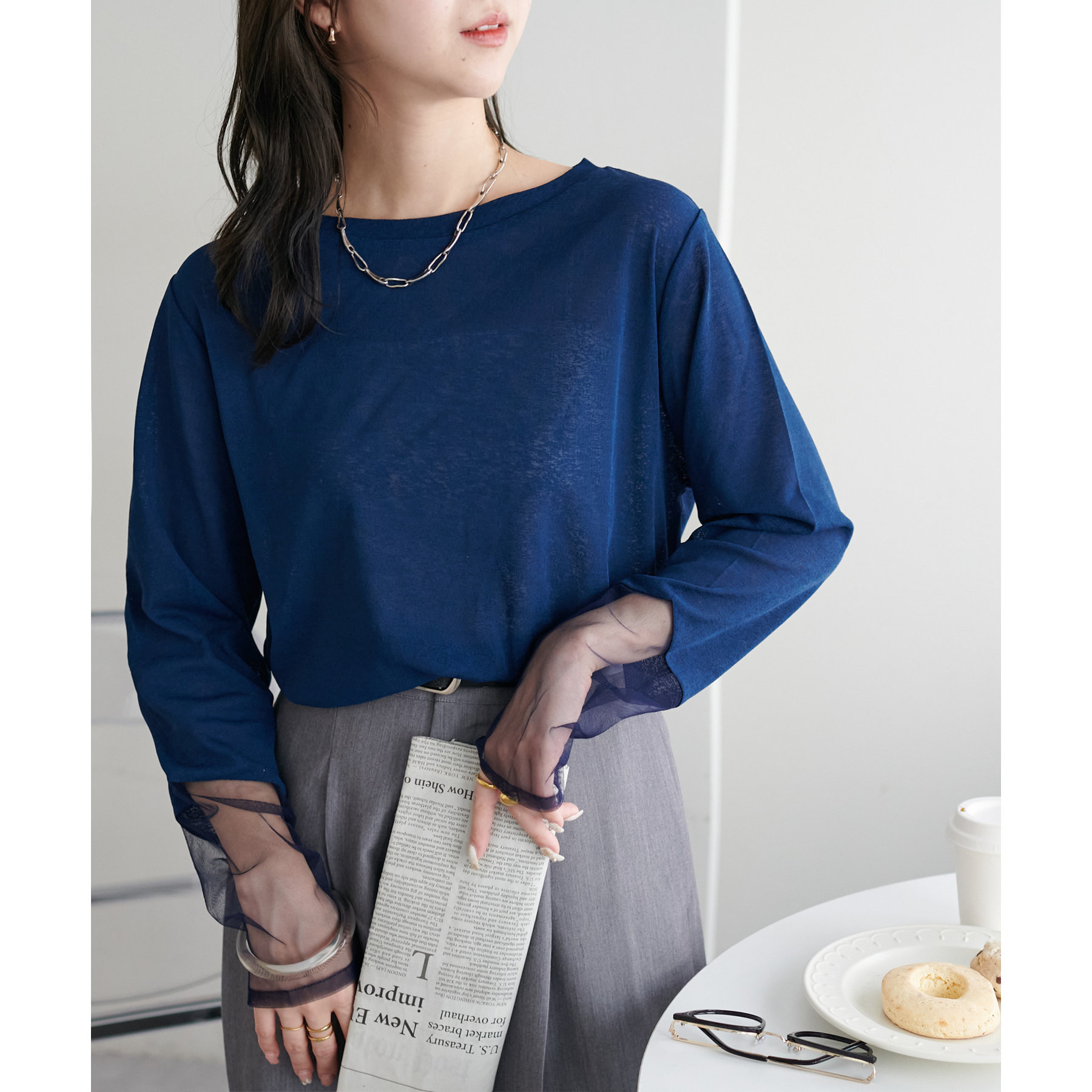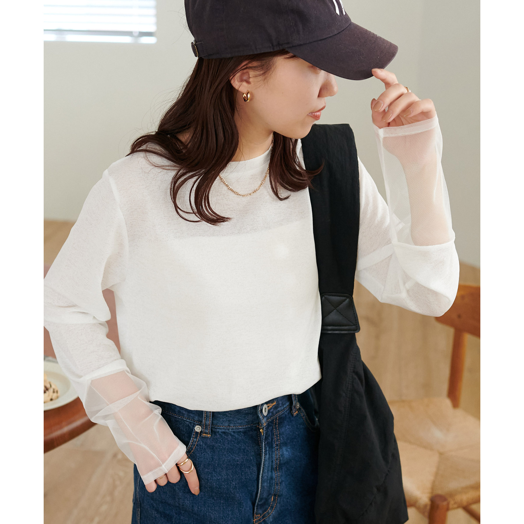 【新色追加!/全16色展開】シアー袖切替プルオーバー≪WEB限定カラーあり≫