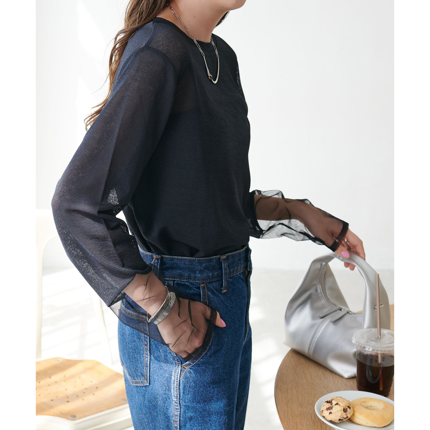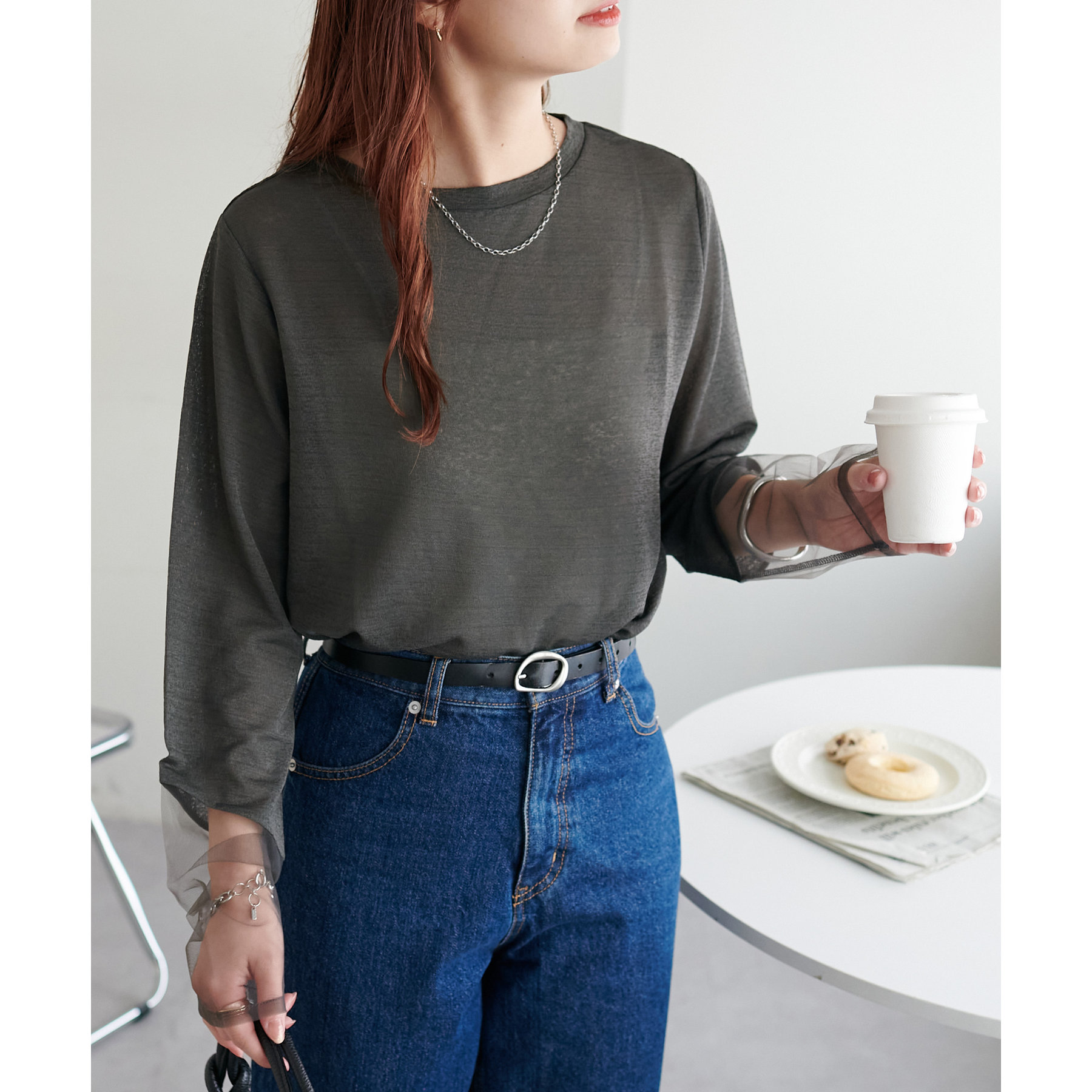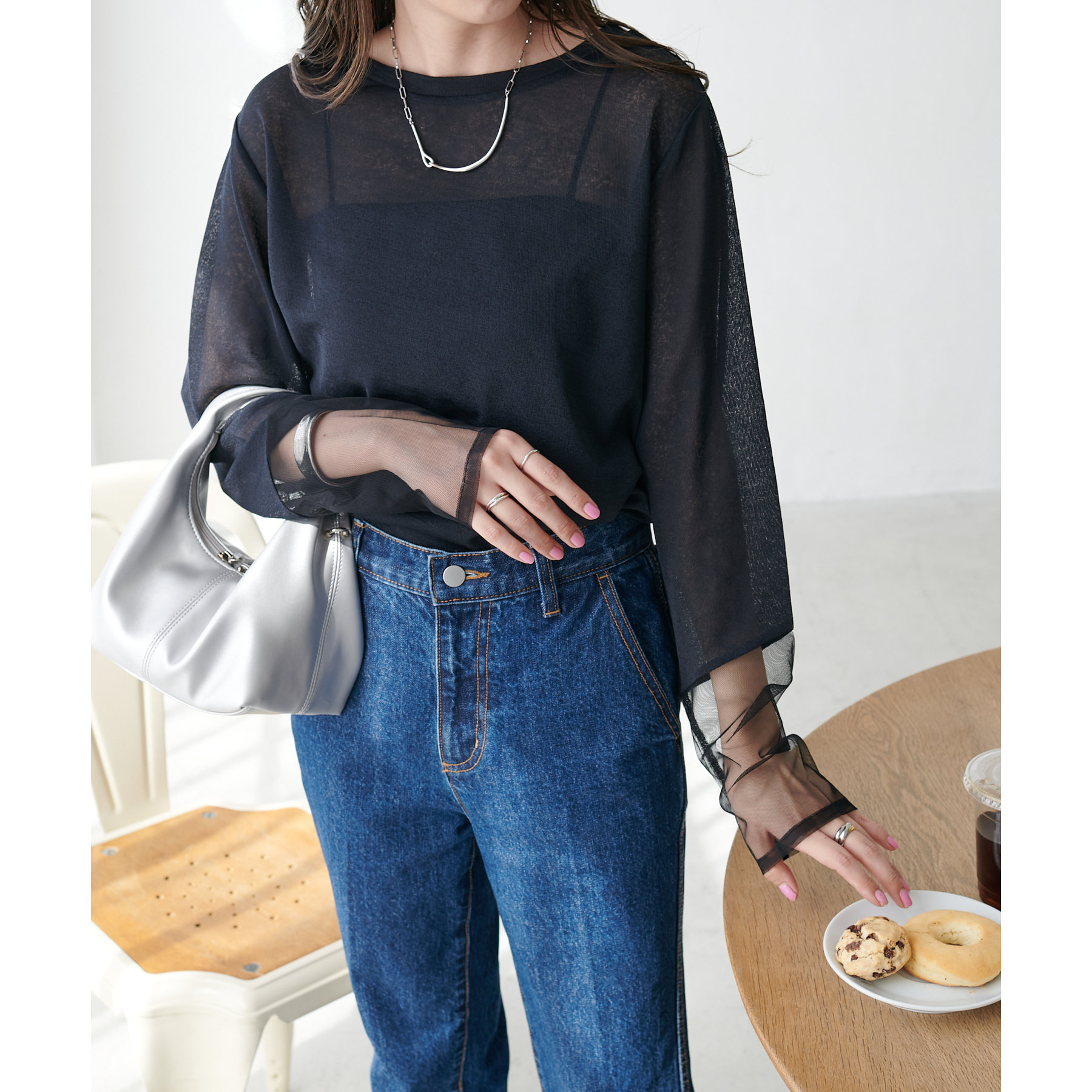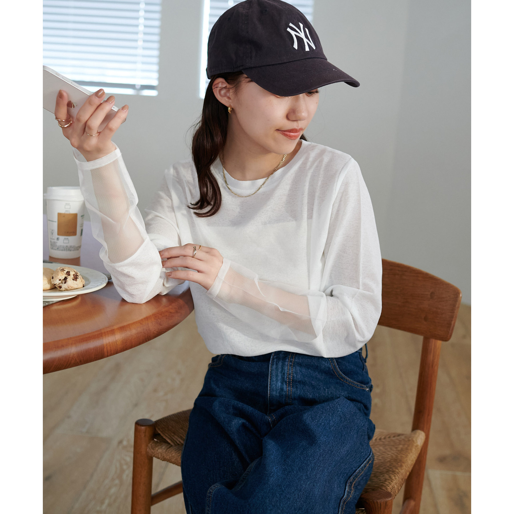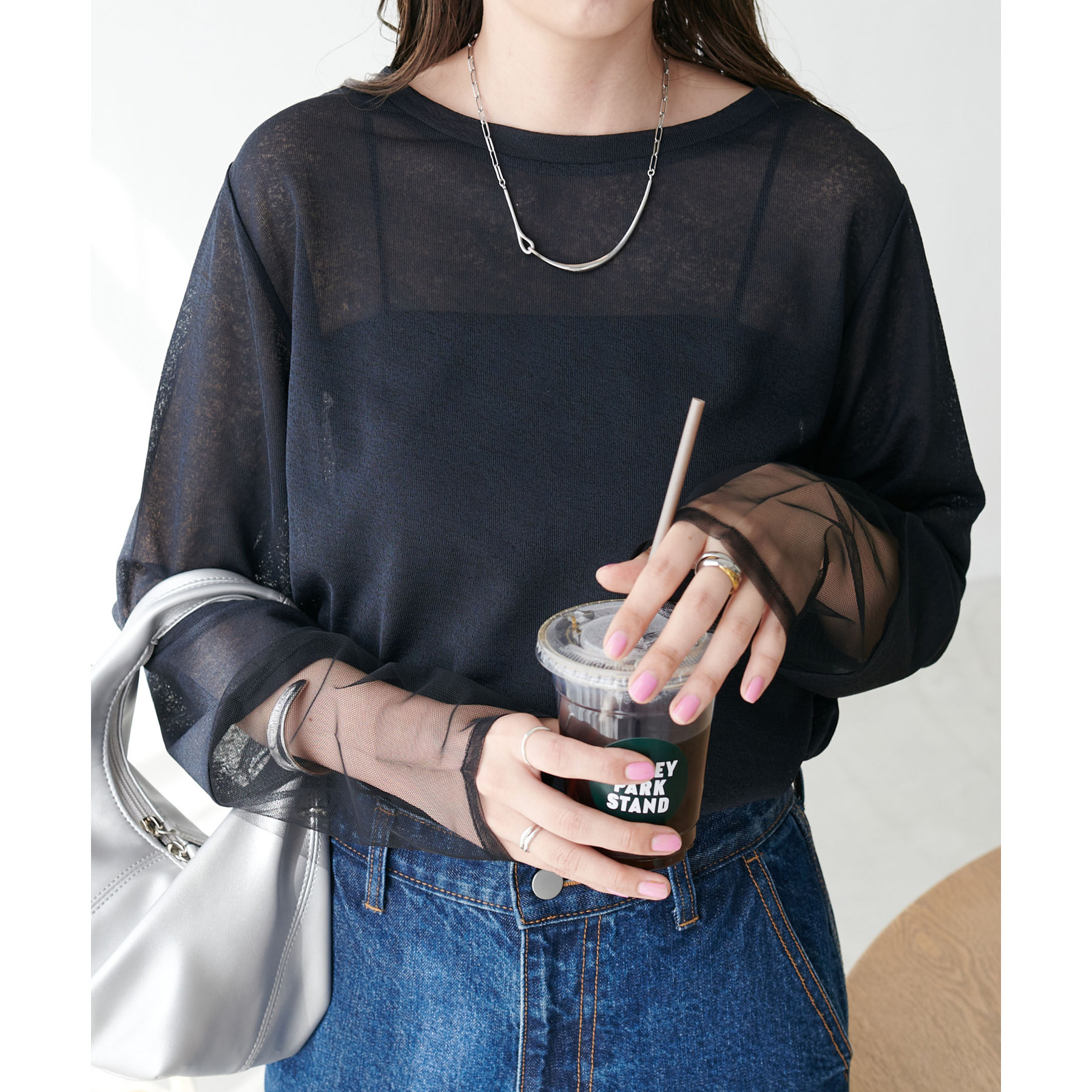 【新色追加!/全16色展開】シアー袖切替プルオーバー≪WEB限定カラーあり≫