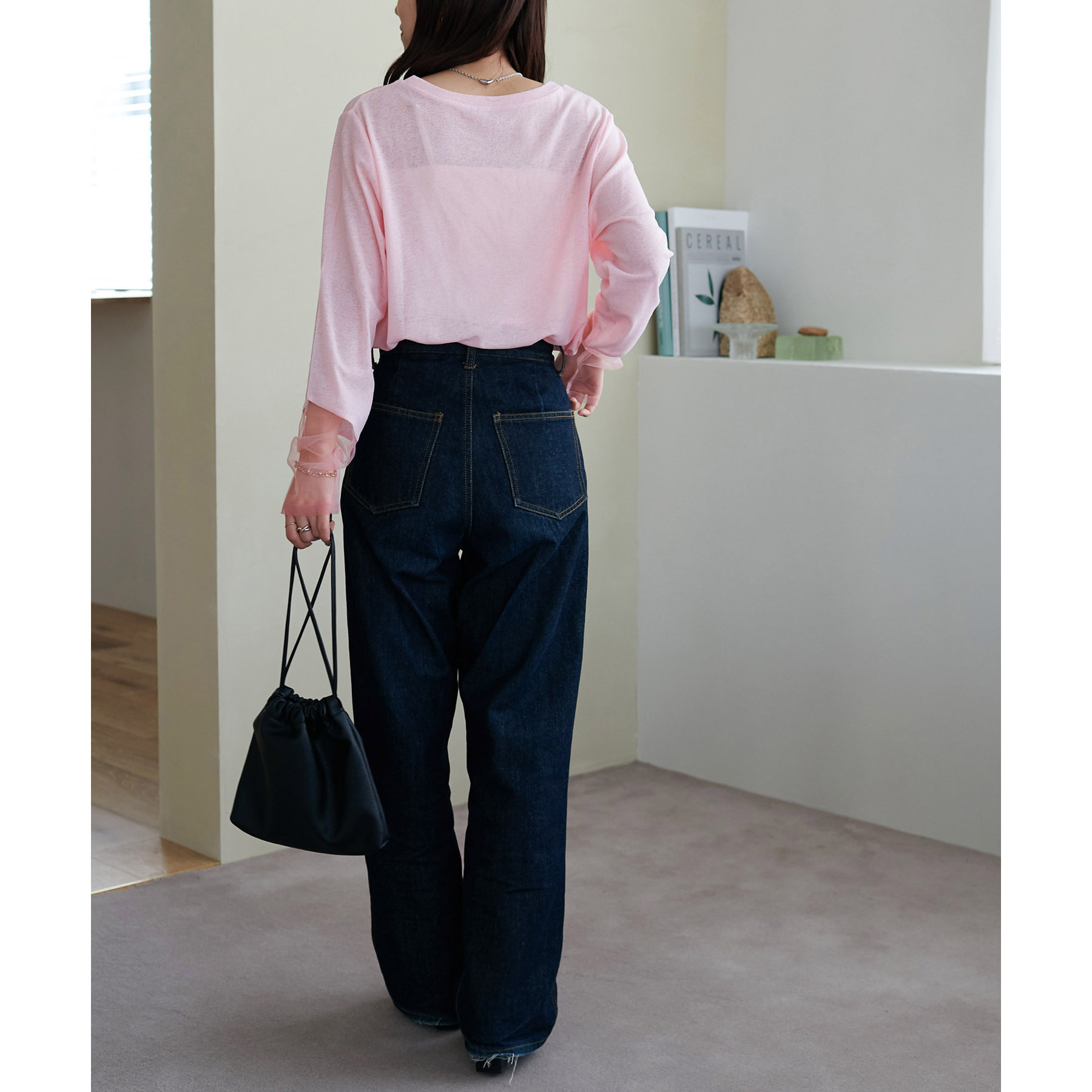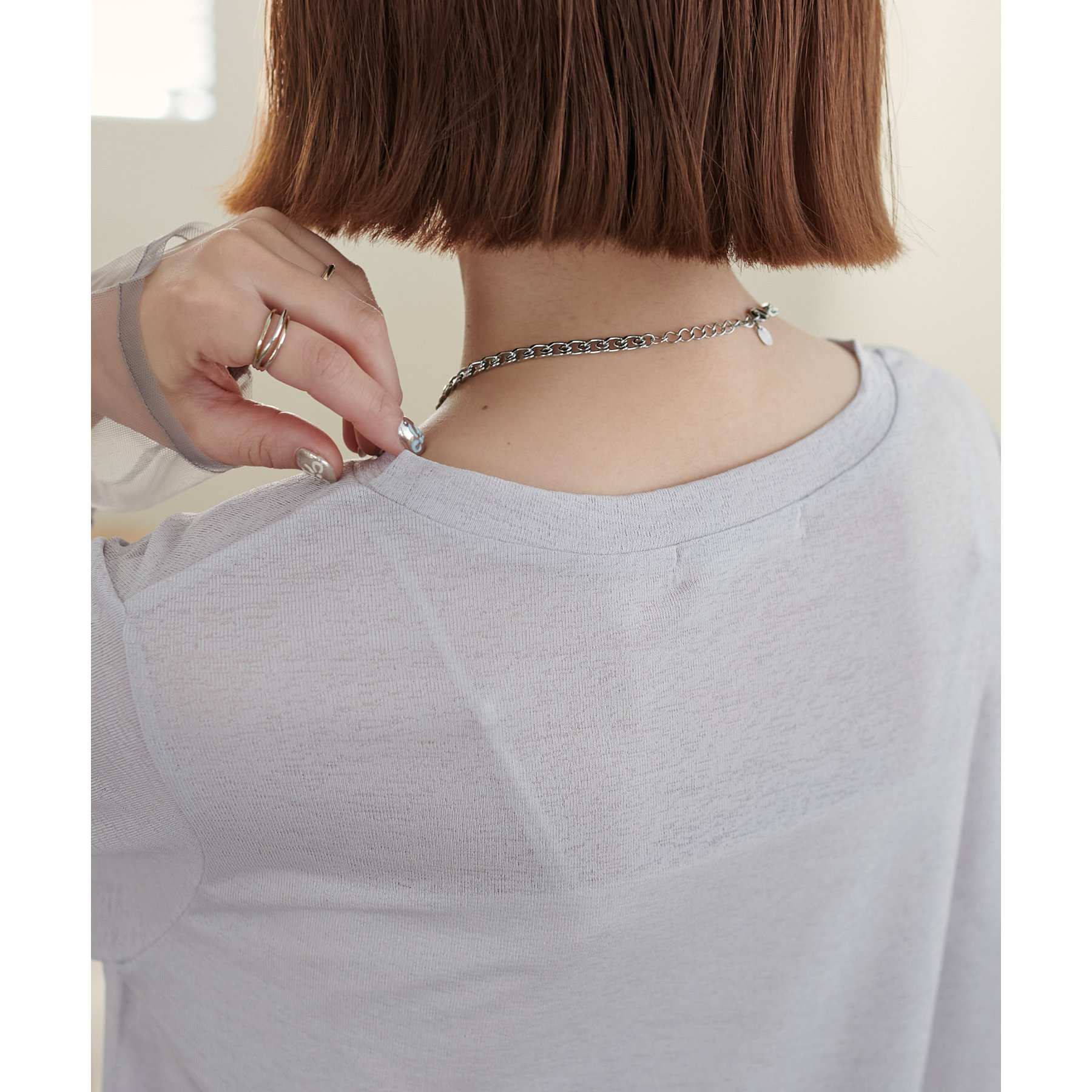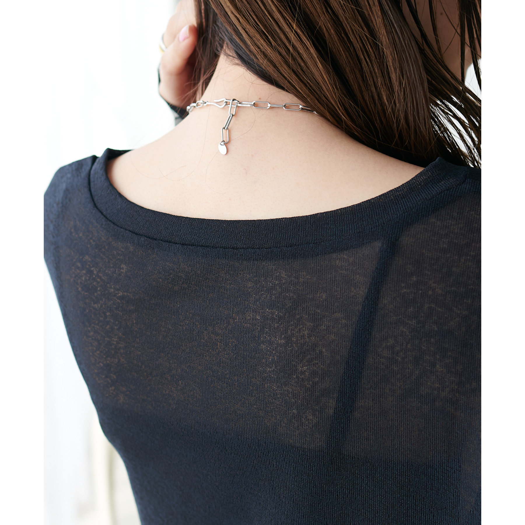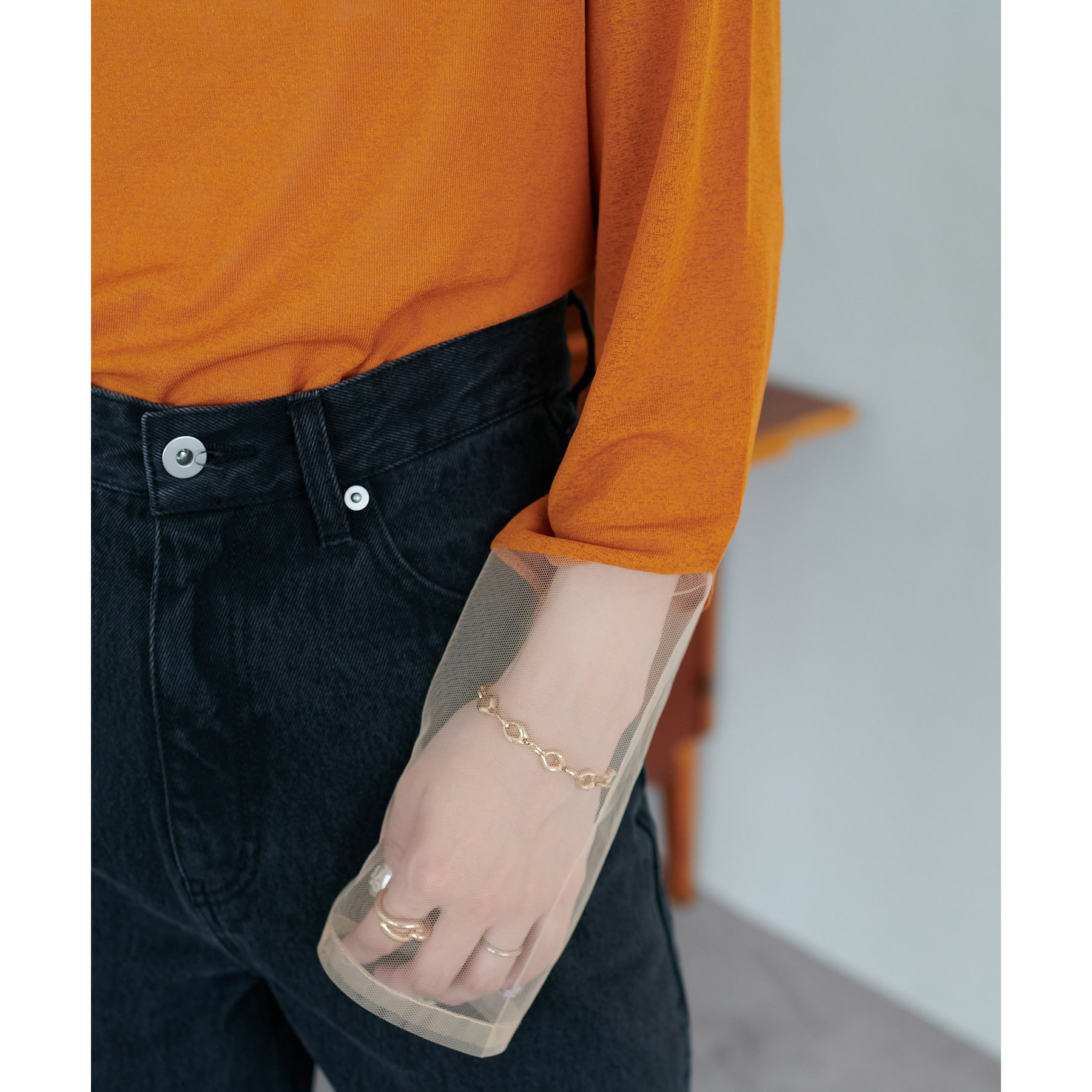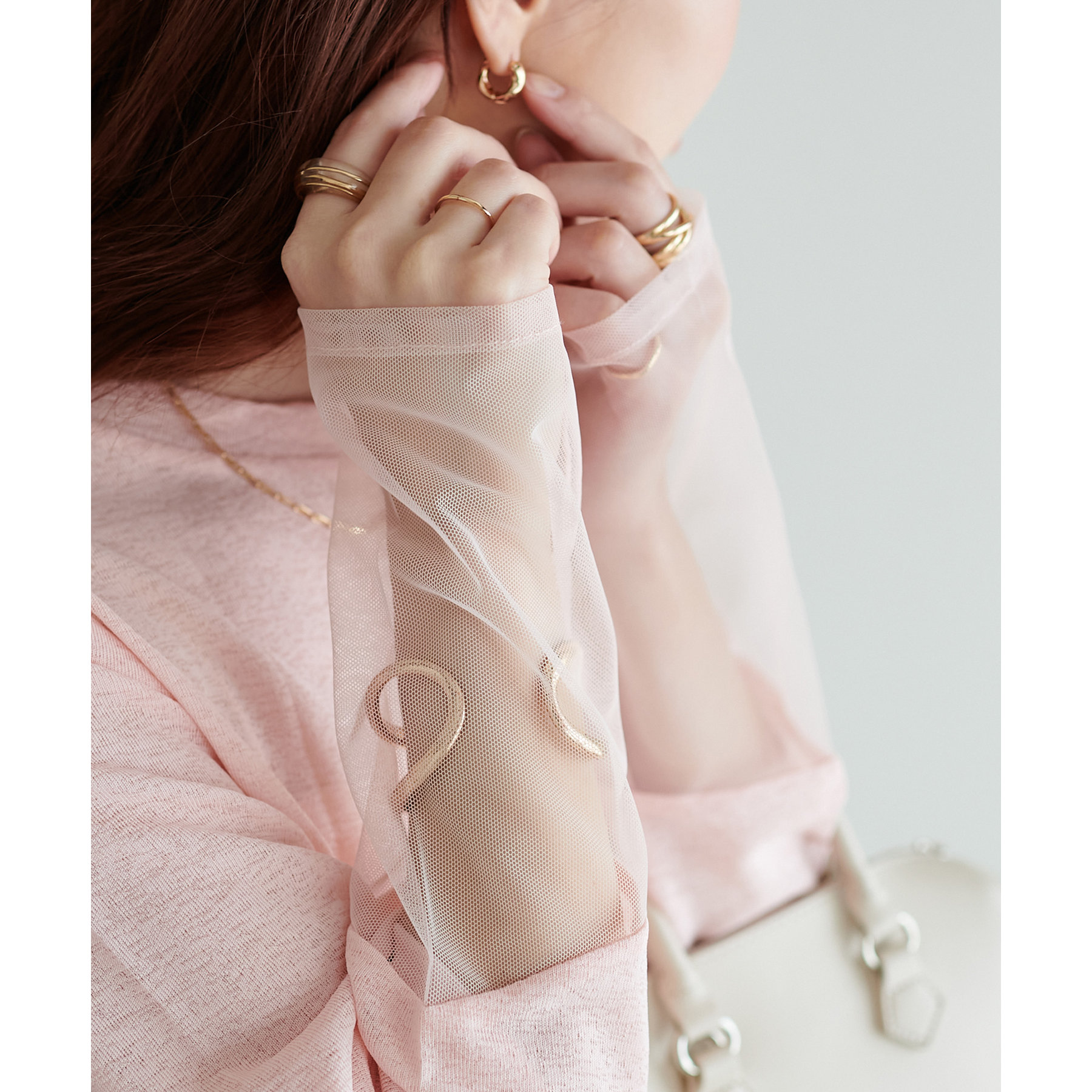 透け感が涼やかな印象を与え、シーズンスタイルにぴったりなプルオーバー。袖口の切り替えがアクセントになり、シンプルなコーディネートに抜け感を演出します。長めの着丈にはサイドスリットを入れ、タックアウトしても様になるデザインに。一枚ではもちろん、ジャケットやワンピースなどのインナーとしても活躍するアイテムです♪