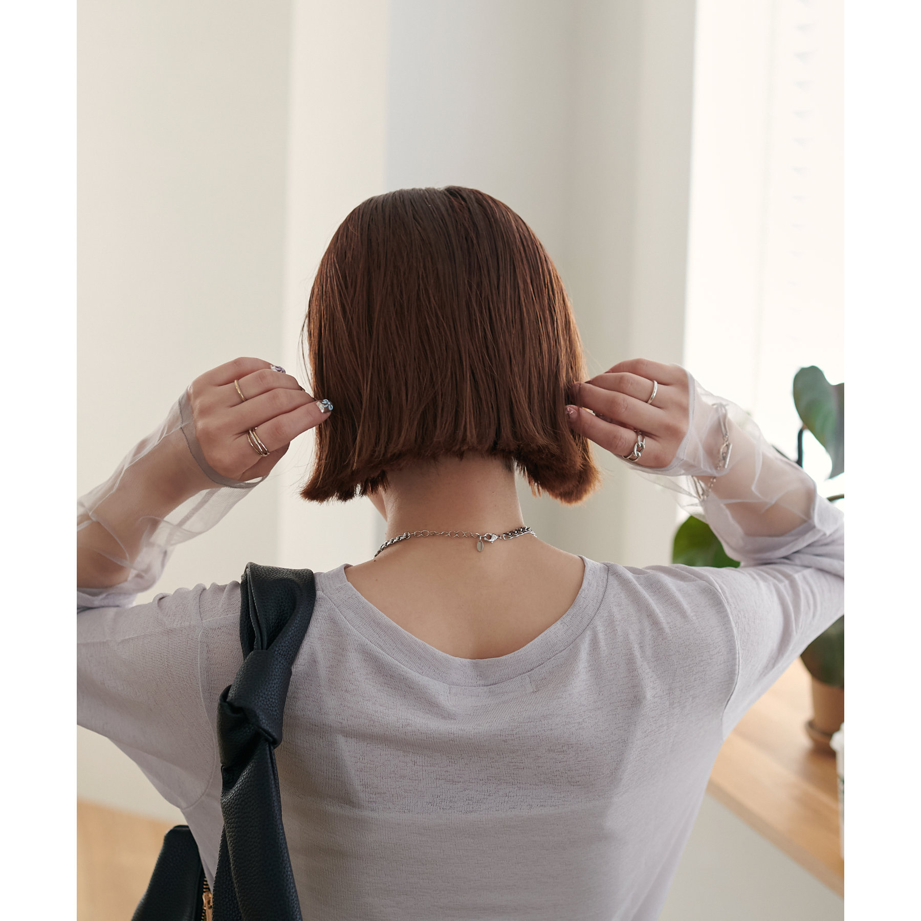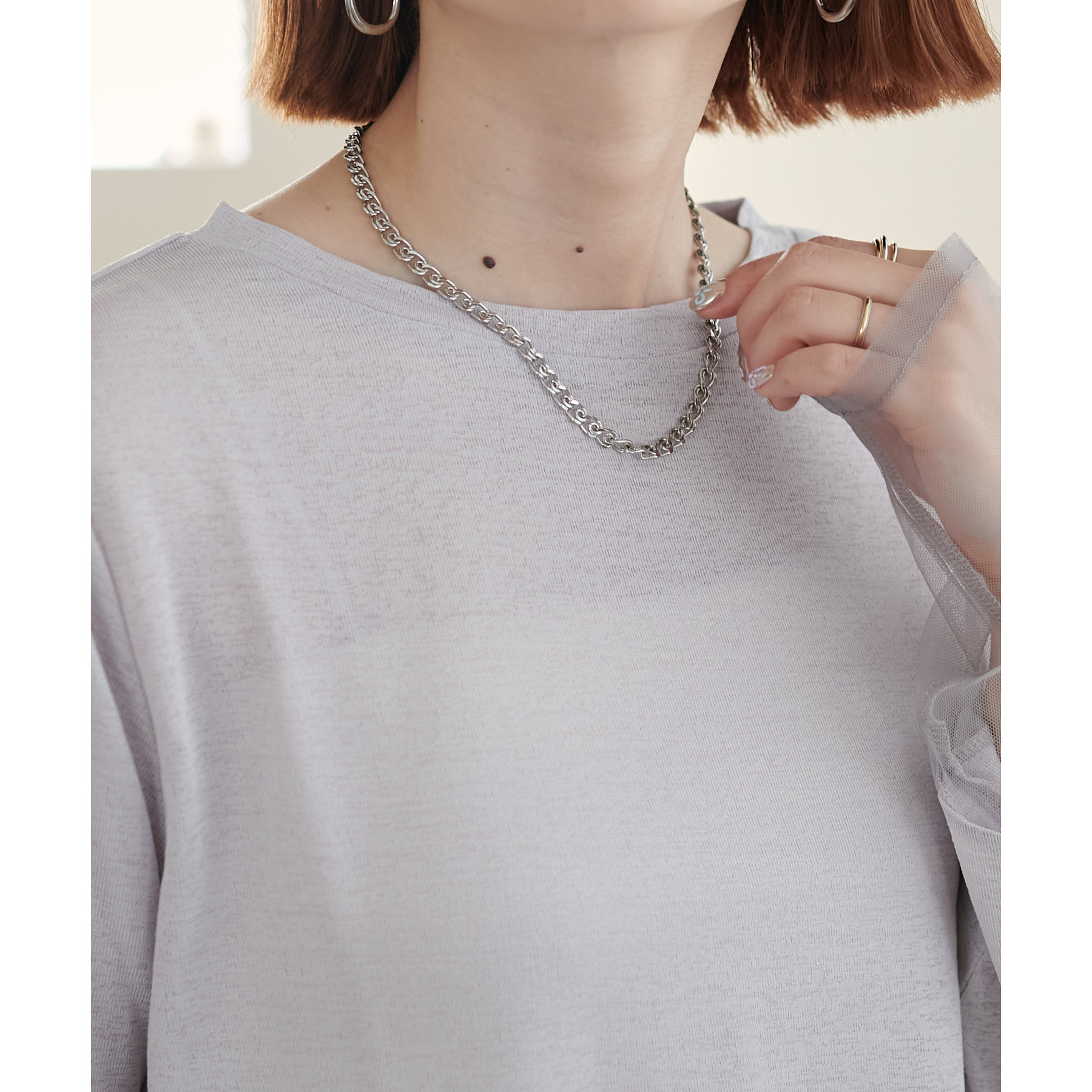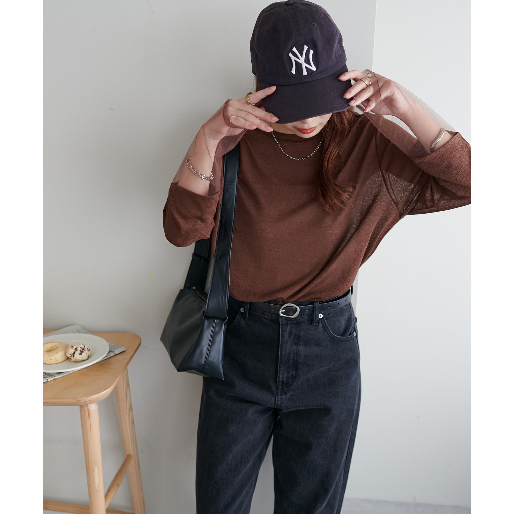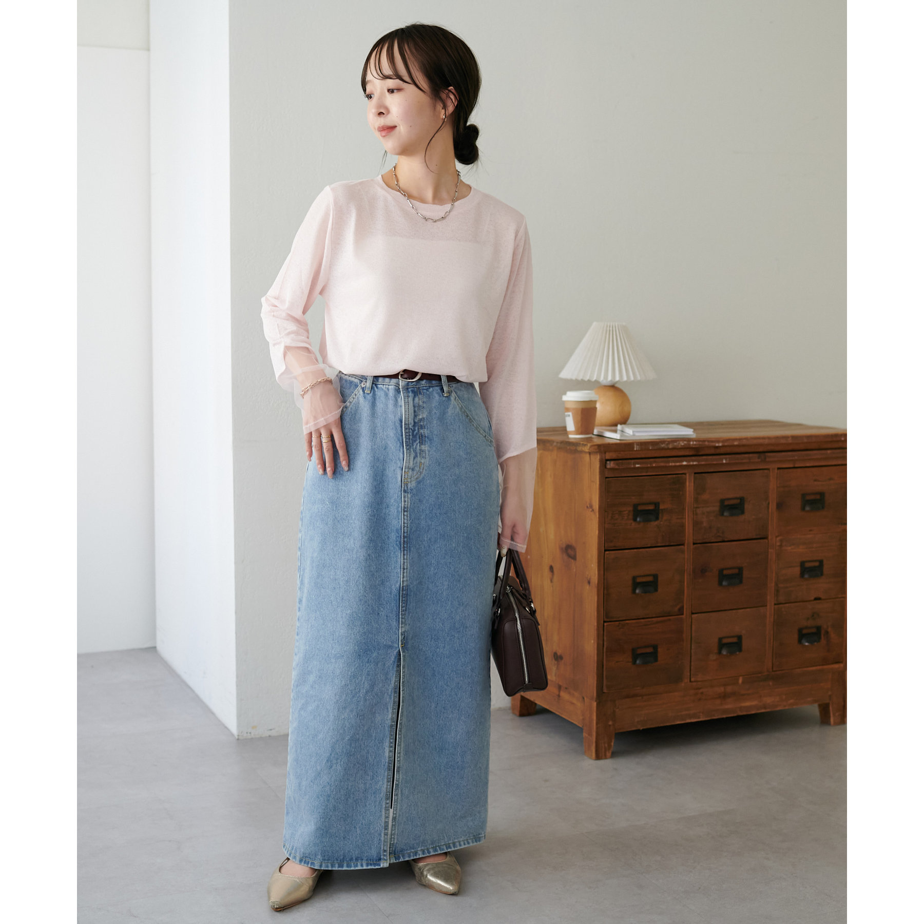 透け感が涼やかな印象を与え、シーズンスタイルにぴったりなプルオーバー。袖口の切り替えがアクセントになり、シンプルなコーディネートに抜け感を演出します。長めの着丈にはサイドスリットを入れ、タックアウトしても様になるデザインに。一枚ではもちろん、ジャケットやワンピースなどのインナーとしても活躍するアイテムです♪