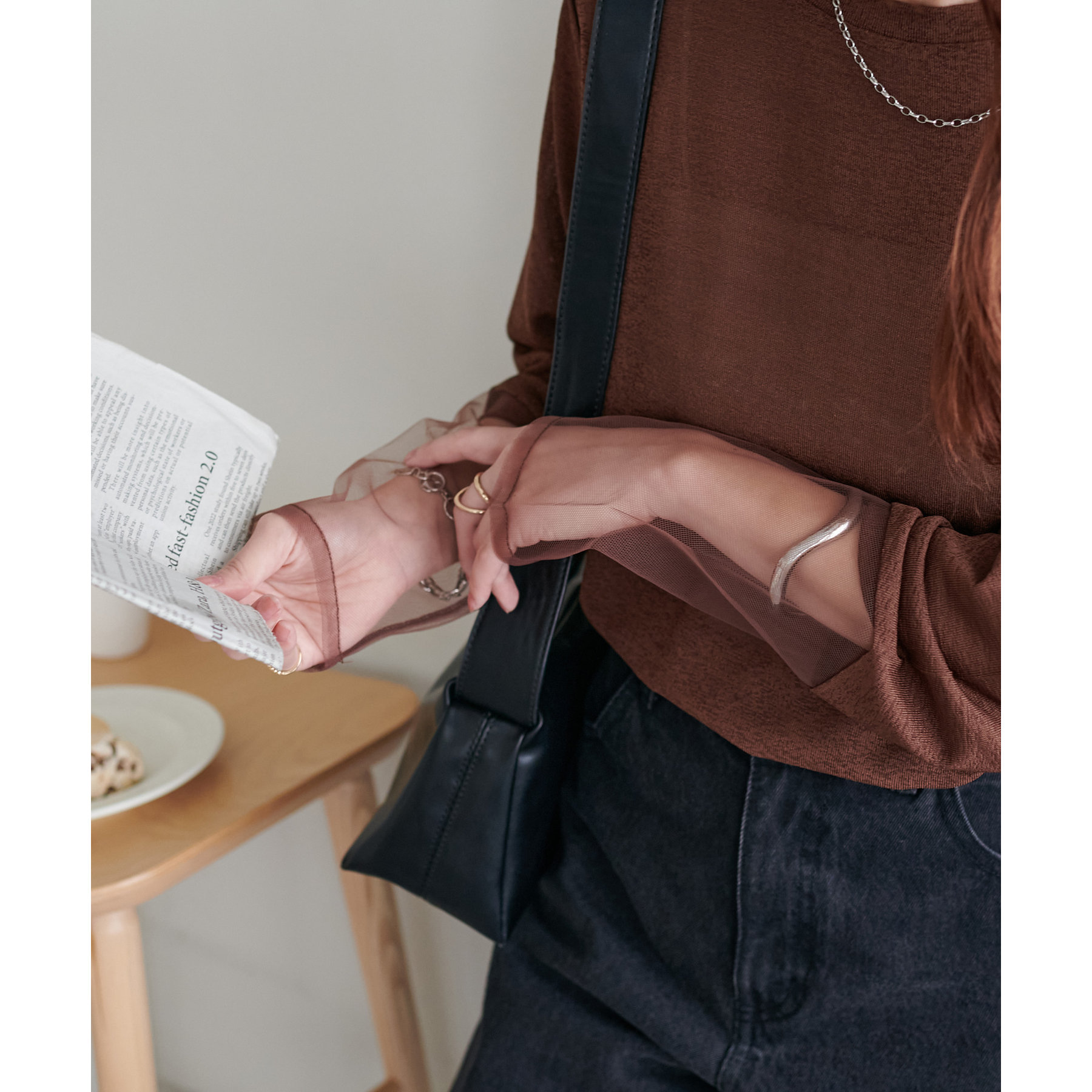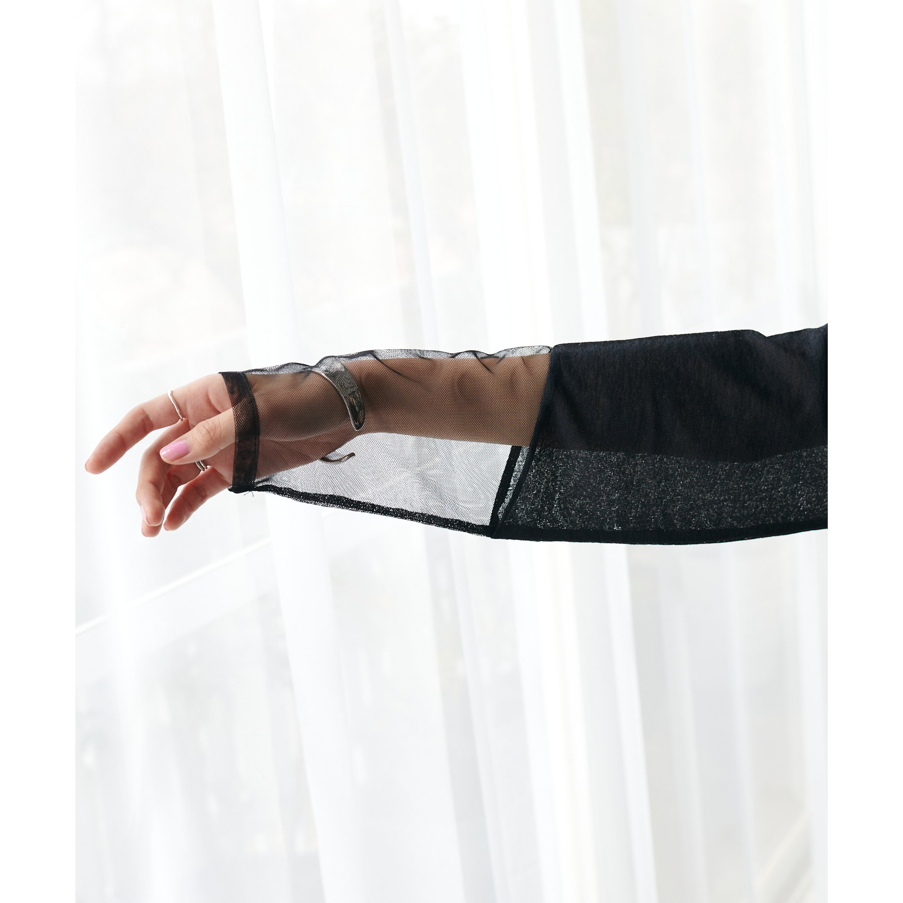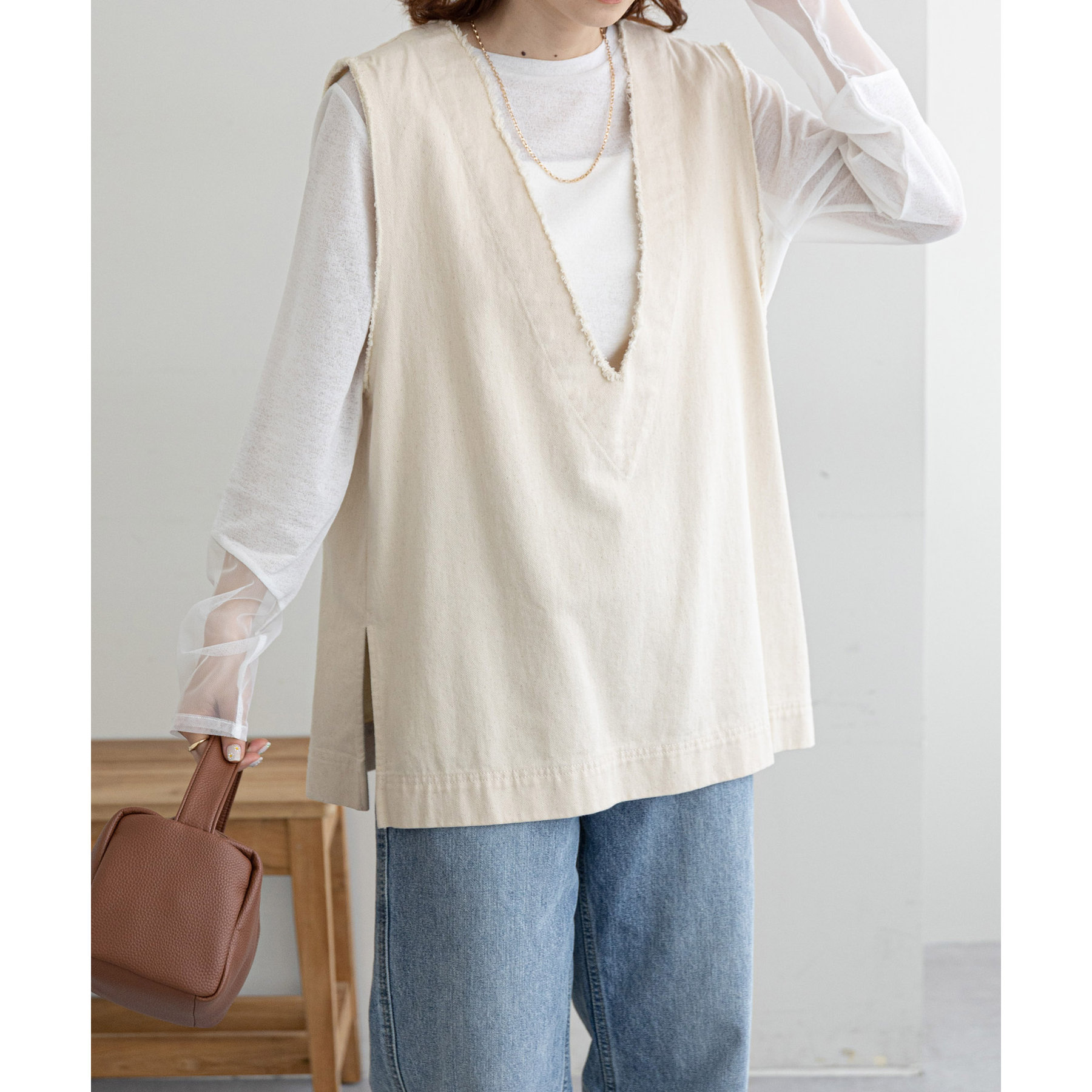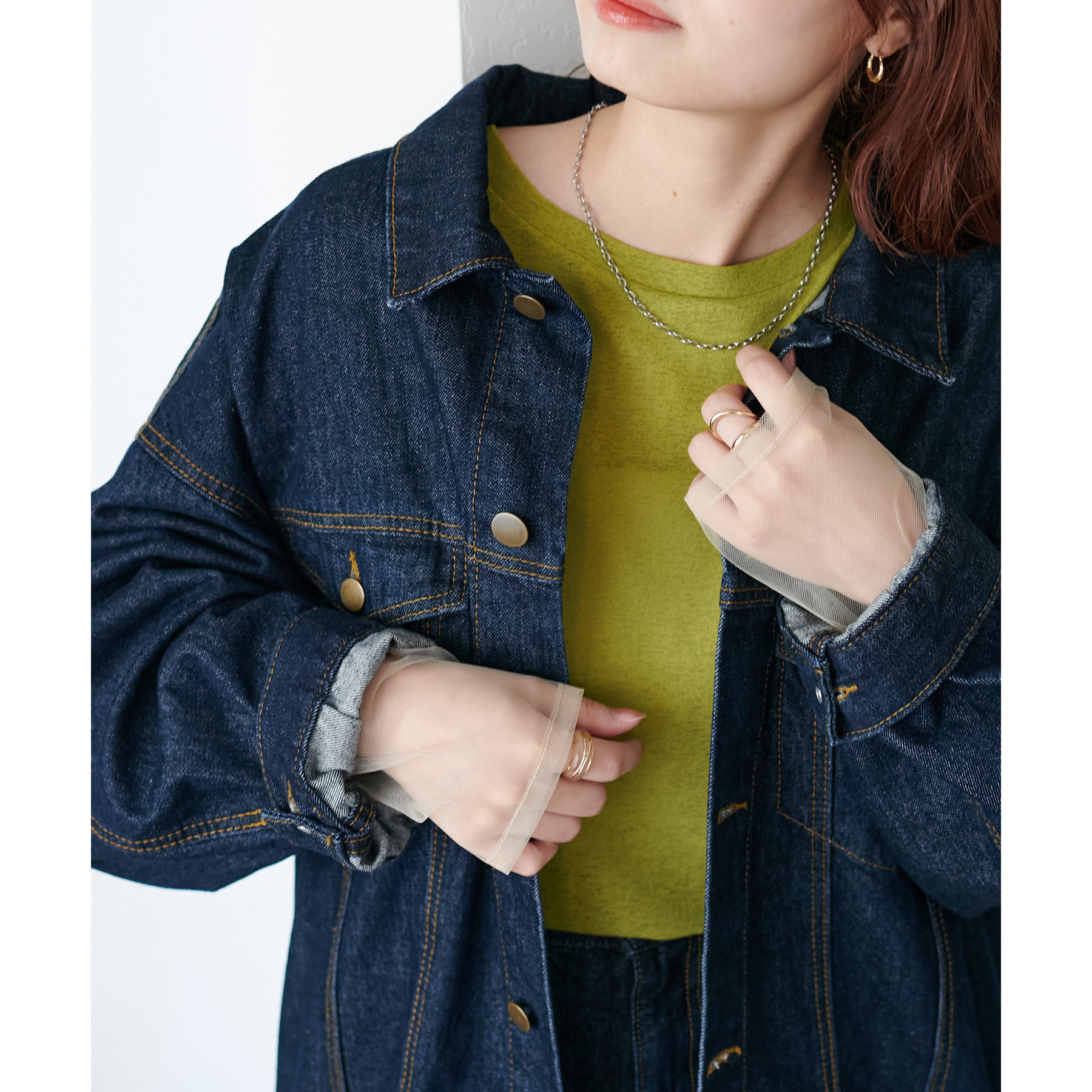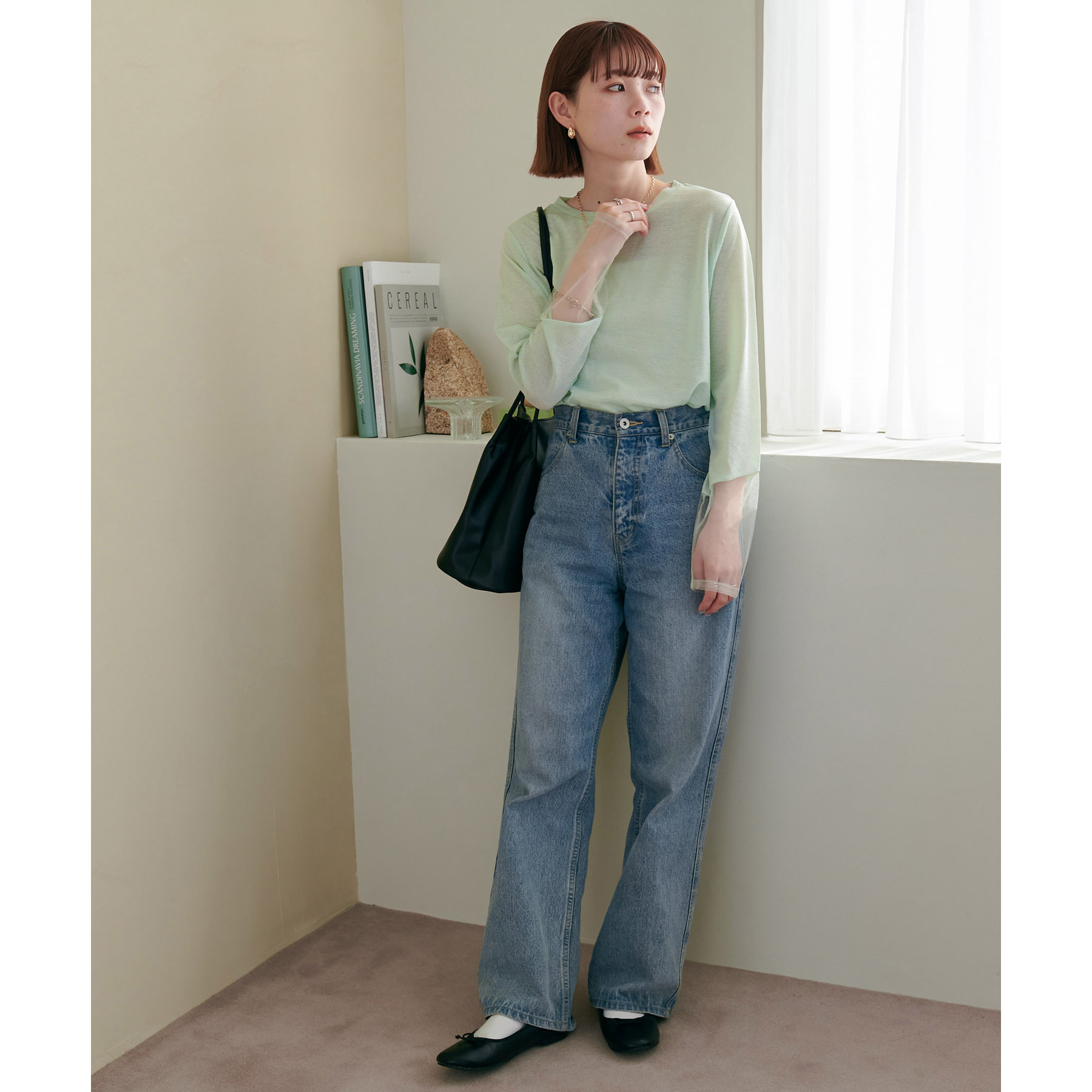 透け感が涼やかな印象を与え、シーズンスタイルにぴったりなプルオーバー。袖口の切り替えがアクセントになり、シンプルなコーディネートに抜け感を演出します。長めの着丈にはサイドスリットを入れ、タックアウトしても様になるデザインに。一枚ではもちろん、ジャケットやワンピースなどのインナーとしても活躍するアイテムです♪