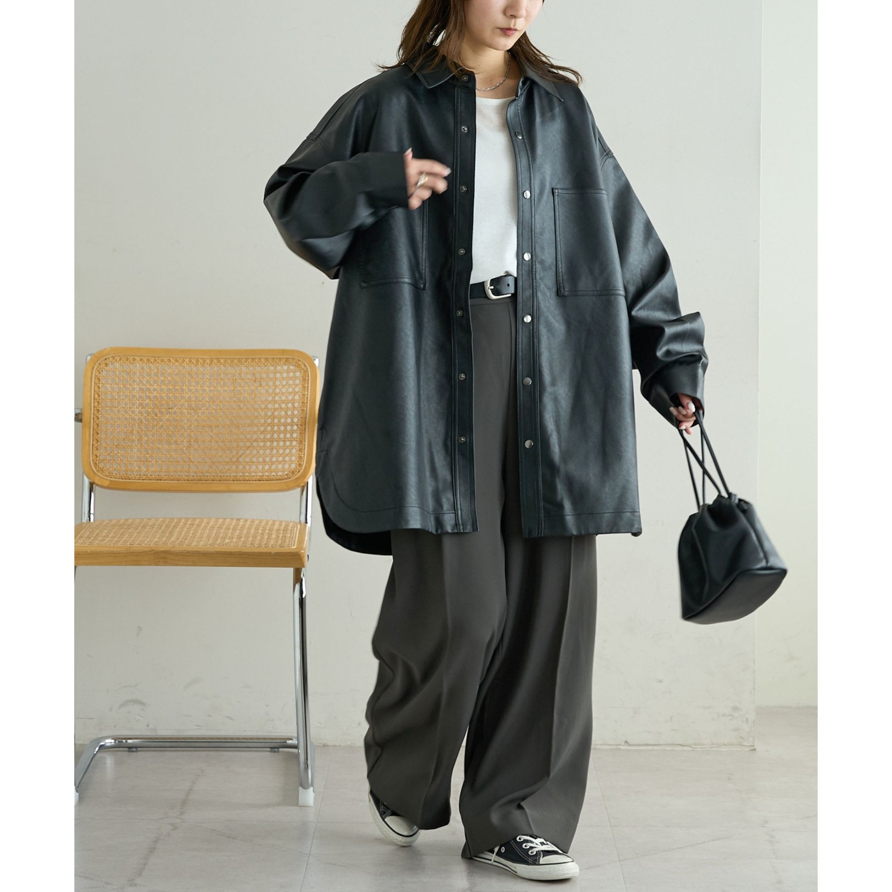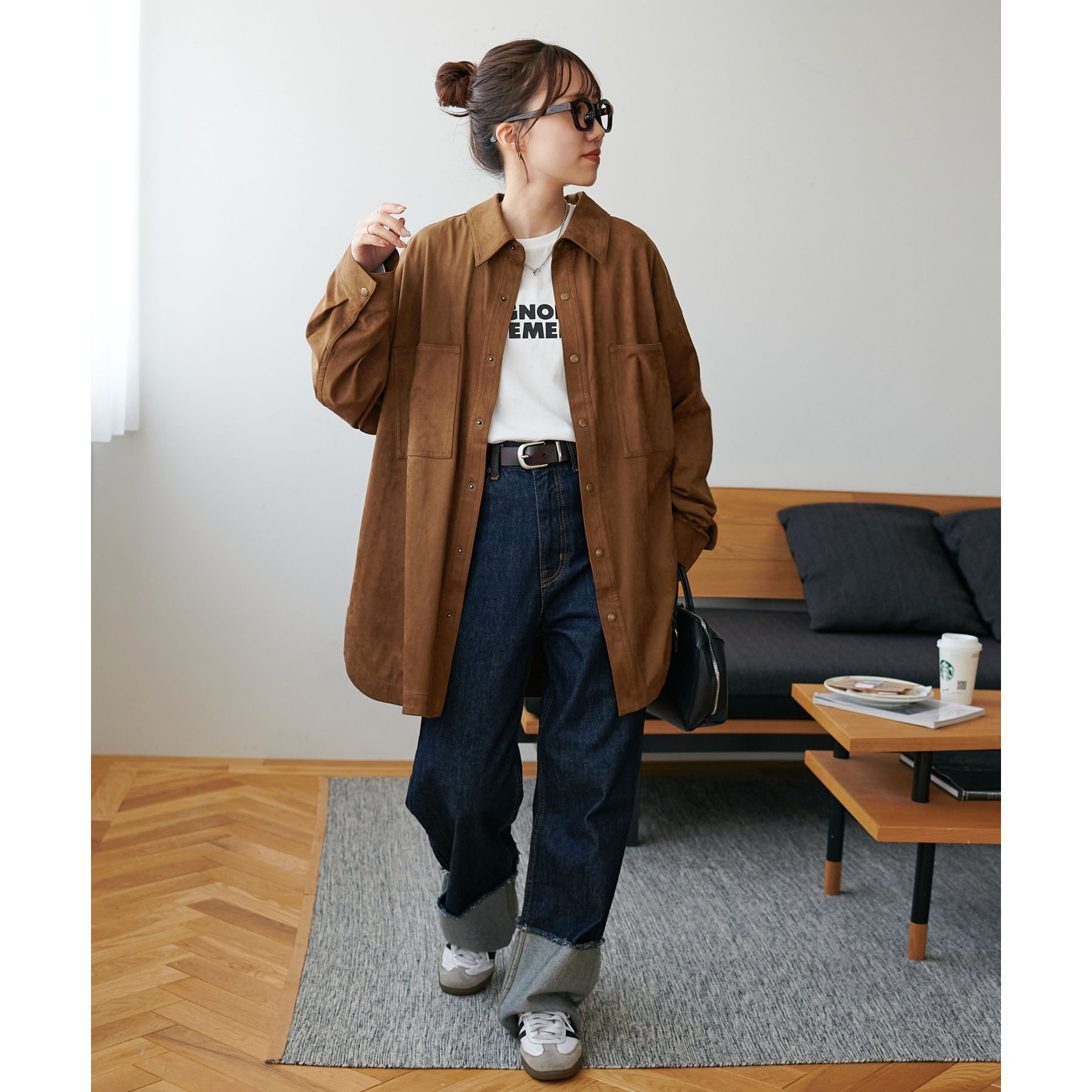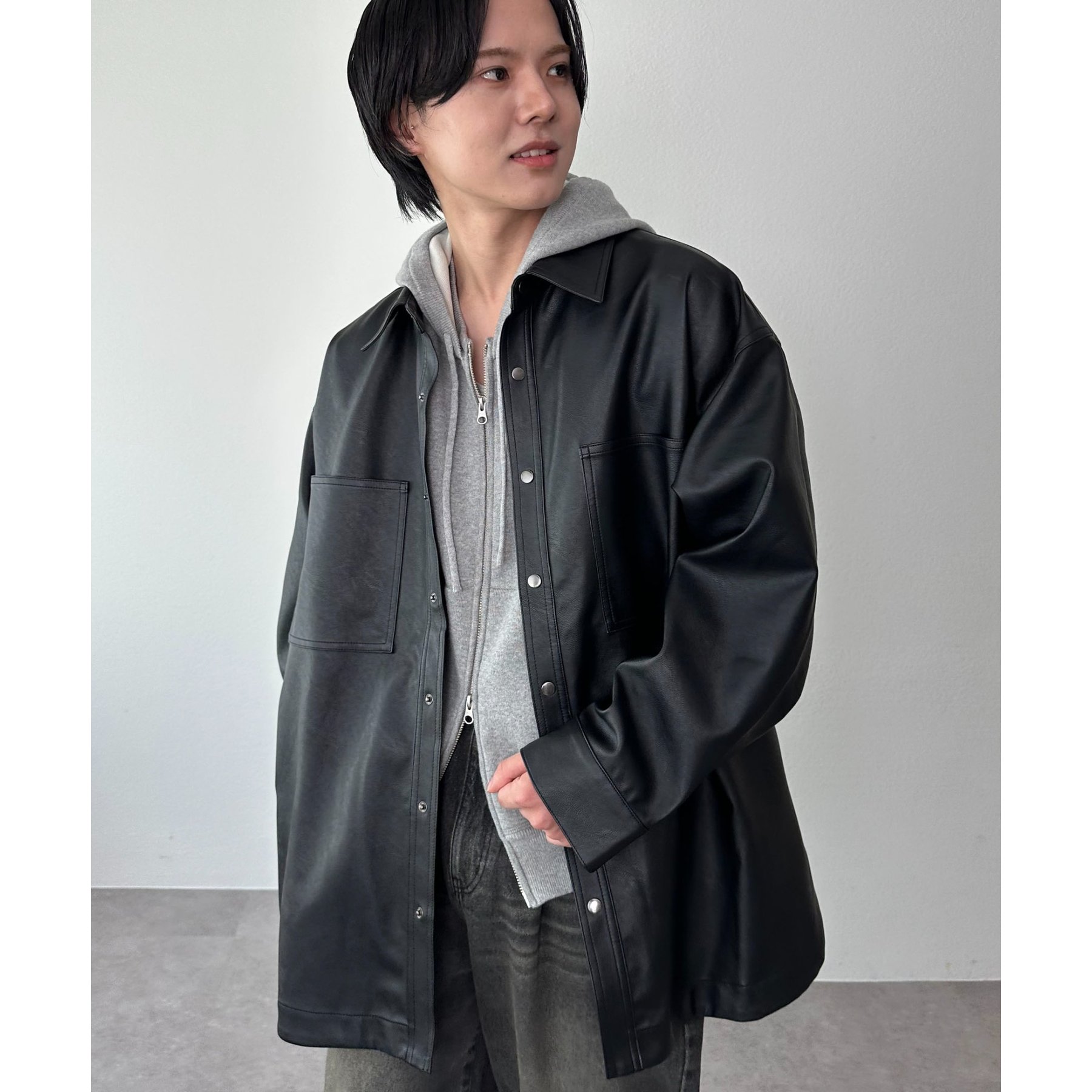 【ユニセックス】フェイクレザーフェイクスエードアソートオーバーシャツ