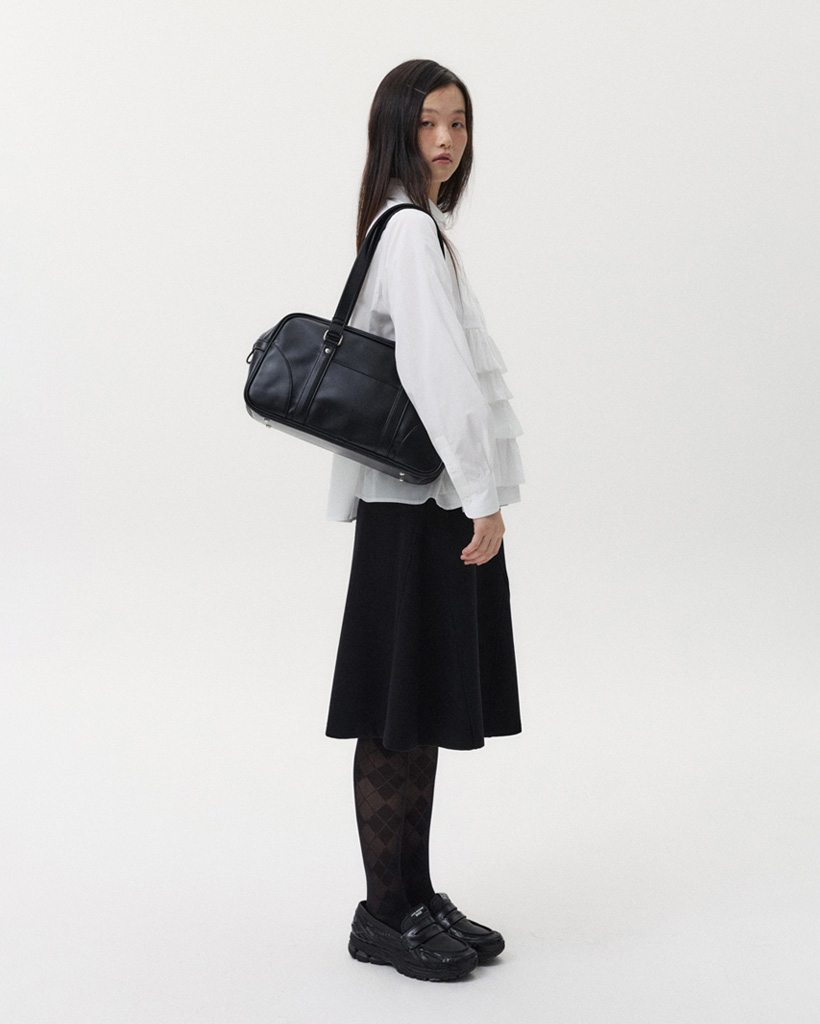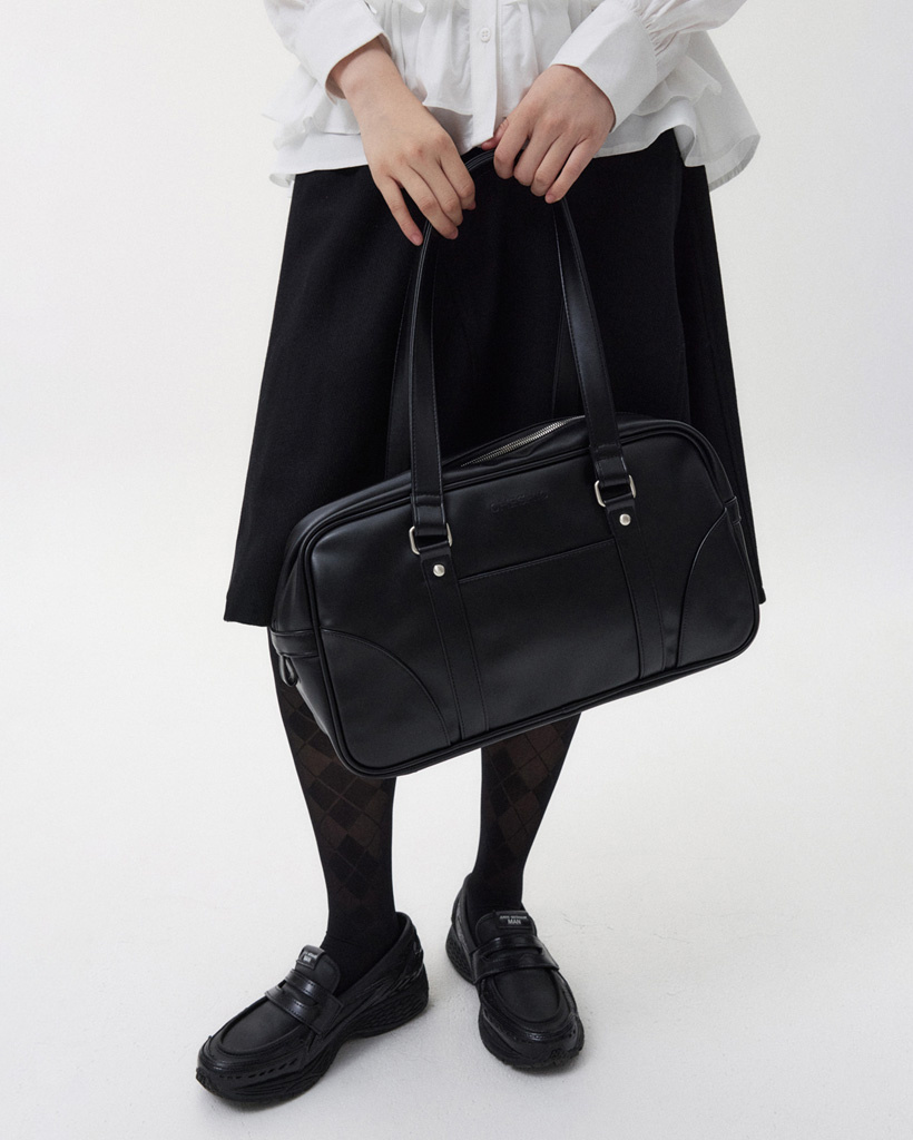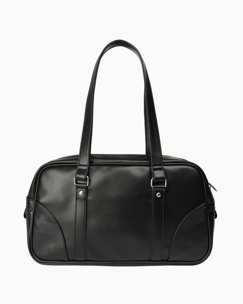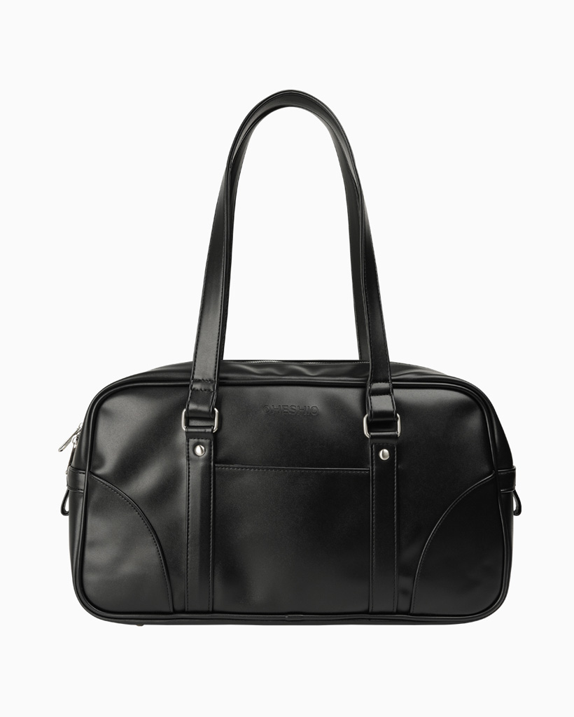 VINTAGE SQUARE LEATHER TOTE BAG, BLACK