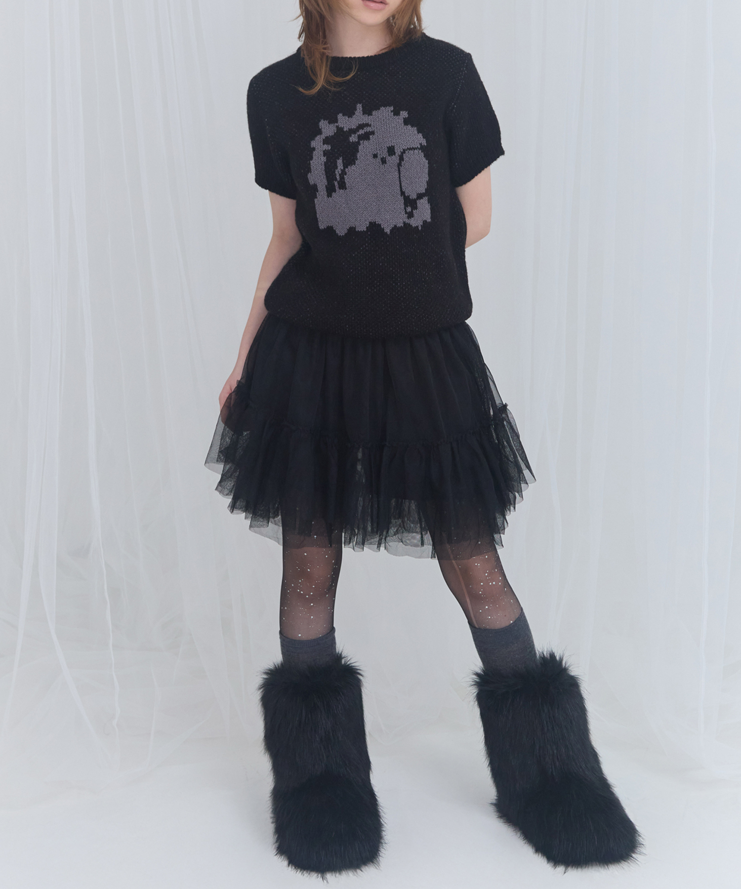 [FANCY X DUSTY] DUSTY SALON CROP KNIT (BLACK) F25NM1006