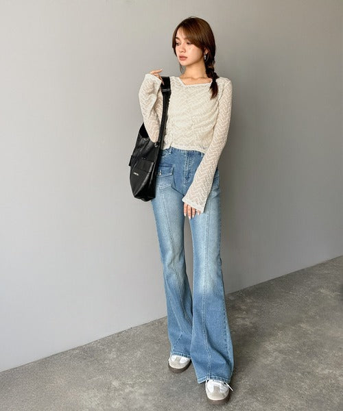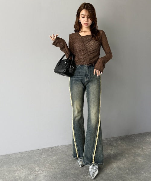 ジャンスカやキャミワンピのインナーにしても透け感が映えて華やかに♪