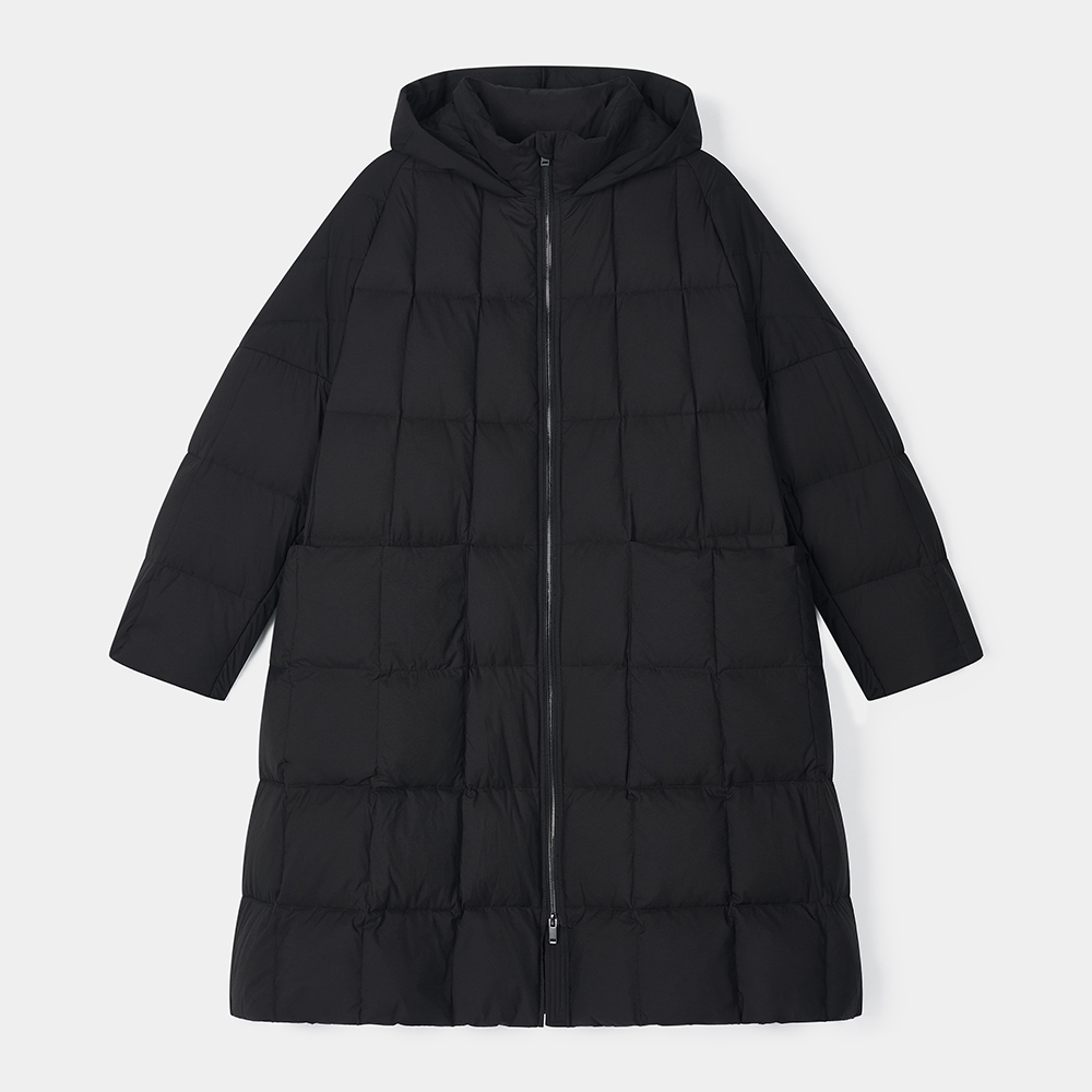 Wide-Fit Hooded Goose Down Long Jumper [Black]