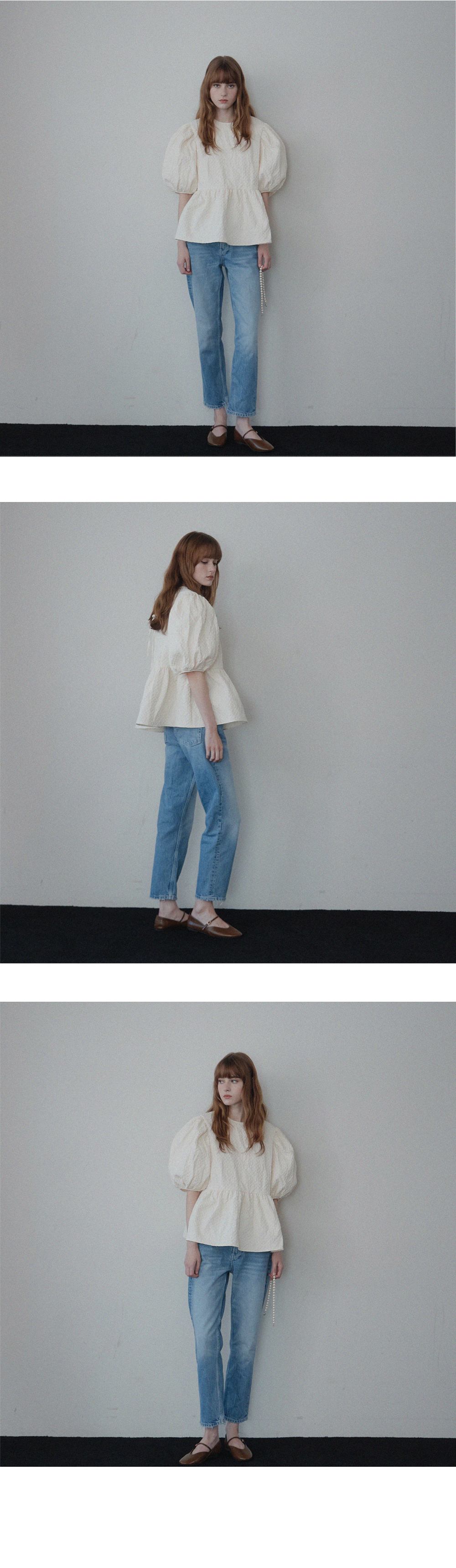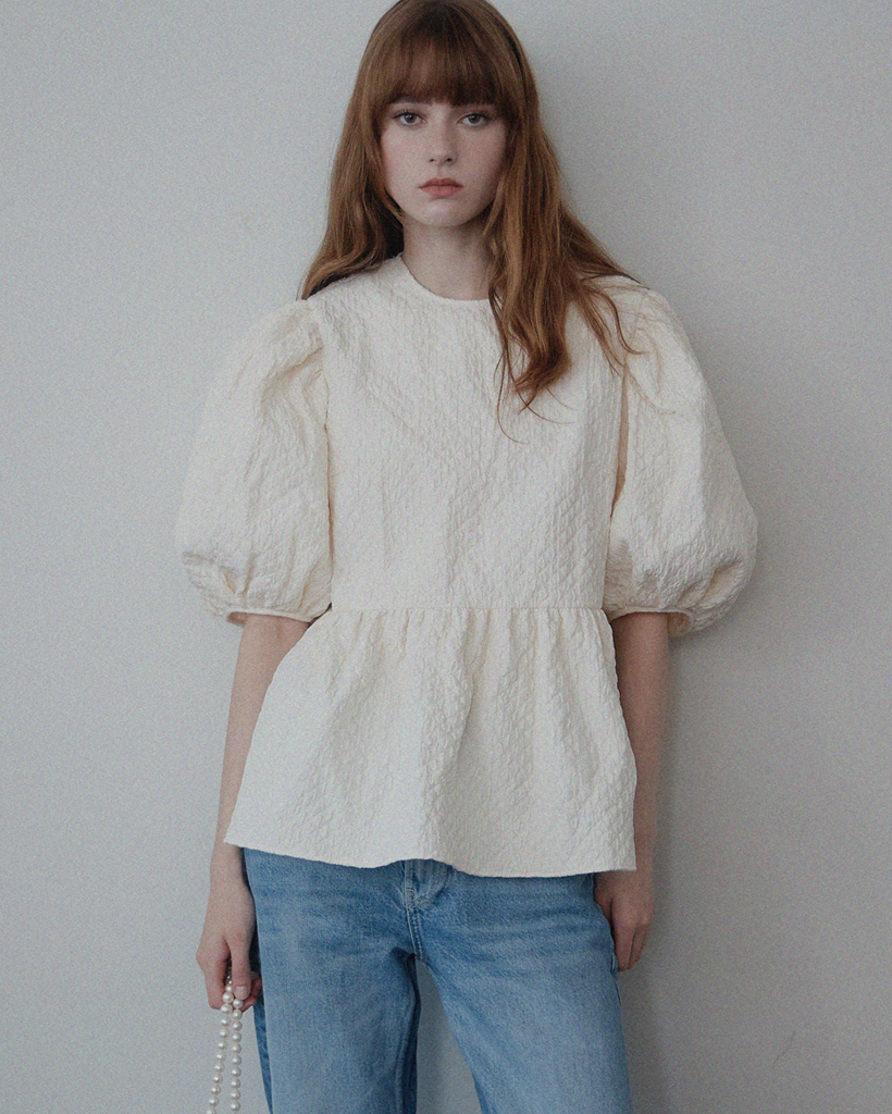 Volume Puffy Back Ribbon Blouse - 2color