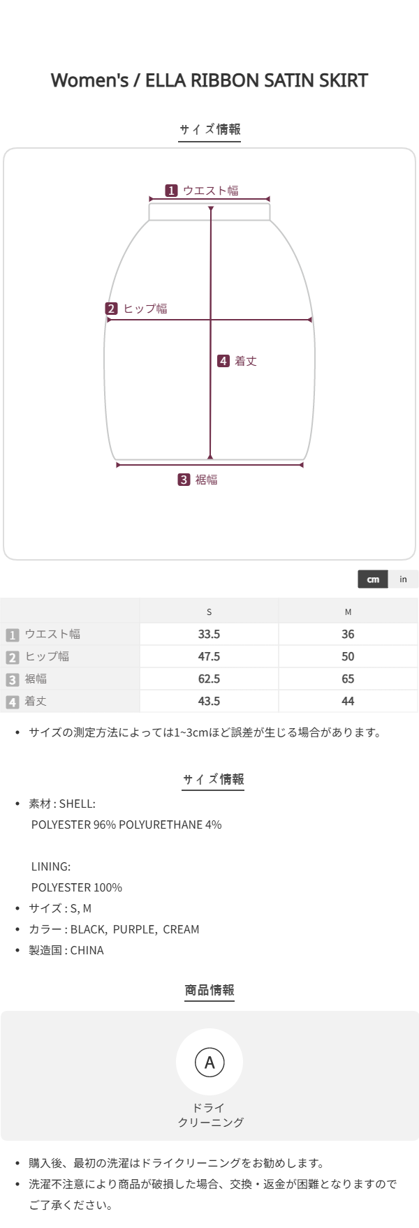 ウエスト リボン ストリング ポイントが目立つ サテン スカート