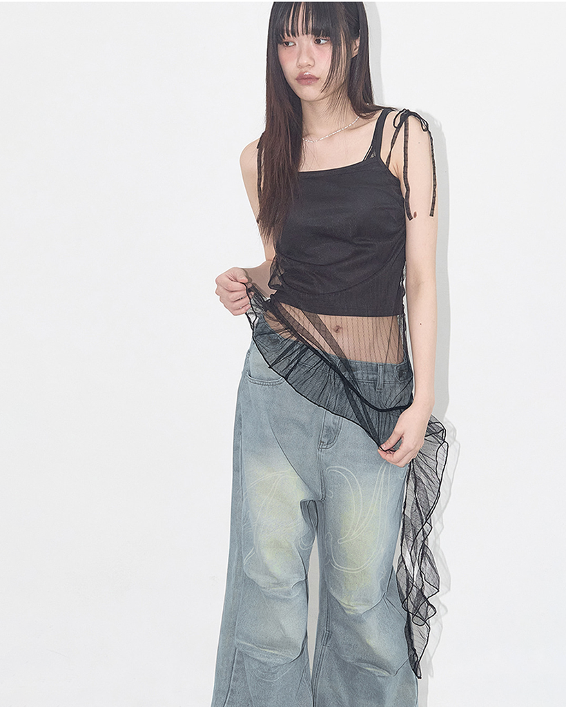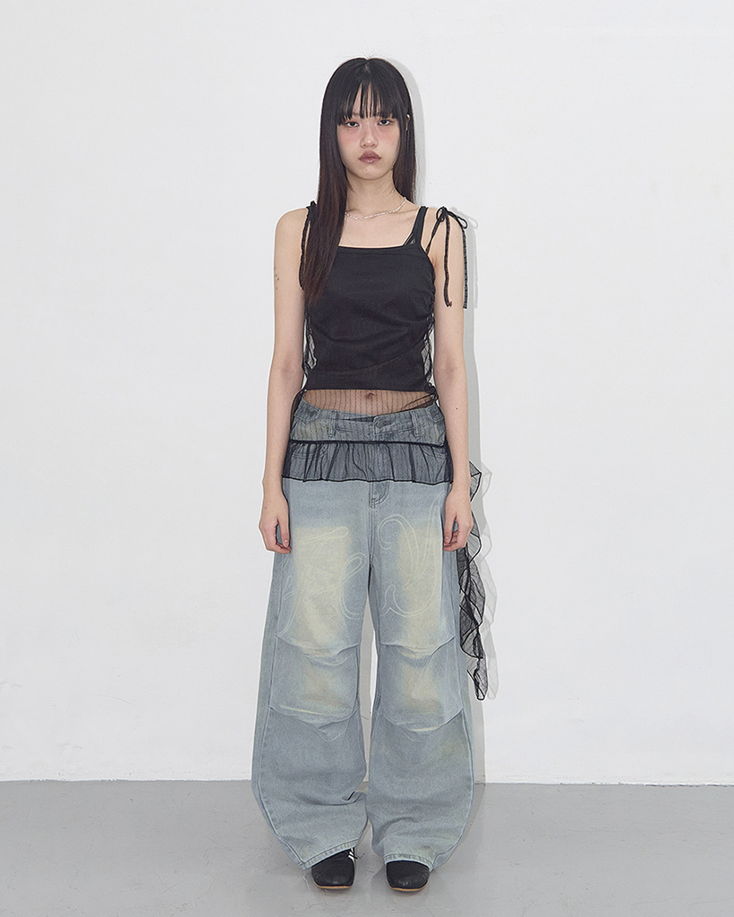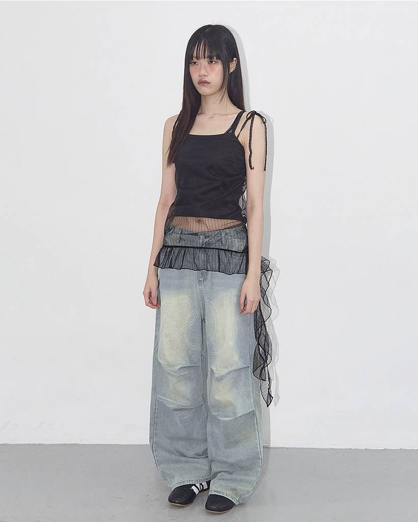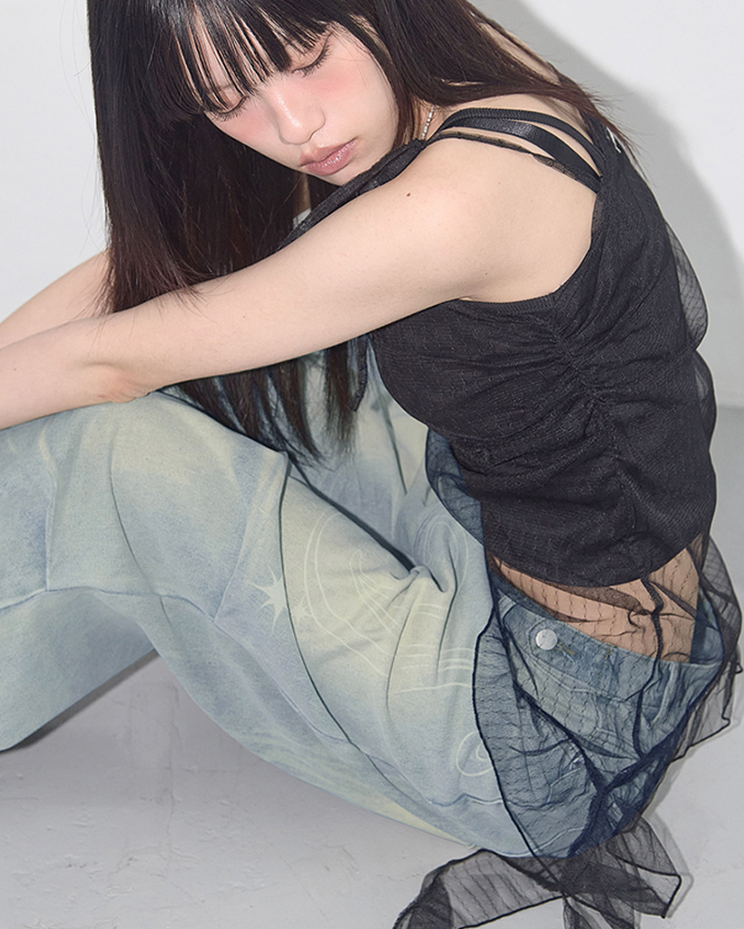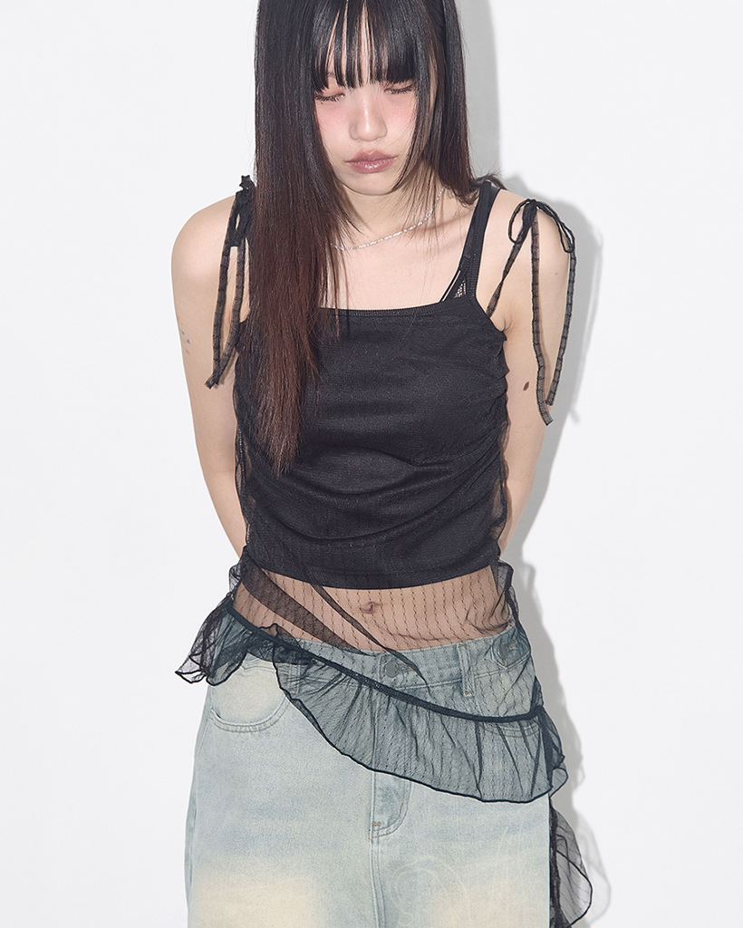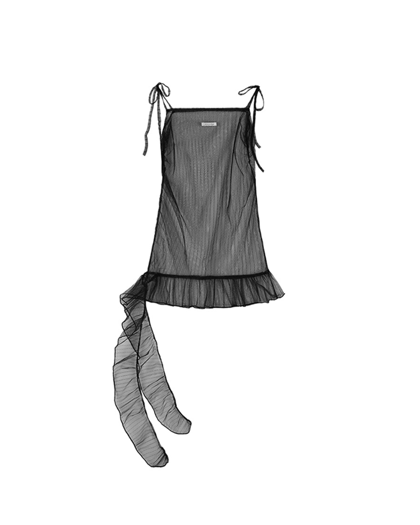 LACE SHIRRING LAYERED DRESS (BLACK) F25QD815