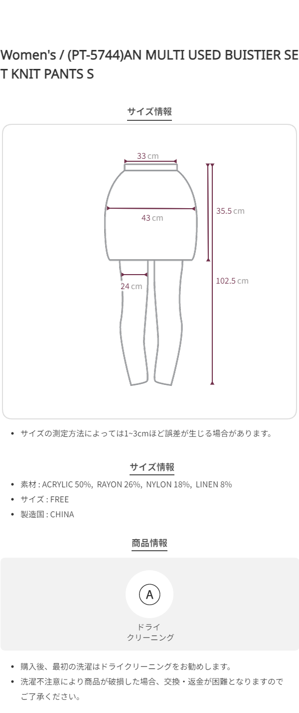 (PT-5744)AN MULTI USED BUISTIER SET KNIT PANTS S