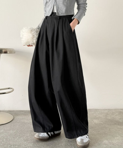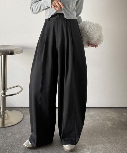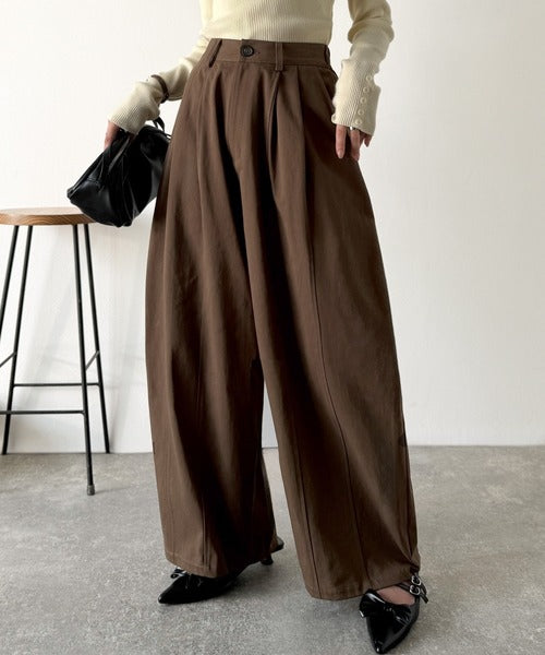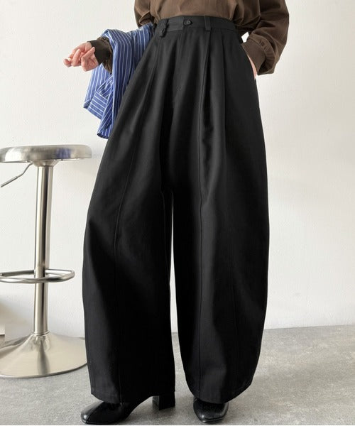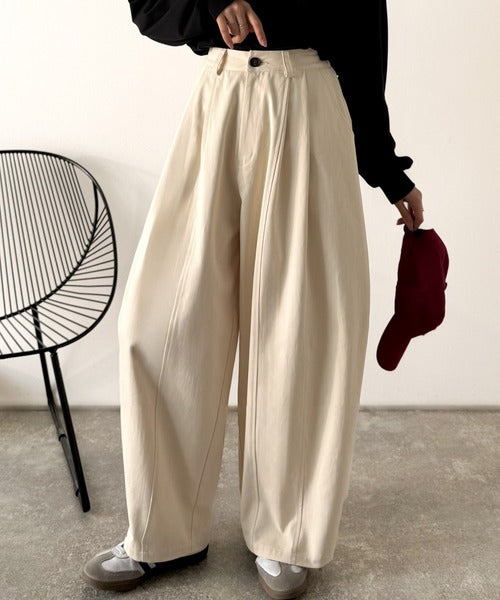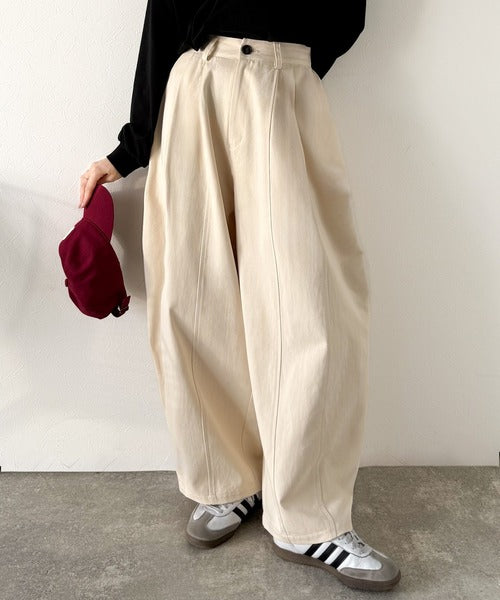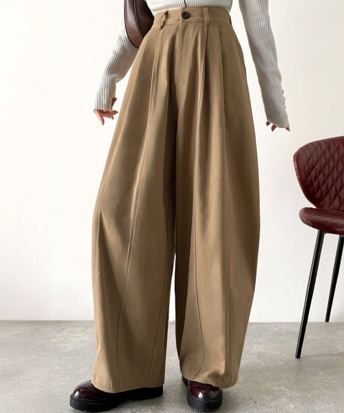 《JaVaジャバコラボ》カーブで魅せる、抜け感シルエット。綿100%コットンツイルバレルレッグタックパンツ jv1240111