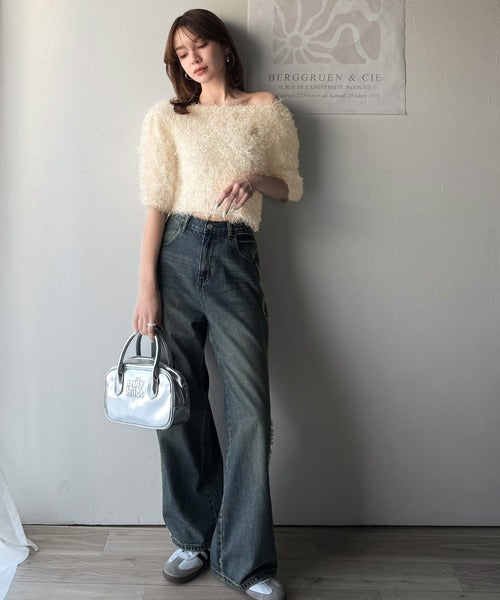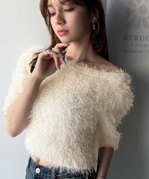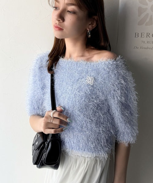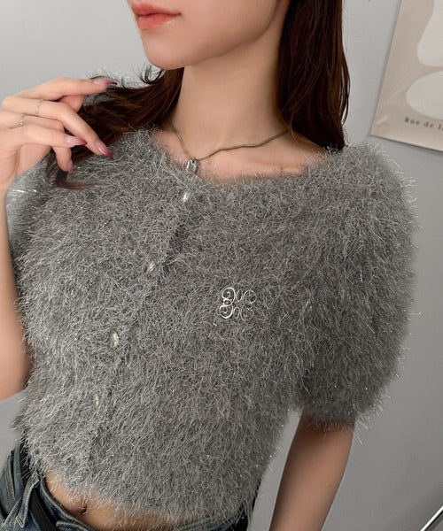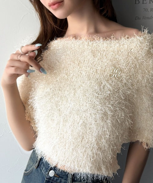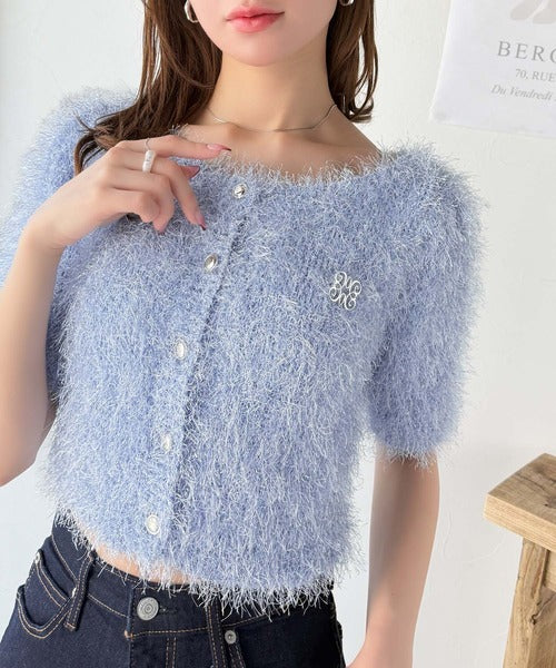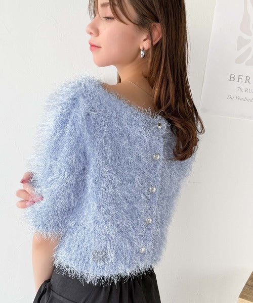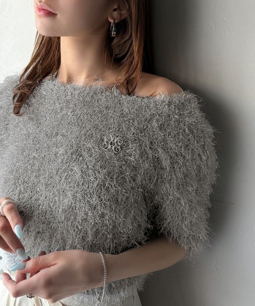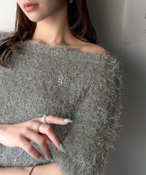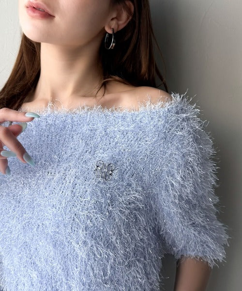 【mily bilet】ふんわり大人可愛い。ラメシャギーブローチ付きワンオフショル前後2WAYカーディガン mi1259012