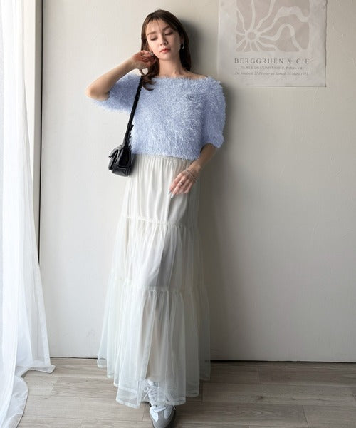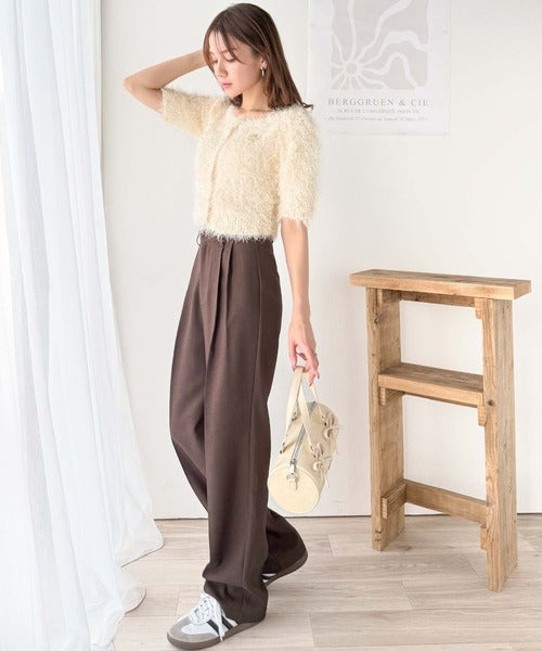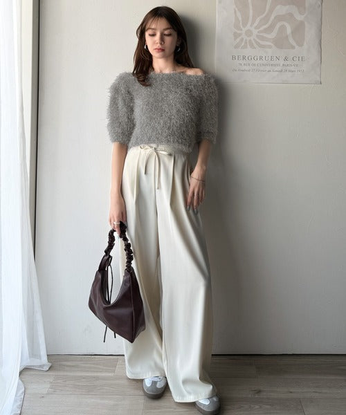 ふんわりしたシャギーと柔らかなカラーで羽織るだけで大人フェミニンな印象をプラスします。