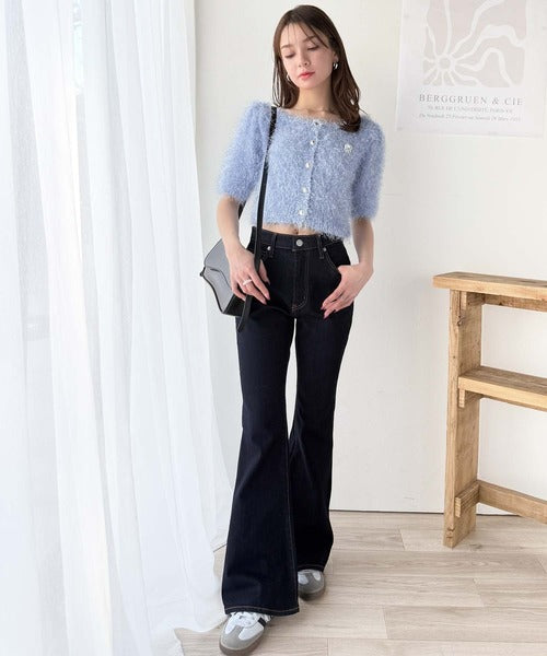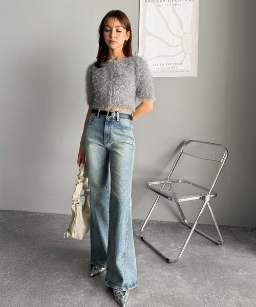 その日の気分に合わせてカーブデニムやフレアパンツを合わせてもOK◎