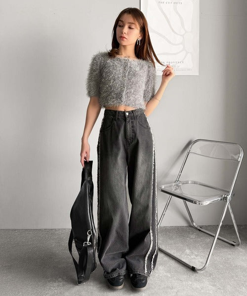ゆるっと感がありながらクロップド丈でトレンド感満載のアイテム。