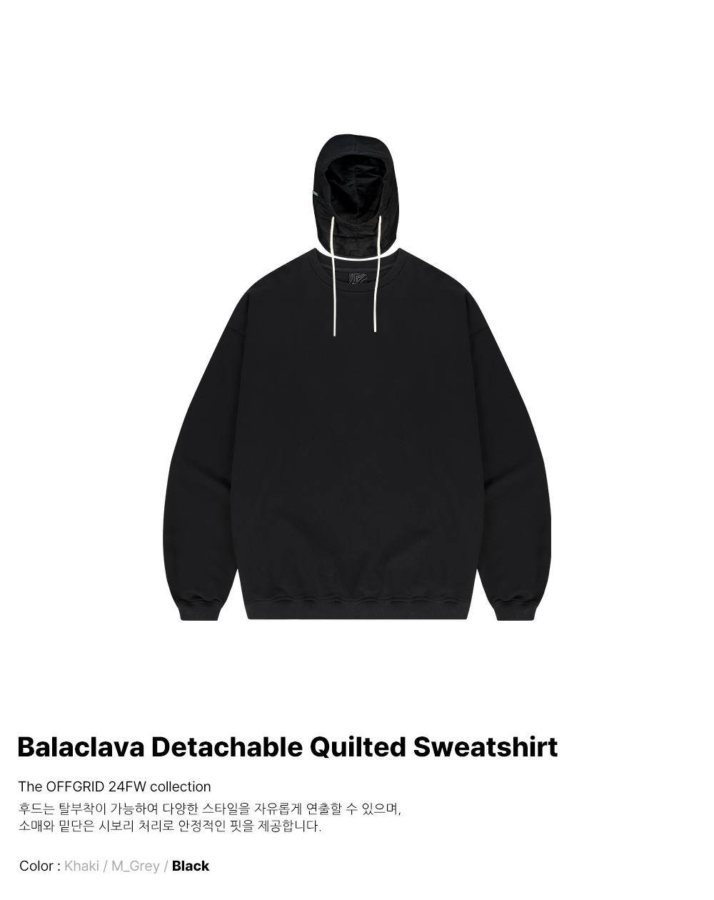 バラクラバデタッチャブルクオルテッドマンツーマン - ブラック