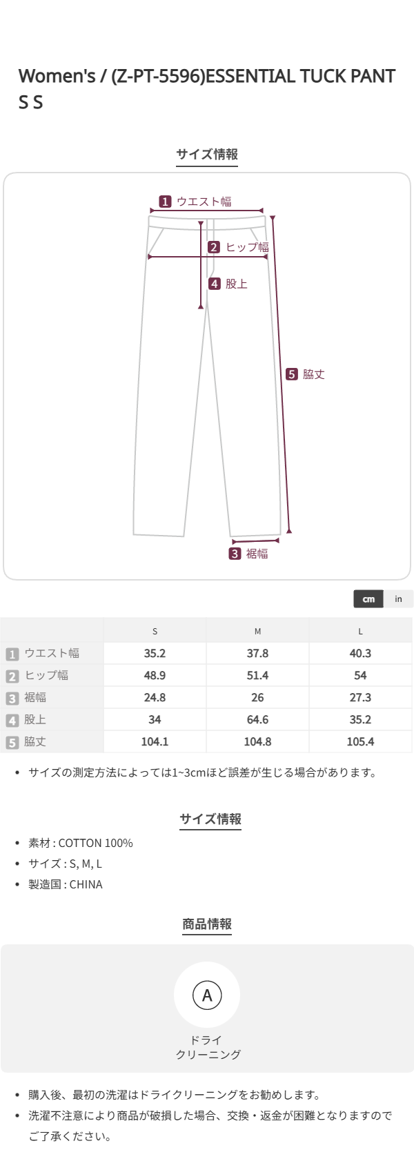 (Z-PT-5596)ESSENTIAL TUCK PANTS S