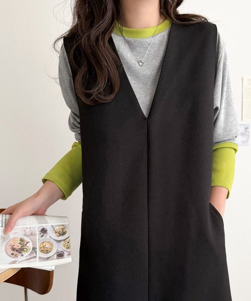 ジャンスカやキャミワンピのインナーにしても配色切替が映えて華やかに♪