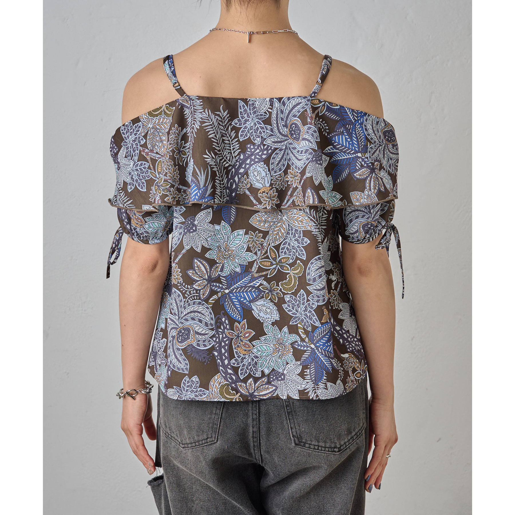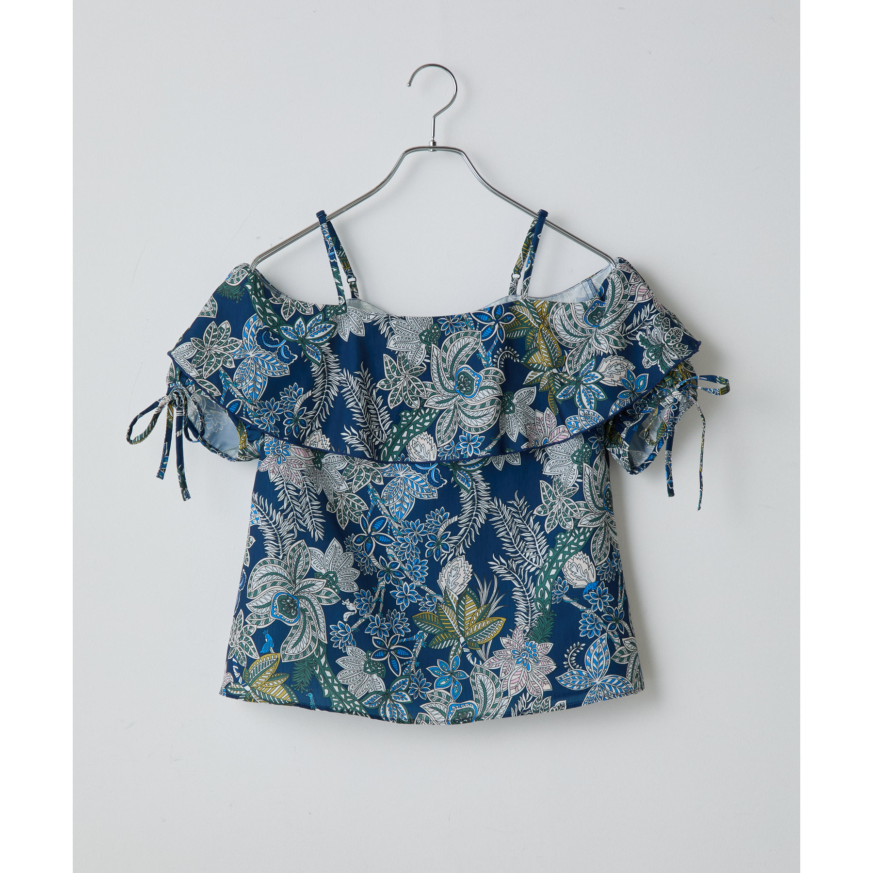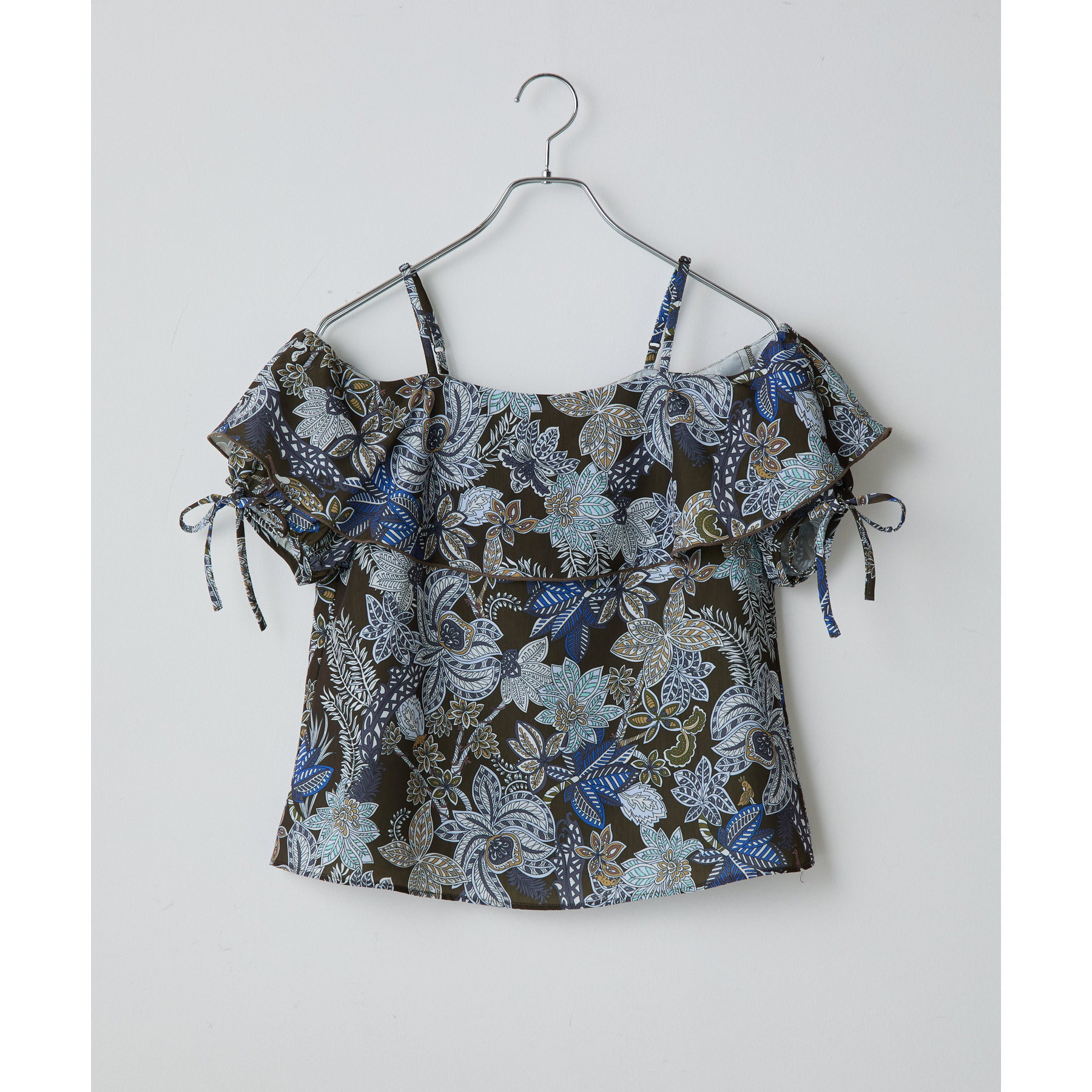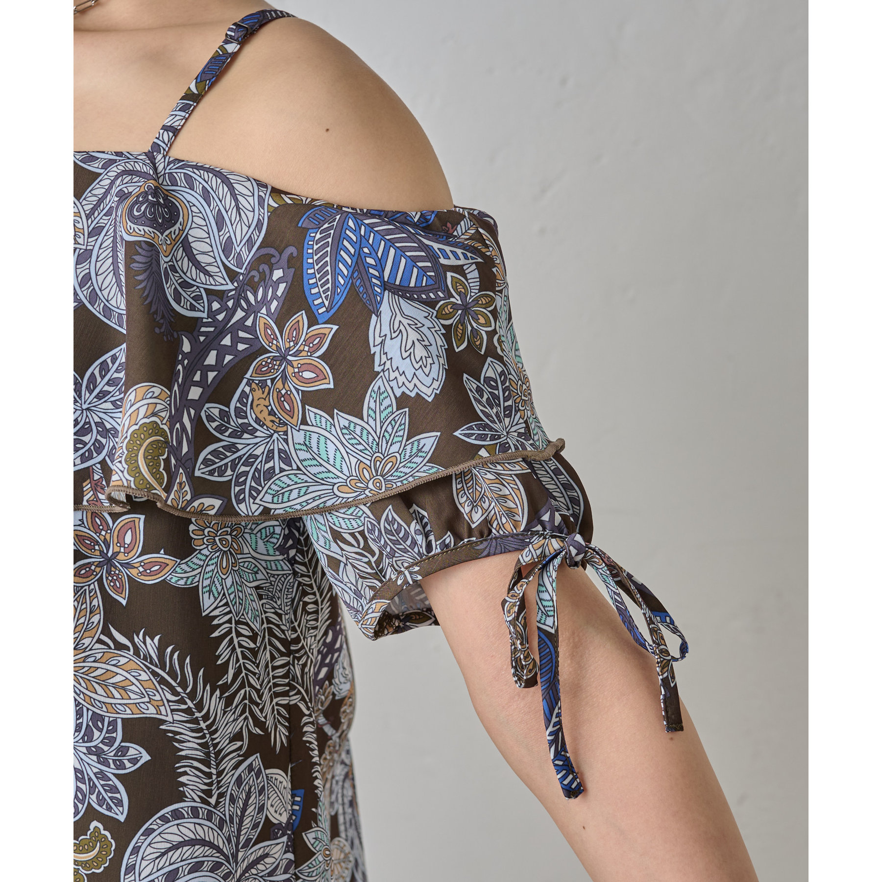 ヴィンテージライクなスカーフ柄が目を惹く、大人のオフショルダーが登場。