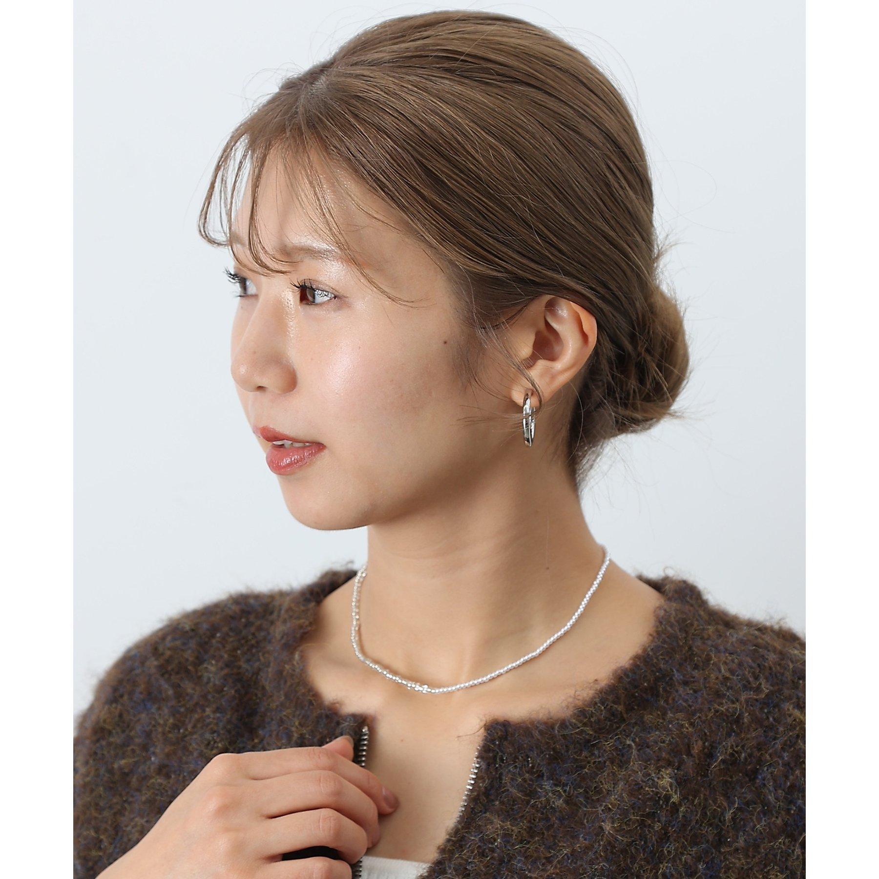 フック金具のデザインは前後どちらでも使用できるため、シーンや気分に合わせてさまざまなアレンジが可能です。