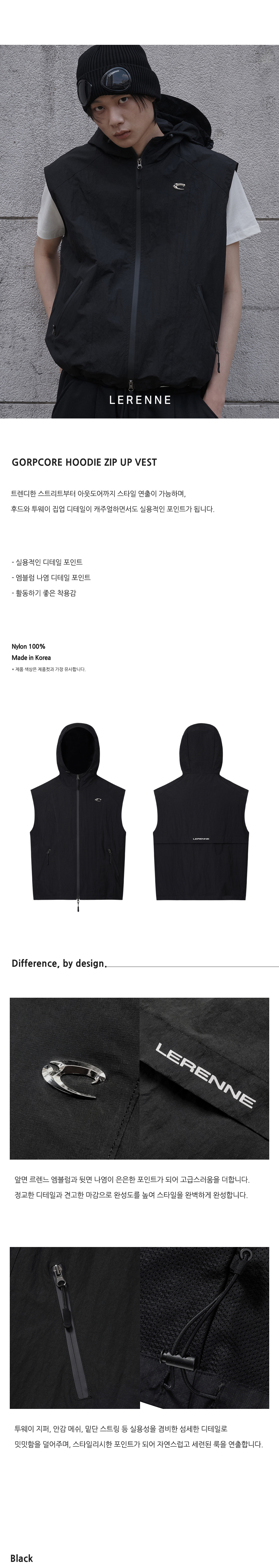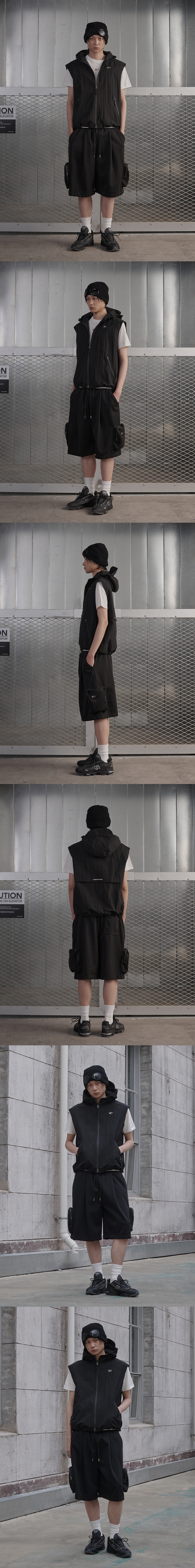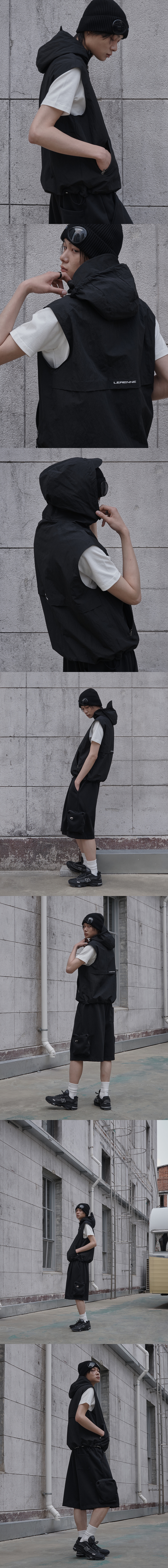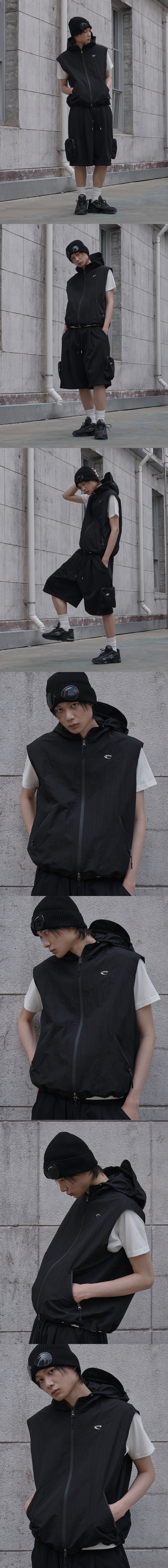 Gorpcore Hoodie Zip Up Vest - Black