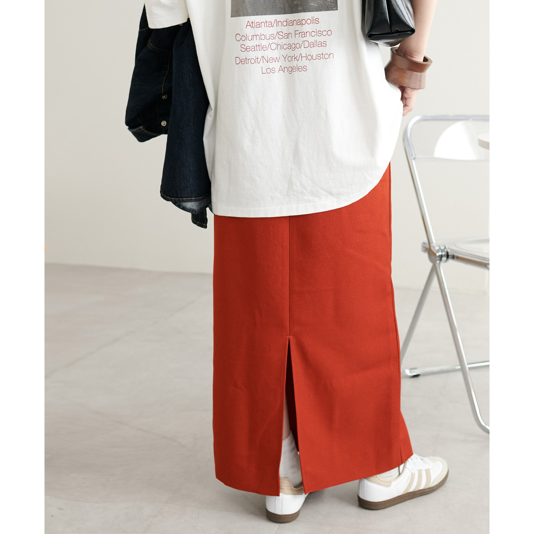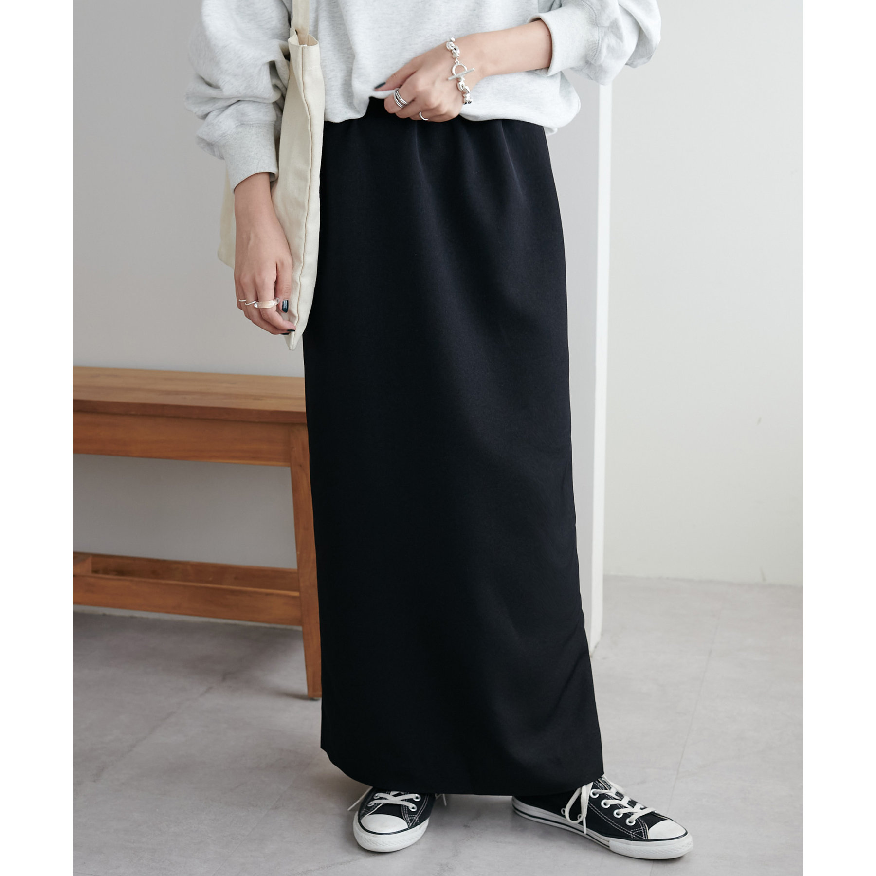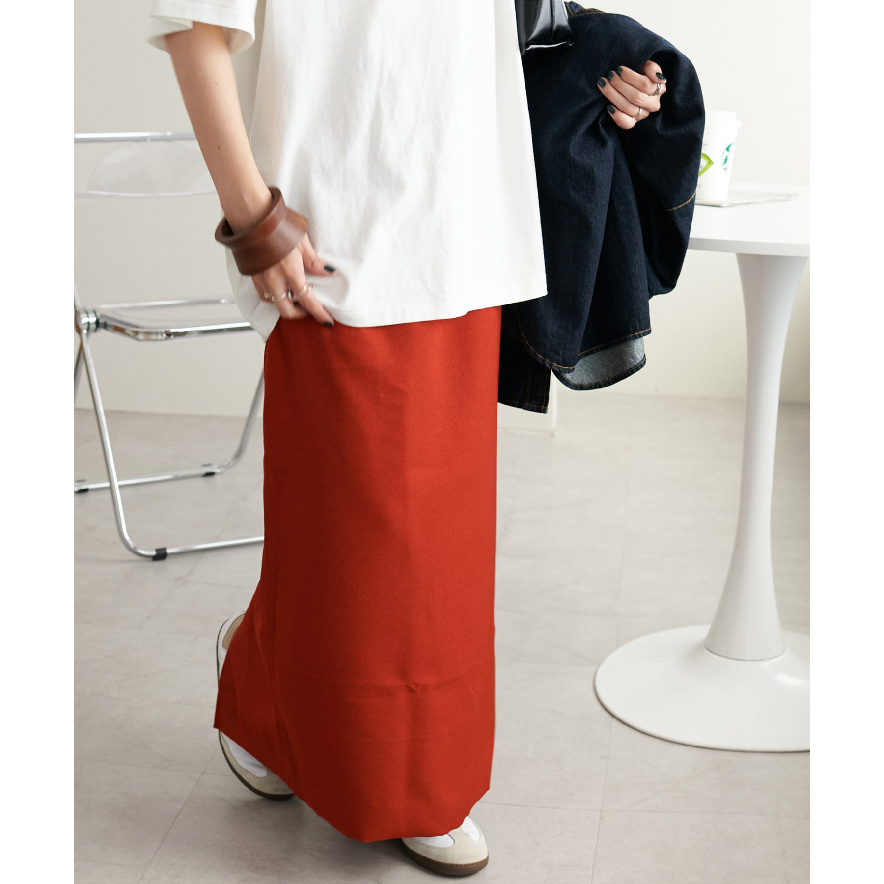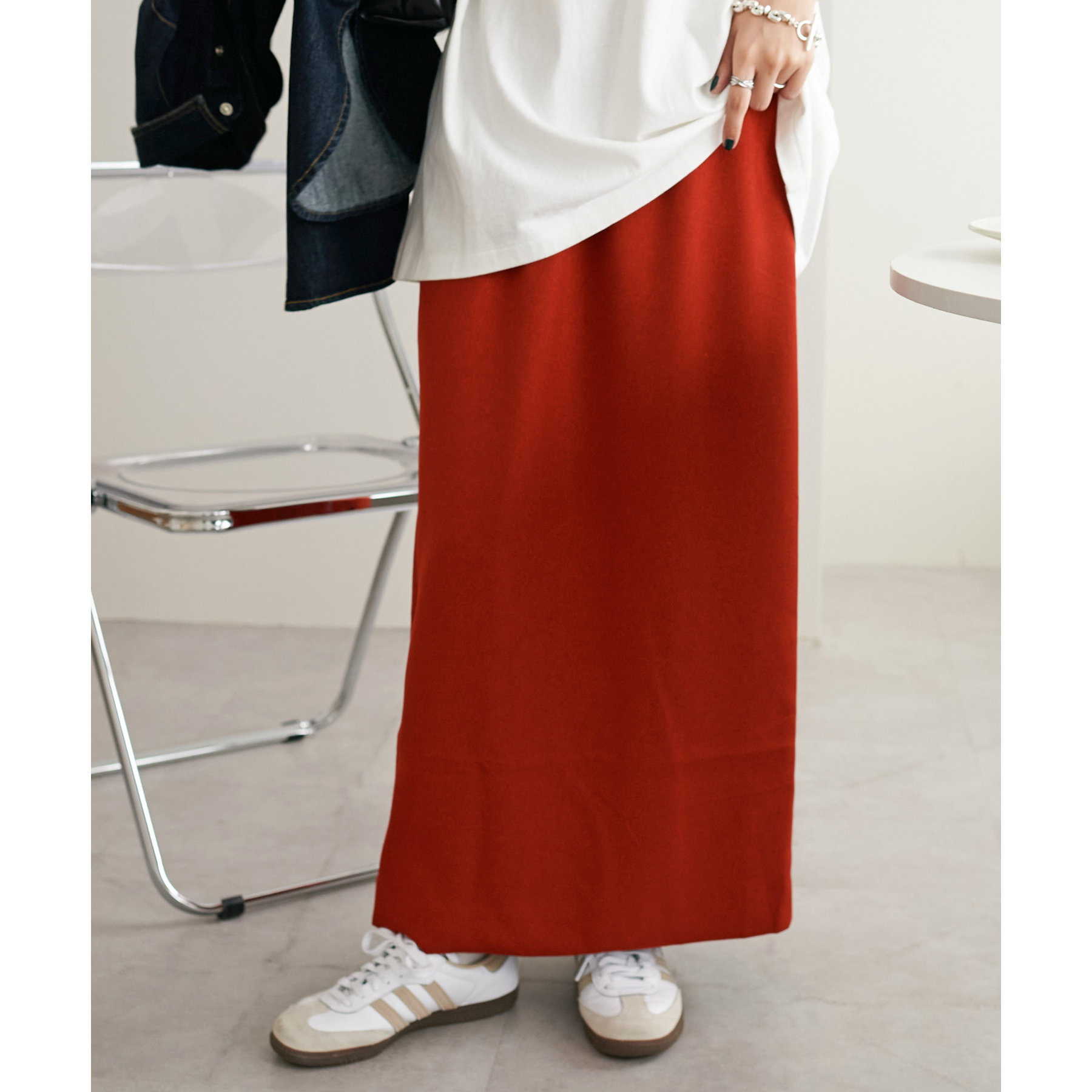 デイリーユースに重宝するナロースカートが大人気素材からも登場しました。