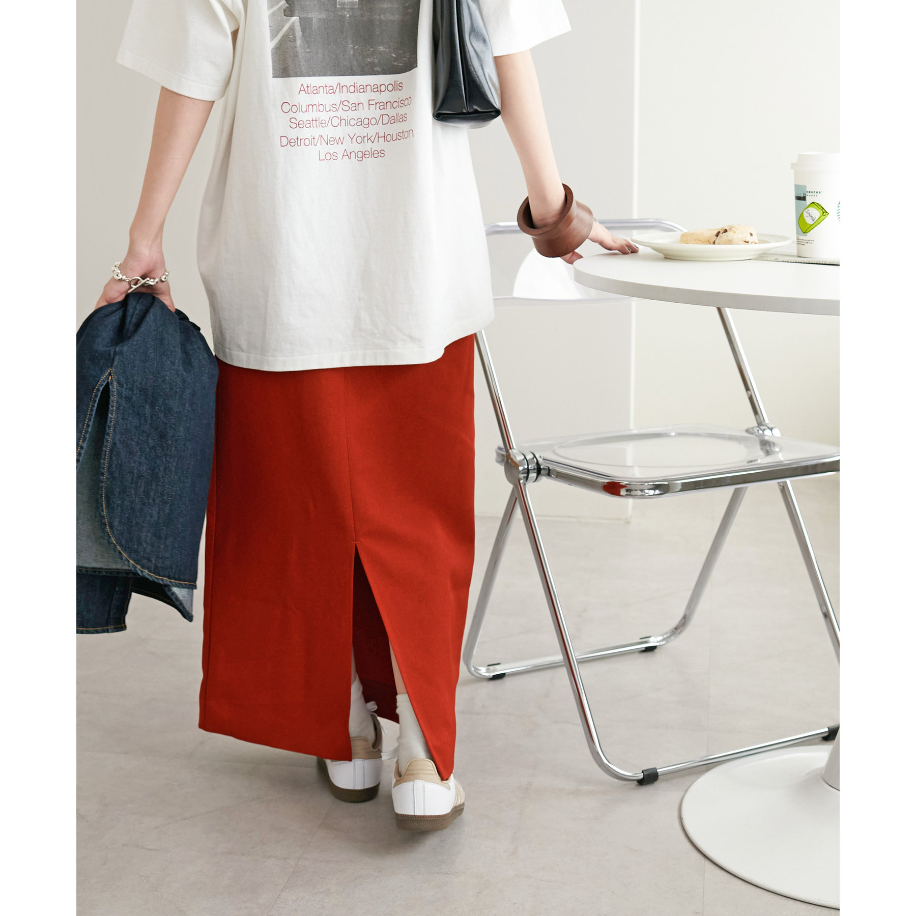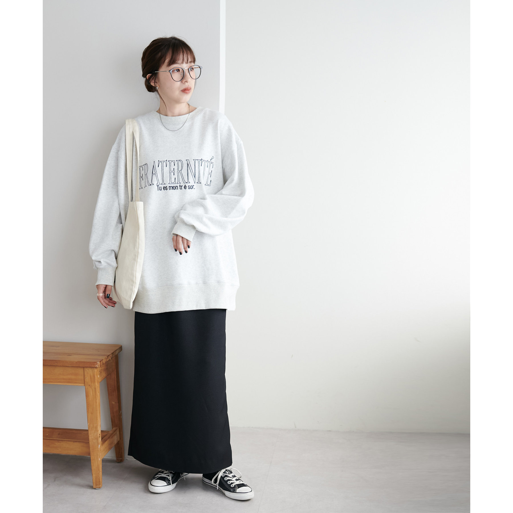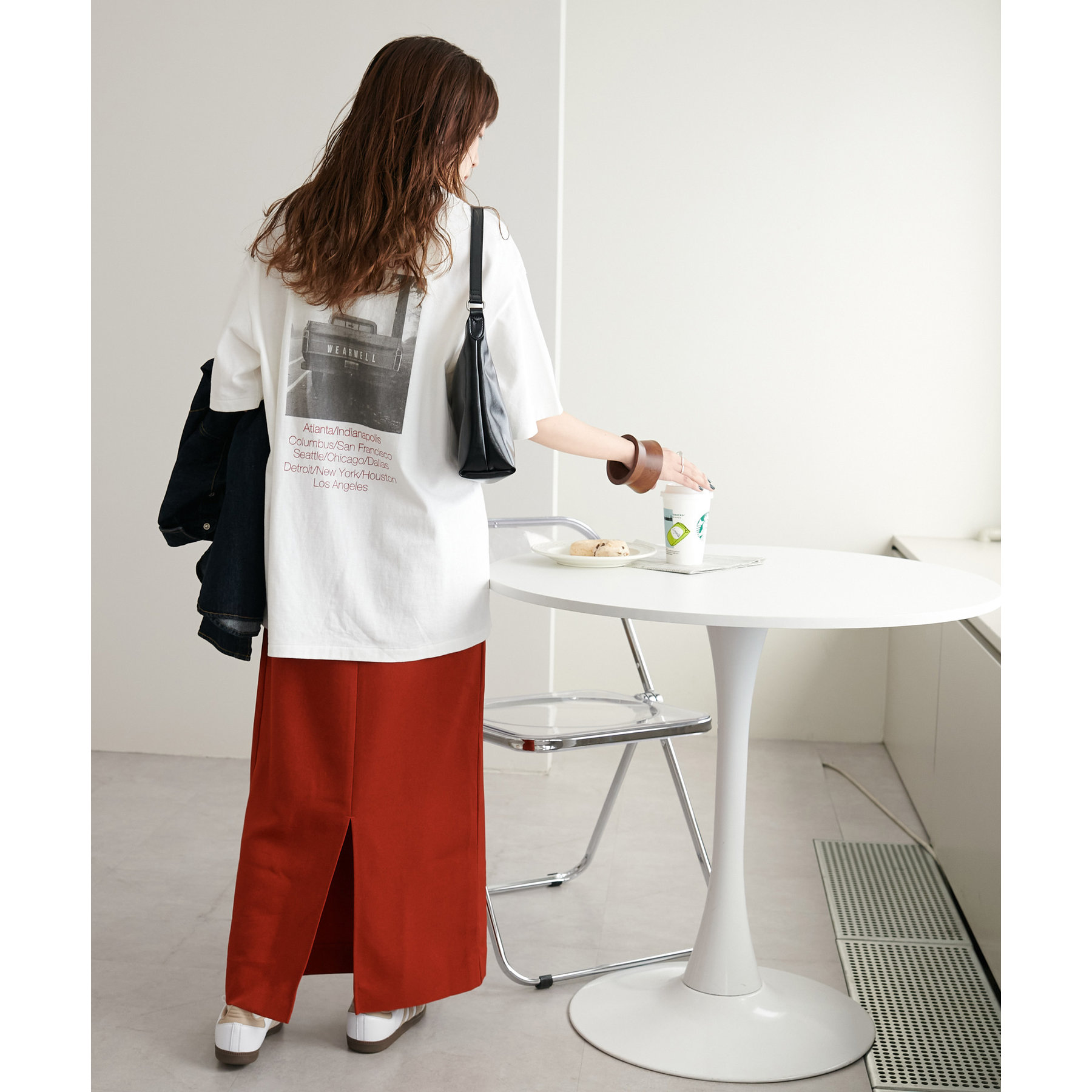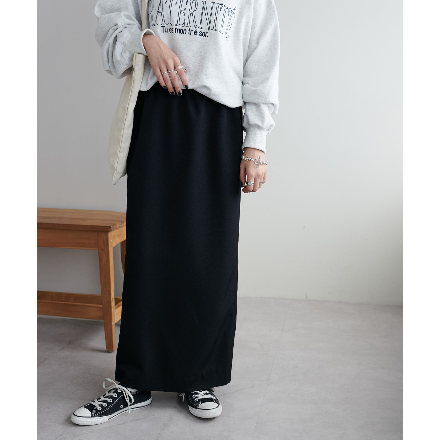 ショート丈のアイテムだけでなく、ルーズなシルエットのアイテムとも相性抜群です。