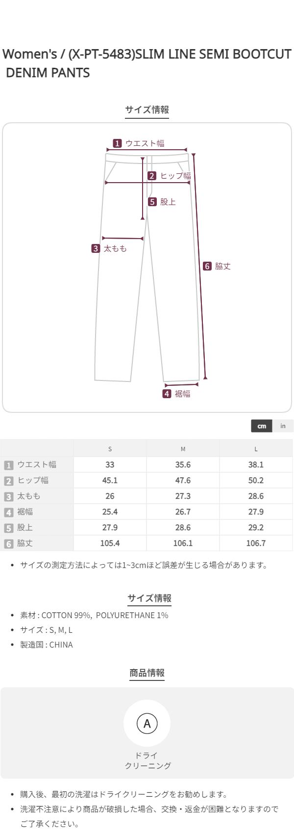 (X-PT-5483)SLIM LINE SEMI BOOTCUT DENIM PANTS