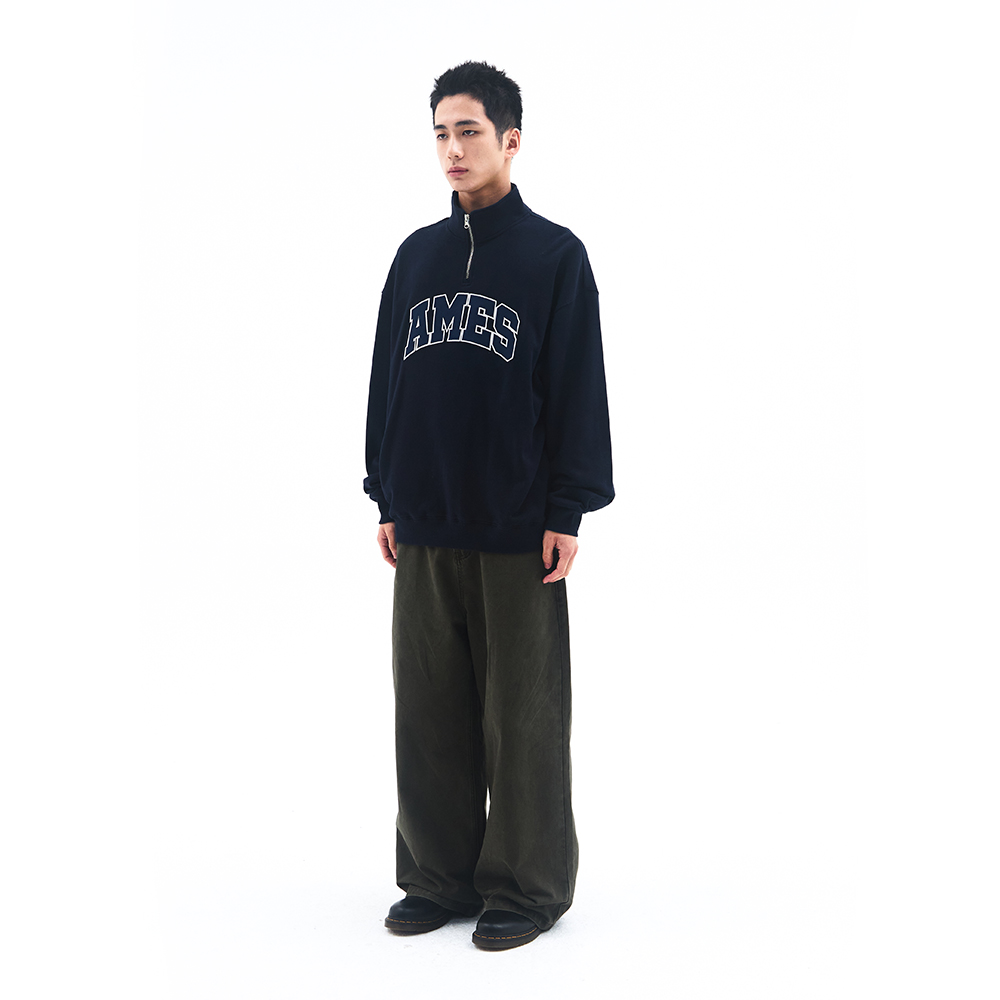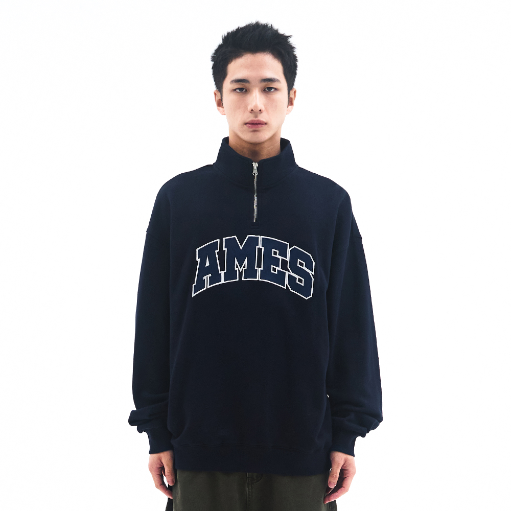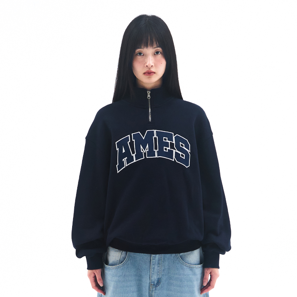 BASIC APPLIQUE HALF ZIP SWEATSHIRT NAVY