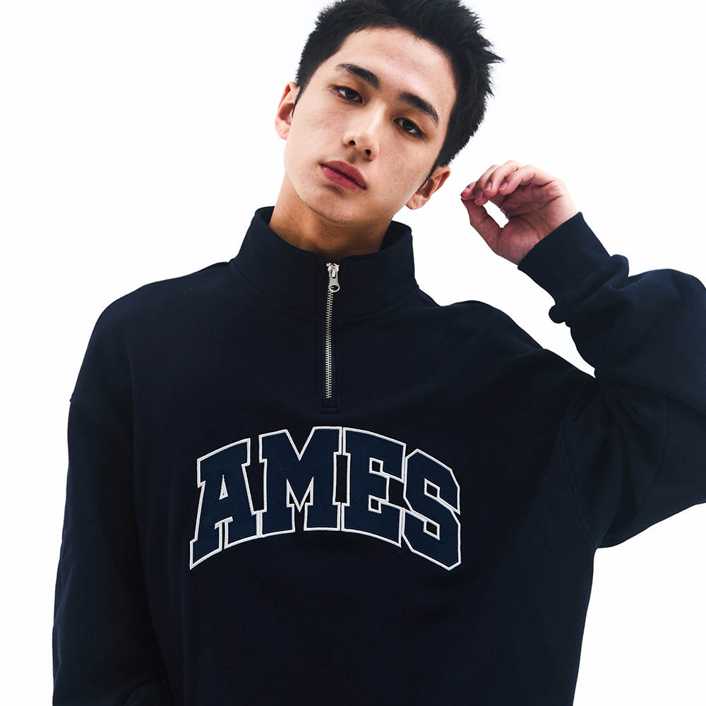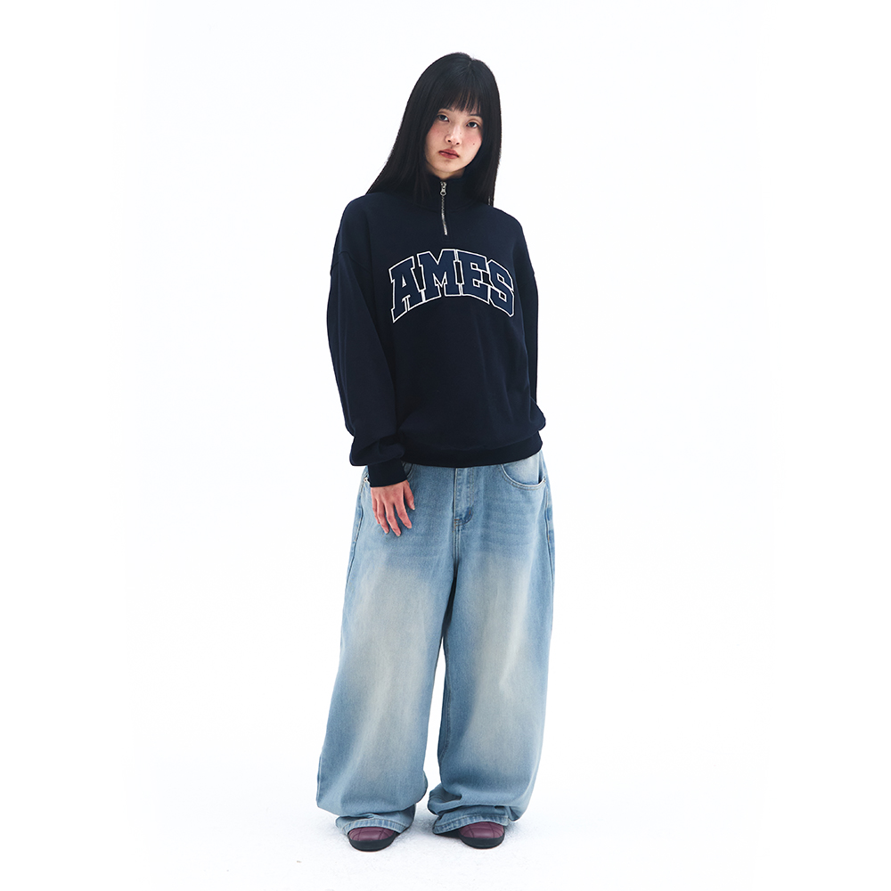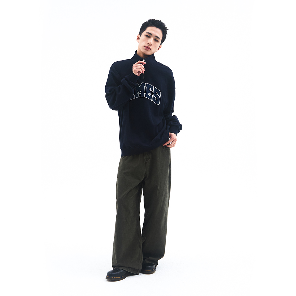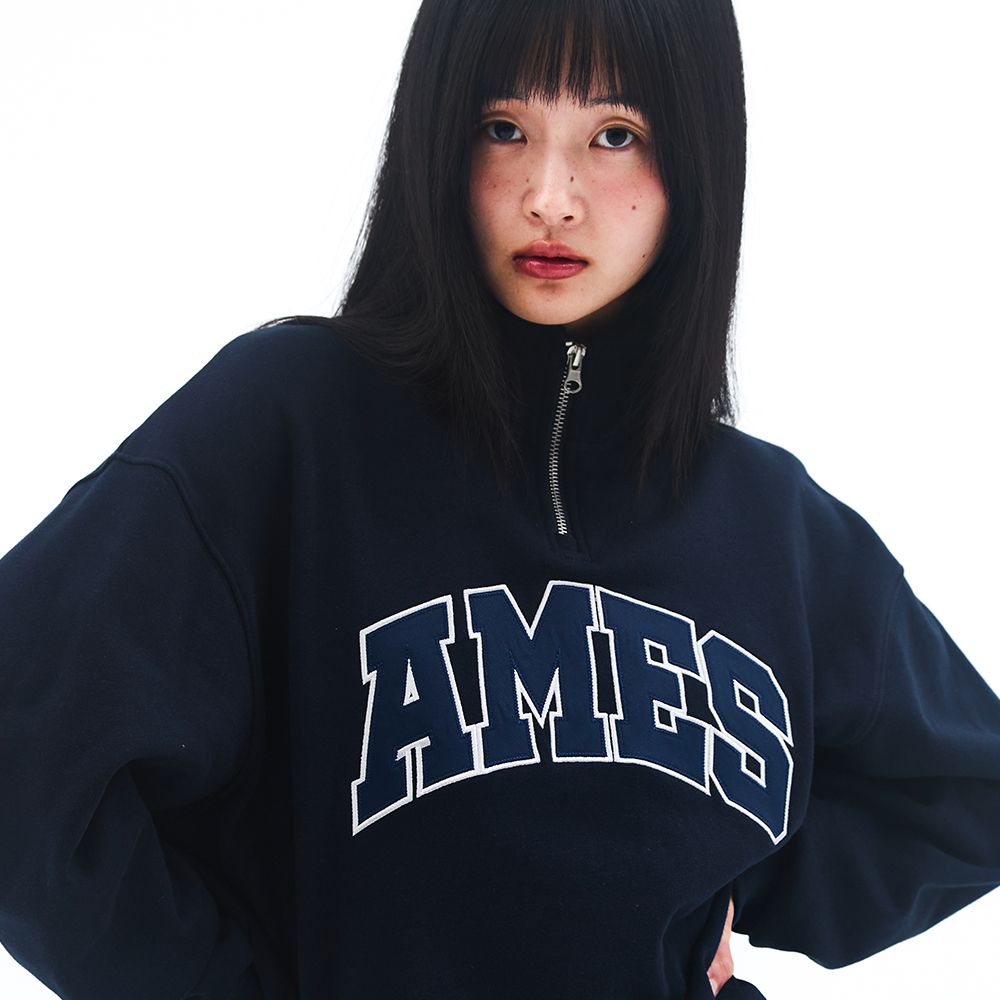 BASIC APPLIQUE HALF ZIP SWEATSHIRT NAVY