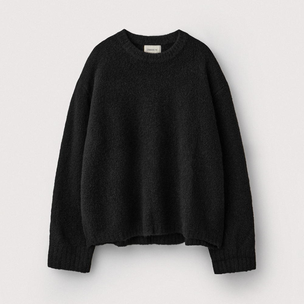 Wool Alpaca Button Sleeve Crewneck Pullover_Black