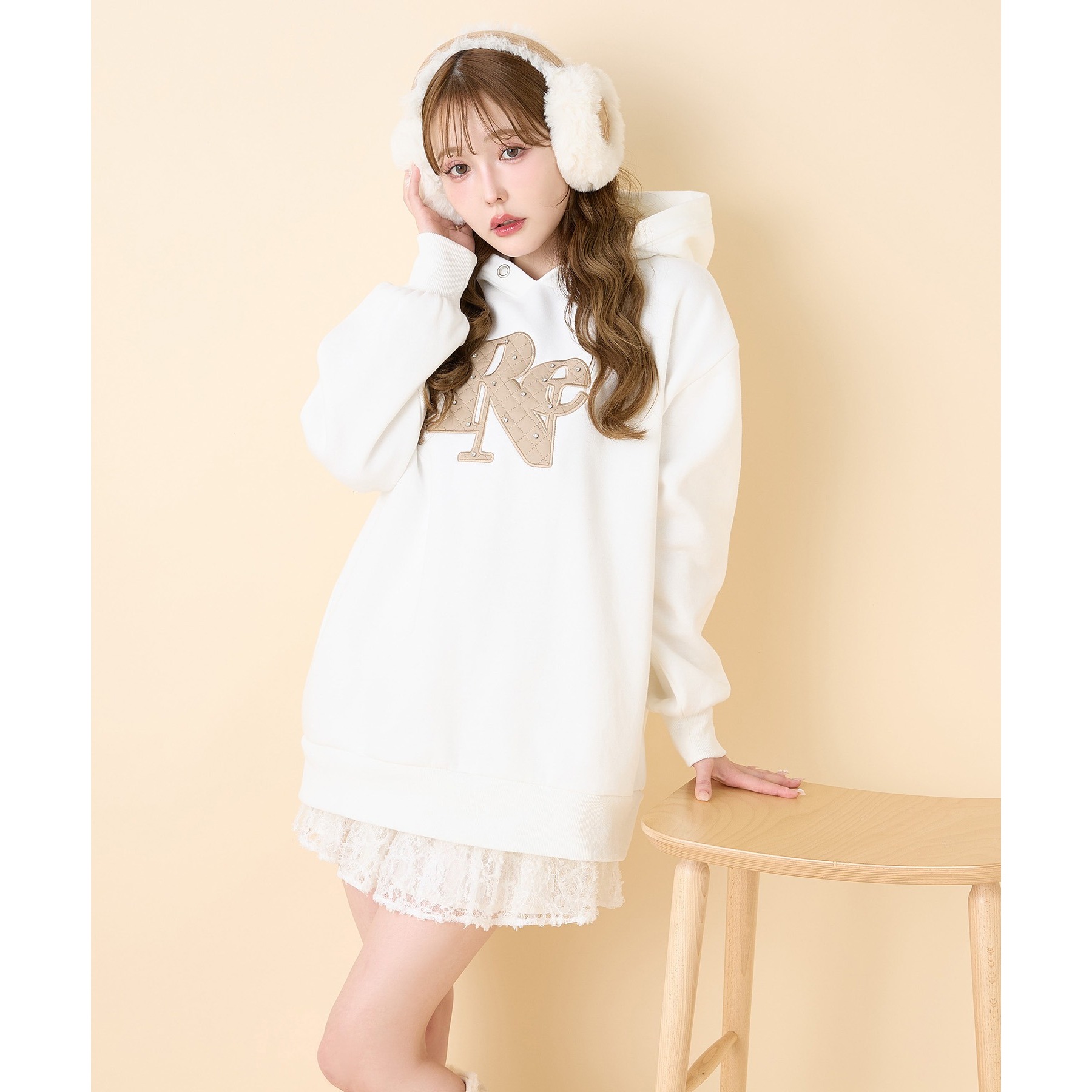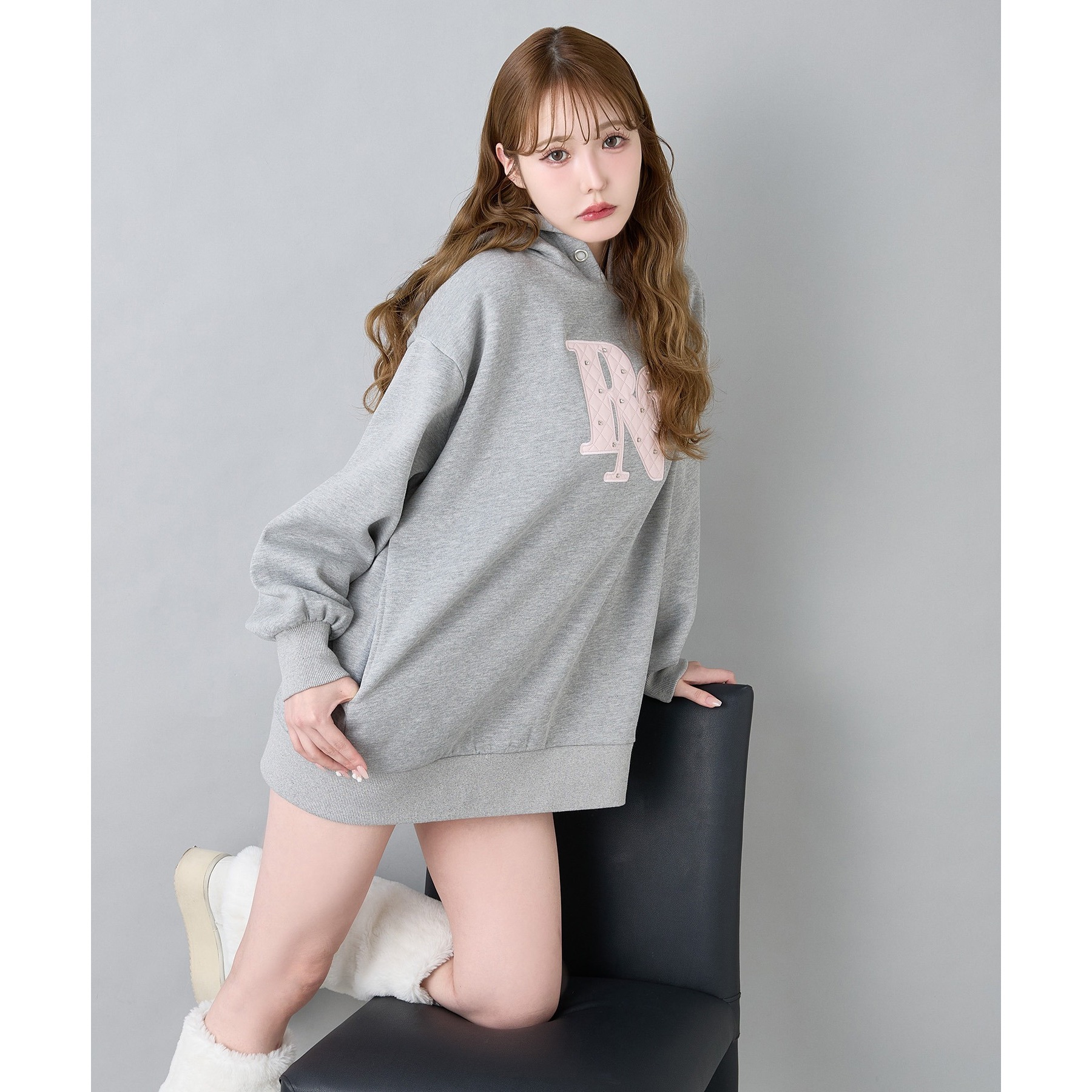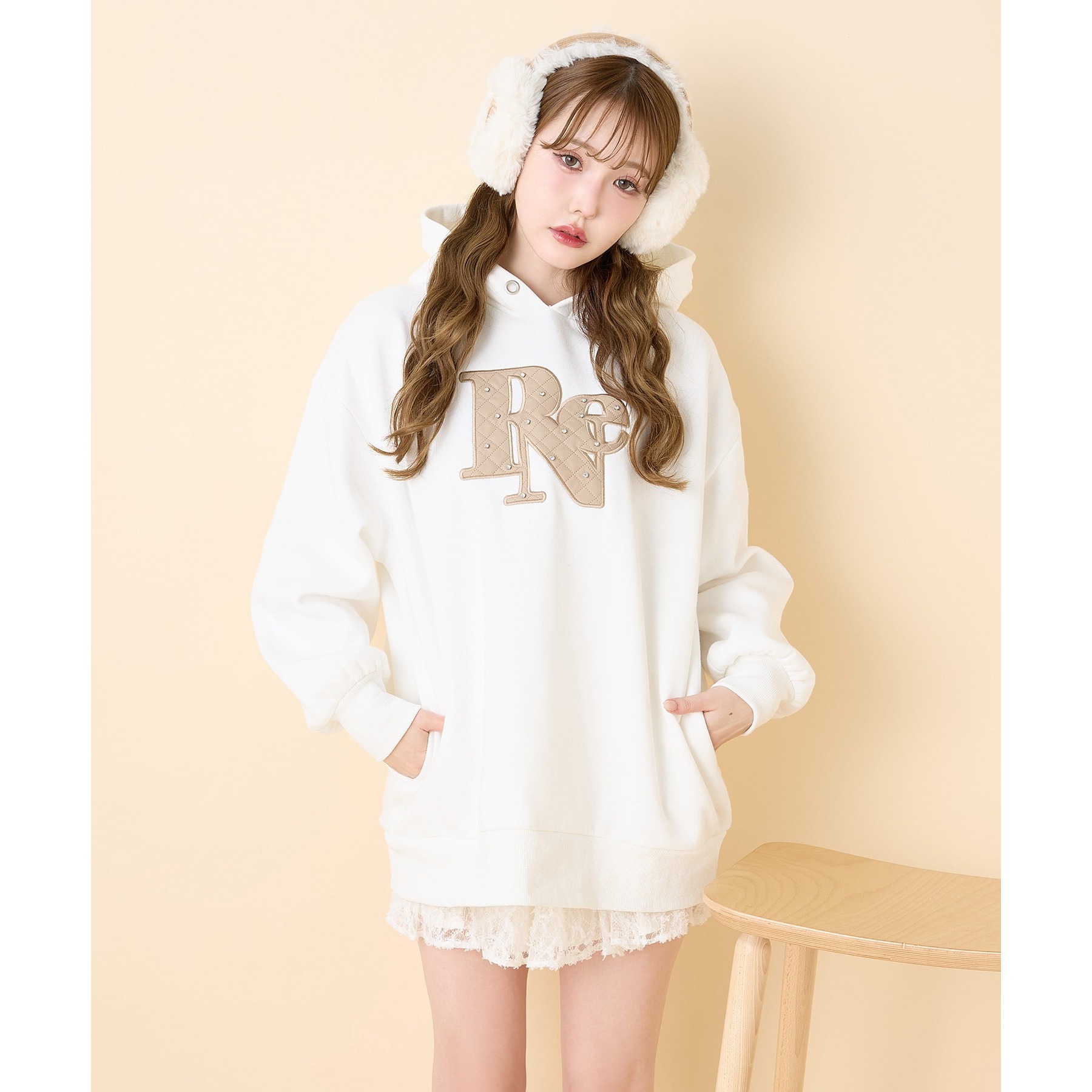 キルティングロゴゆるパーカー