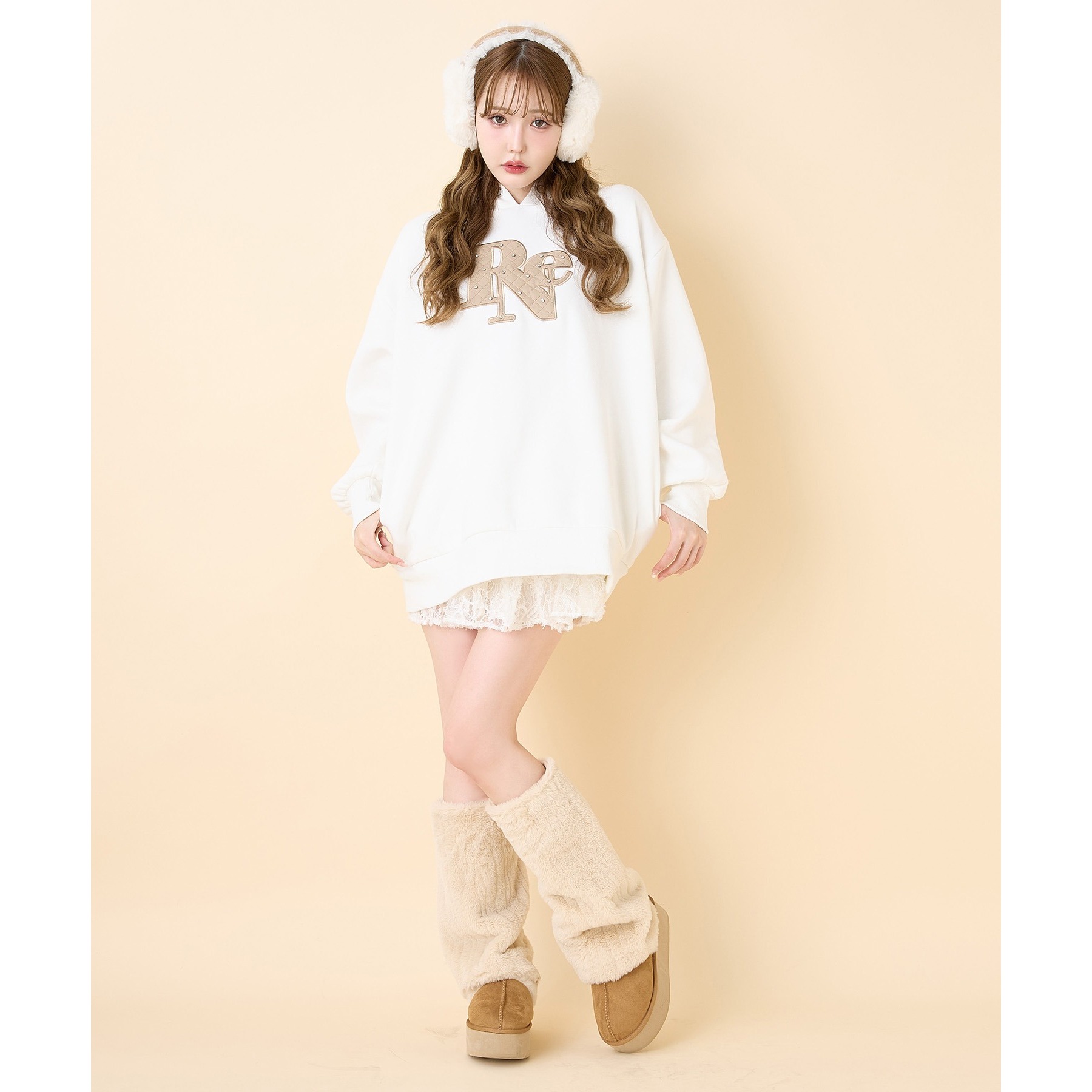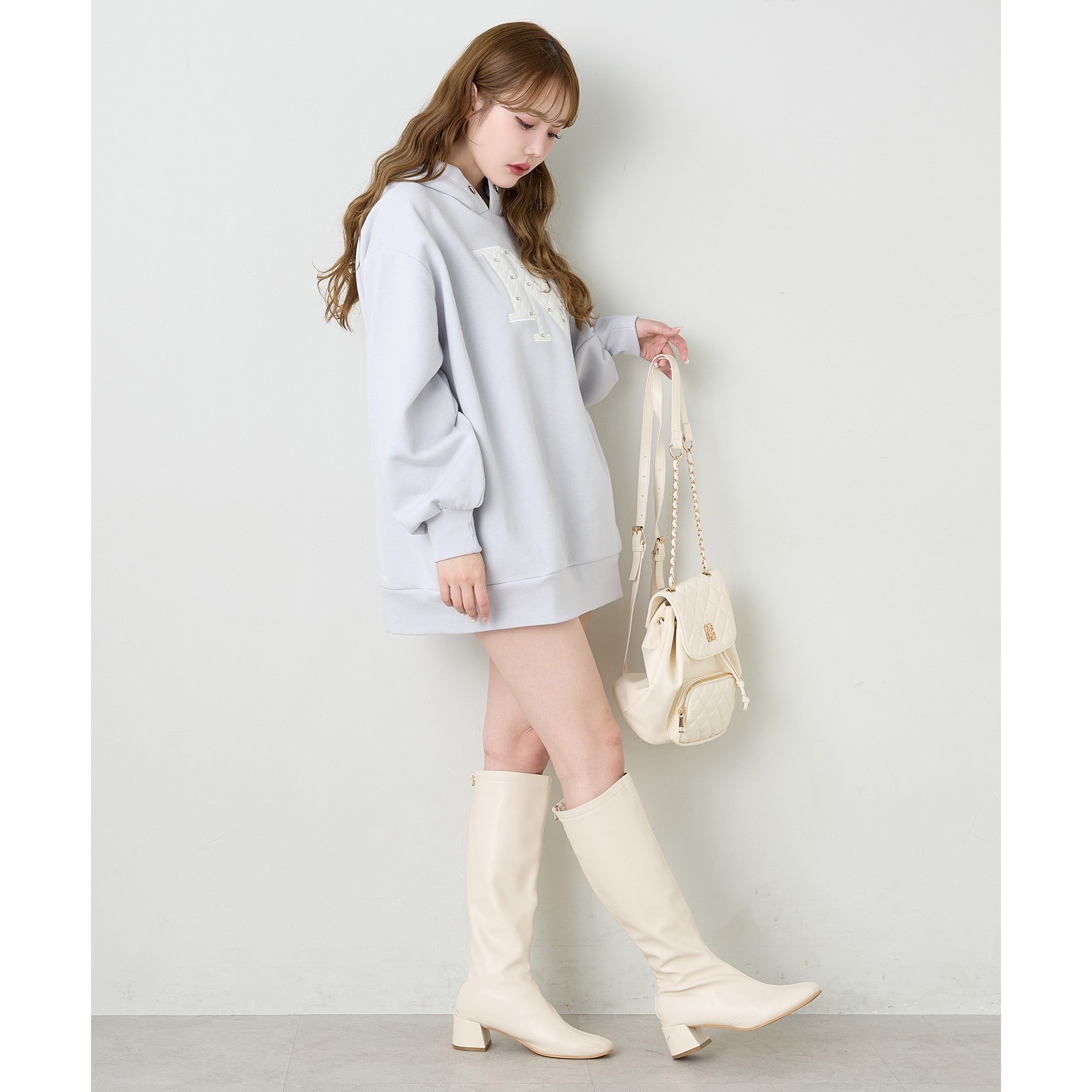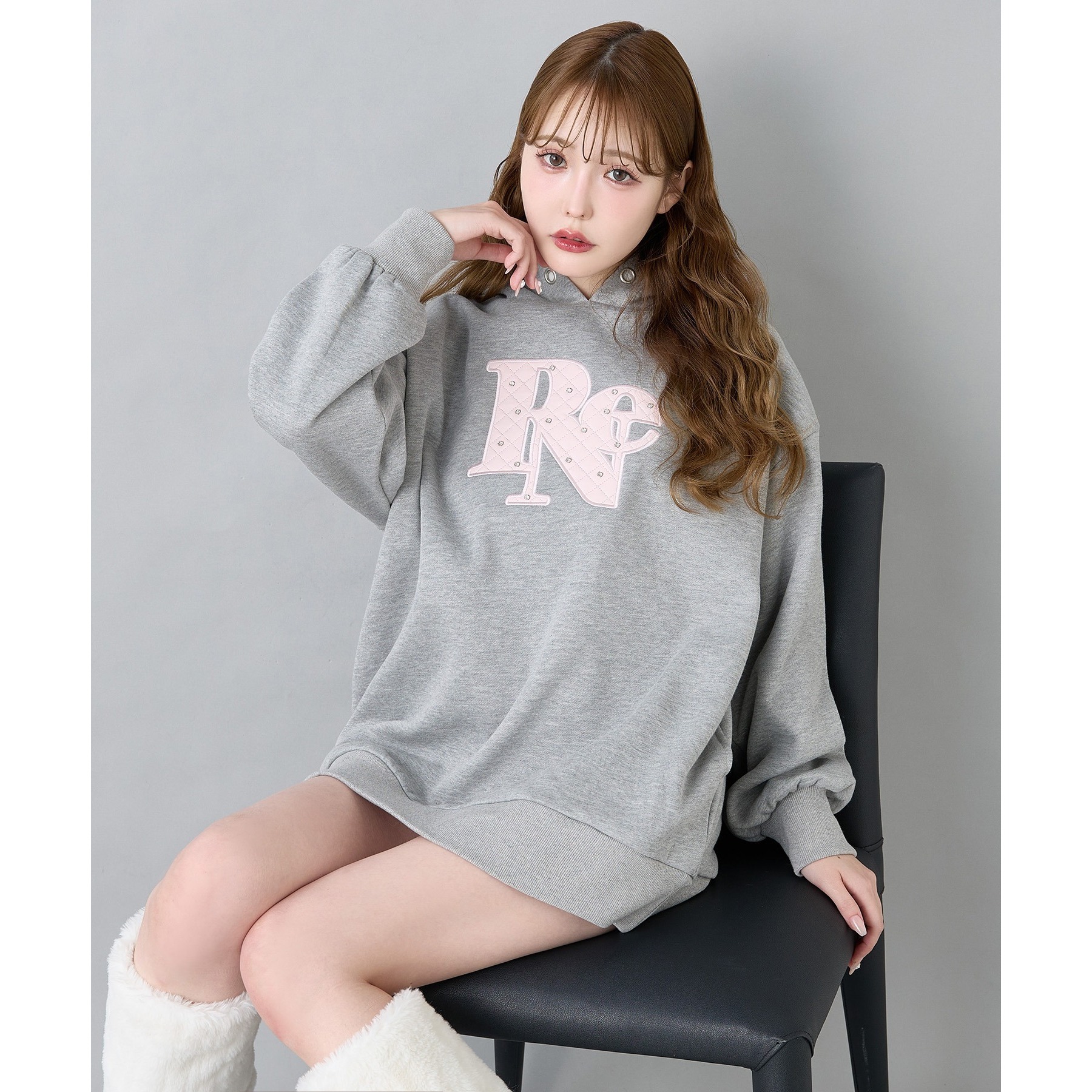 キルティングロゴゆるパーカー