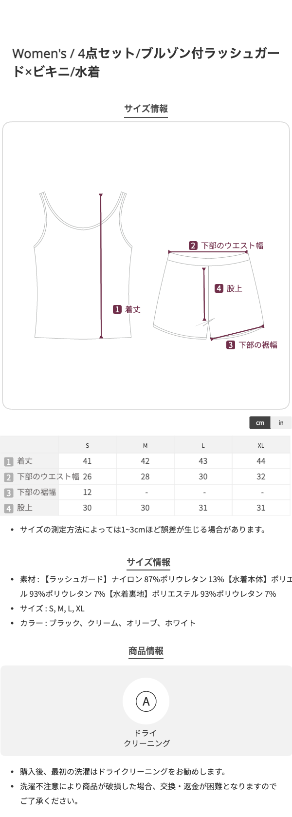 4点セット/ブルゾン付ラッシュガード×ビキニ/水着