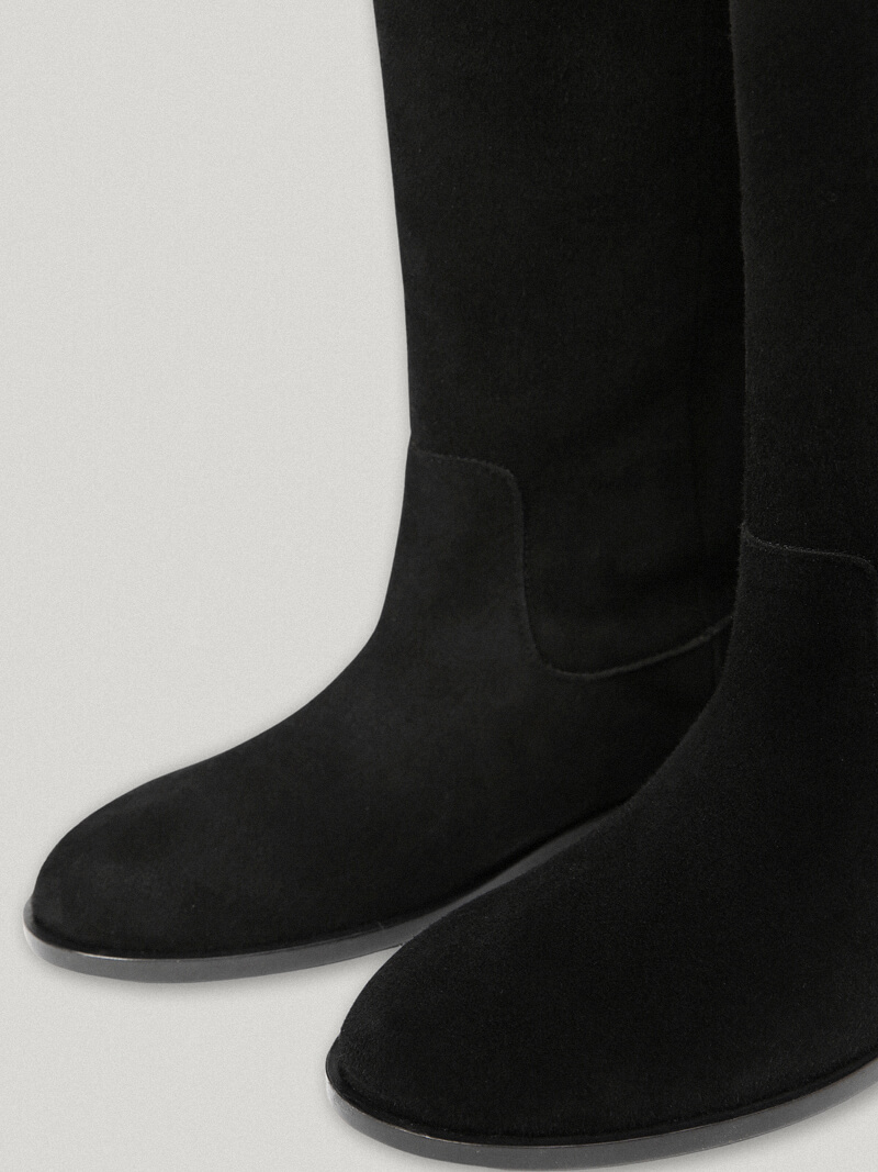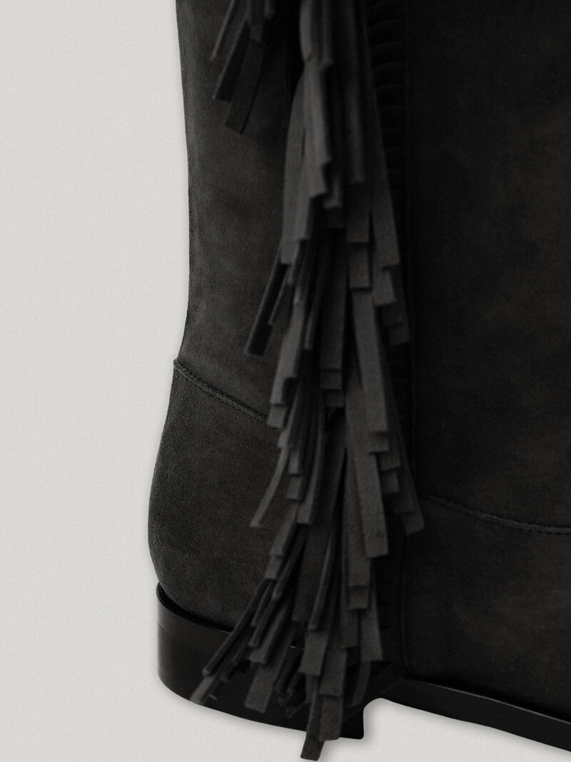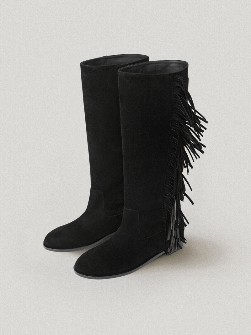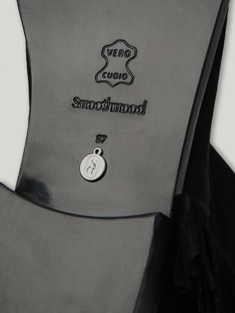 フリンジを加えることで、より自由でヴィンテージなルックを完成させるホームズフリンジニーブーツ。これはSmoothmoodのシグネチャーアイテムで、インターネット発展前の80年代・90年代の雑誌のクラシックなヴィンテージルックにインスパイアされています。ホームズのニーブーツにはフリンジのディテールが施されており、動くたびにふらひらと揺れる魅力的なスエードブーツです。スウェードブーツは、すべてのスムージムードにヴィンテージなスタイルでマッチしています。外側は柔らかいラムスキンスエードを使用し、内側の皮はカーフスキンで贅沢に仕上げられています。 より官能的で快適にスタイリングできます。脚のラインも細く見えます。靴底はイタリア語で本革を意味する最高品質のレザーソール「ヴェロ・クオイオ」で作られており、滑らかなシンボルロゴのペンダントで小さなエッジが特徴です。外殻ラムスキンスエードの内側のカーフスキンフリンジディテール、最高品質のレザー製ヴェロクオイオレザーウィンドウ、快適なウッドアウトソールに滑らかなロゴペンダント*ホームズニーブーツのリラックスしたフィット感とフィット感をそのまま感じたいなら、ワンサイズアップをおすすめします*ホームズニーブーツは履くほど自然なシワやひび目が増すアイテムです。 履く際はシワが少し少なくなることに注意する方が良いでしょう*ホームズニーブーツはトープと黒スエードのシープスキンでテンションにわずかな違いがあるかもしれません。トープはより滑らかで、黒は比較的硬く丈夫です。革の色分けの過程で同じ素材でも、厚みや質感の微妙な違いが異なることがあります*ラムスキンスエード素材は、本革の性質上、カット仕上げにしわや斑点、色の違い、木目、腱、傷、粉末の滴が見られることがあります。 湿気(雪や雨にはご注意ください)に注意してください。スエードの性質上、色はモニターや日光、照明によって異なる見た目になることがあります。製品の性質上、靴のかかとやアウトソールに傷やシミがつくことがありますので、ご注意ください *1:1 本製品はカスタムメイド商品であり、注文後にキャンセル・交換・返品・返金はできません。カスタム生産期間は10〜14営業日かかります