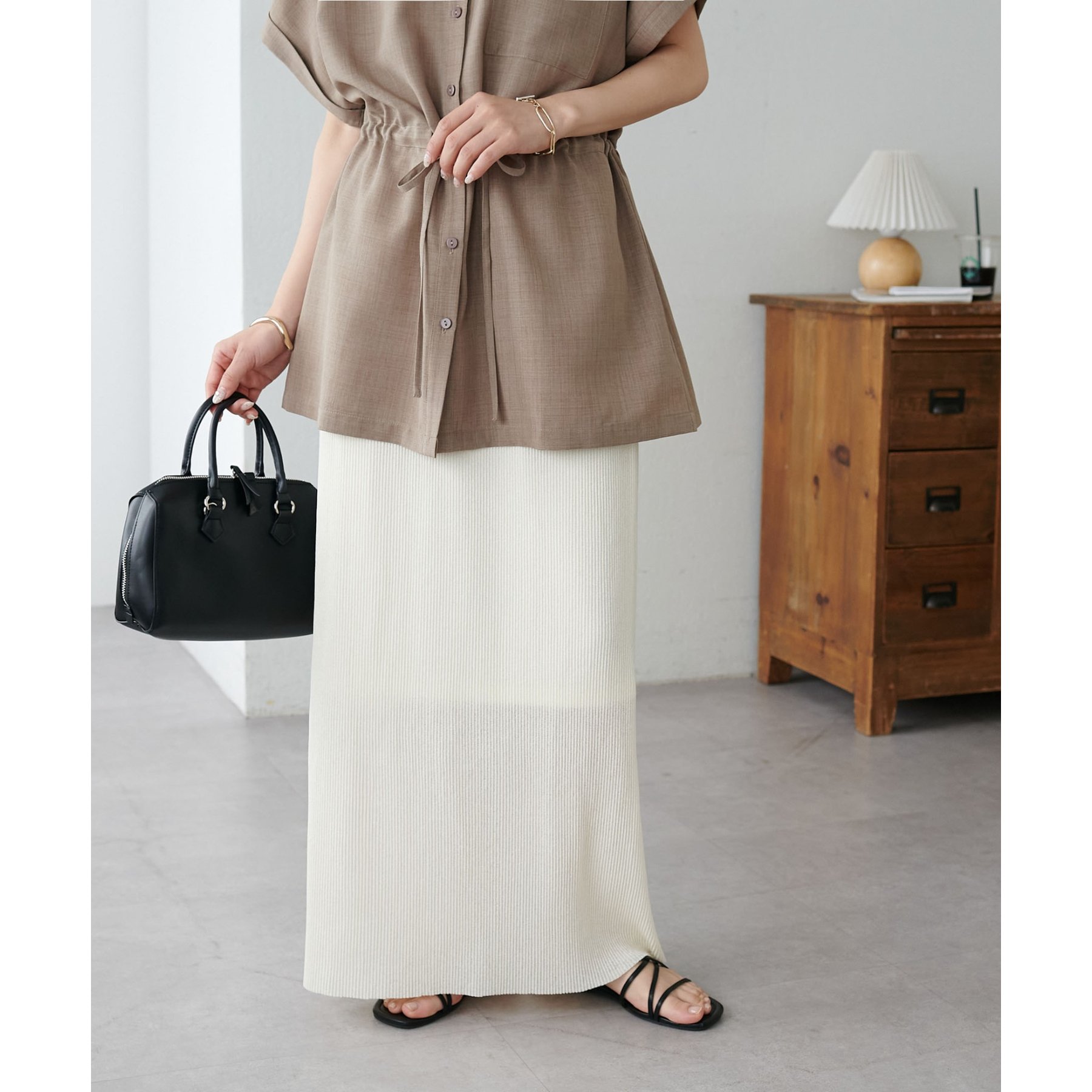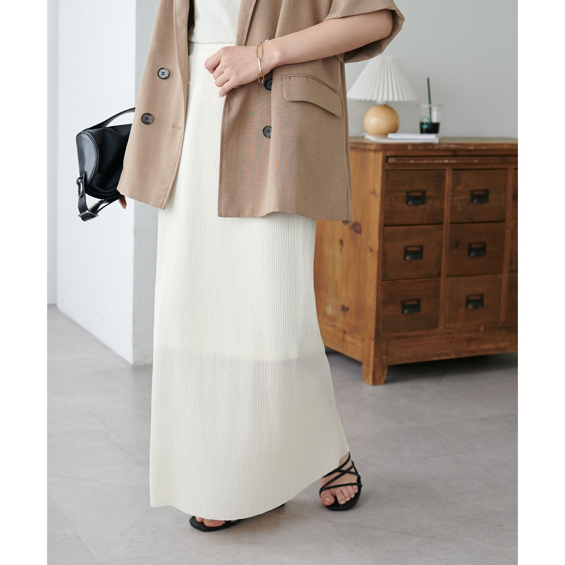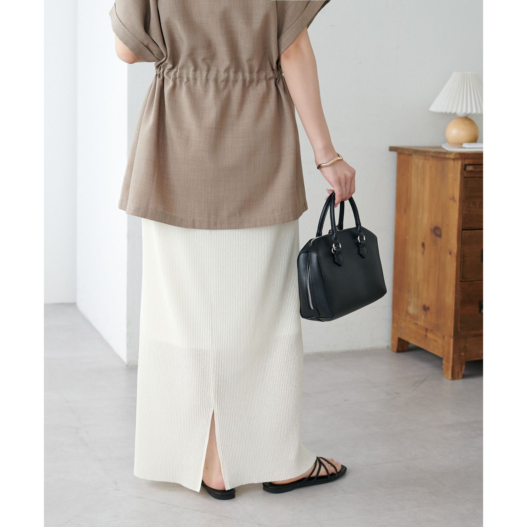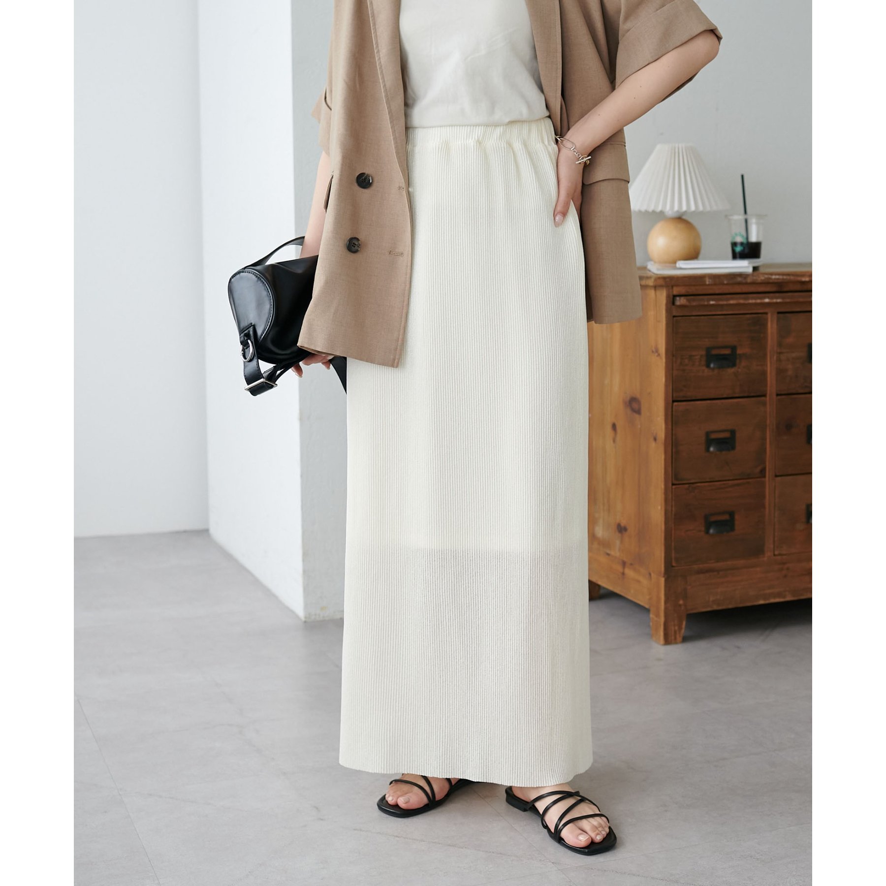 プリーツデザインとナローシルエットが、Iラインをすっきりと見せてくれスタイルアップを叶えます!