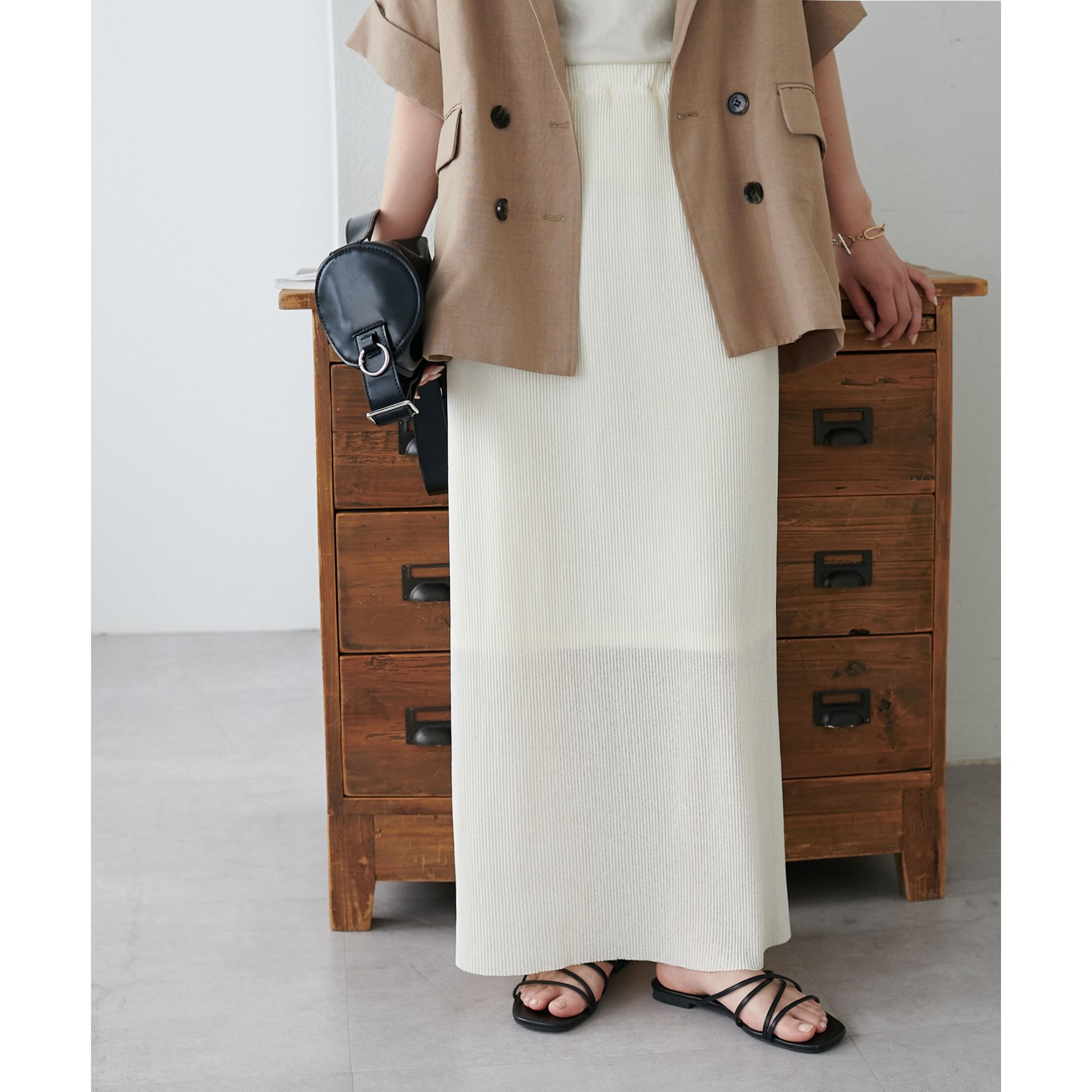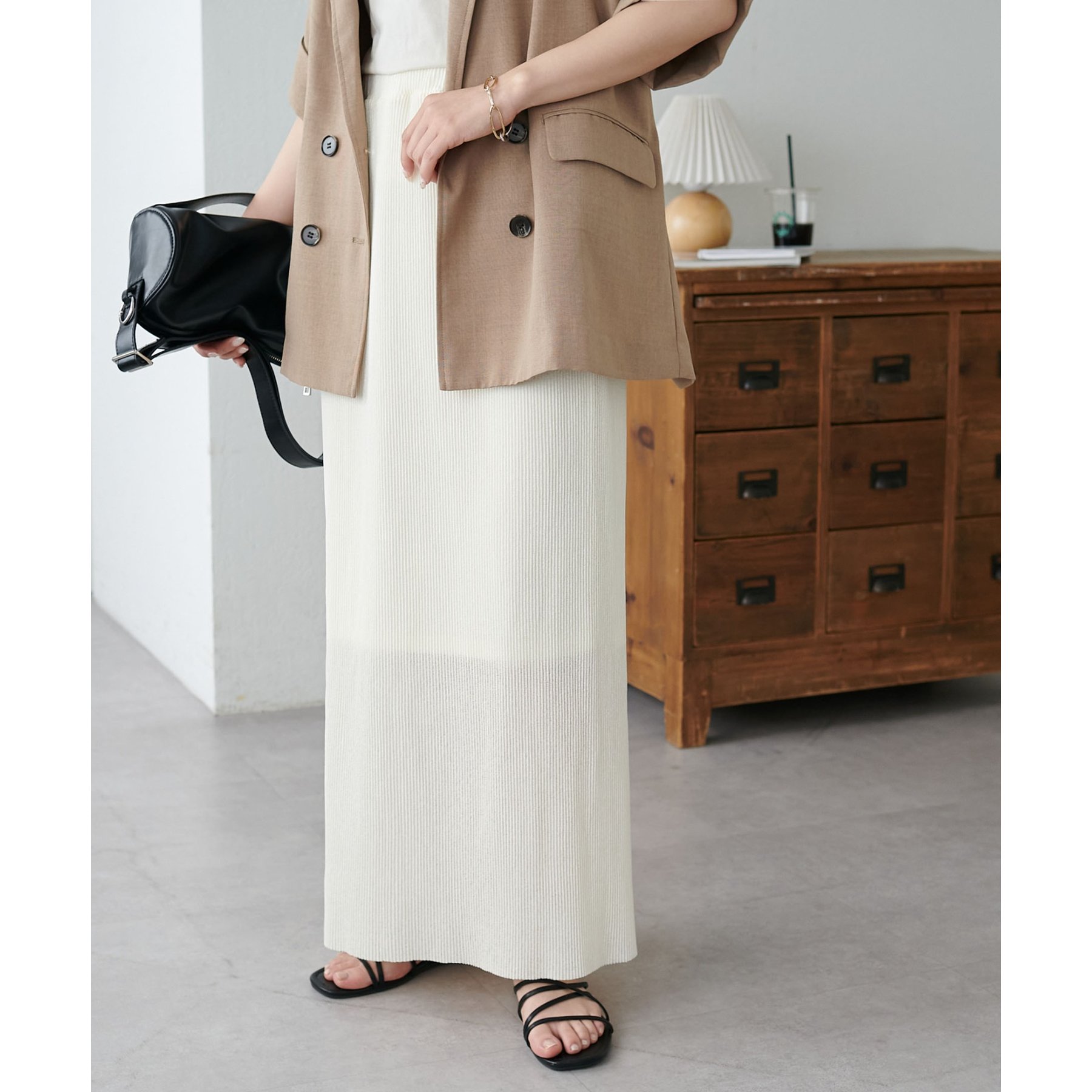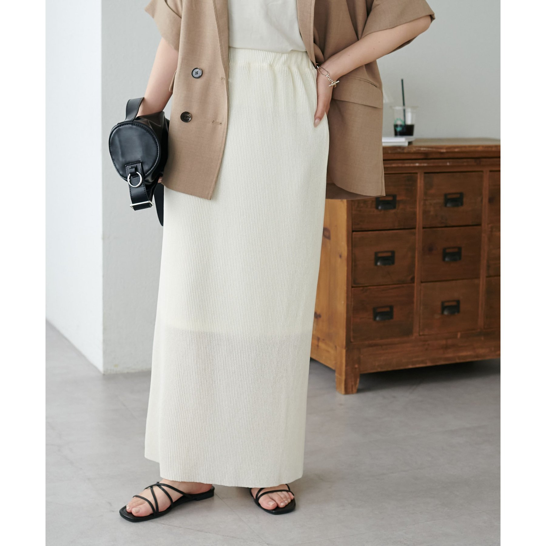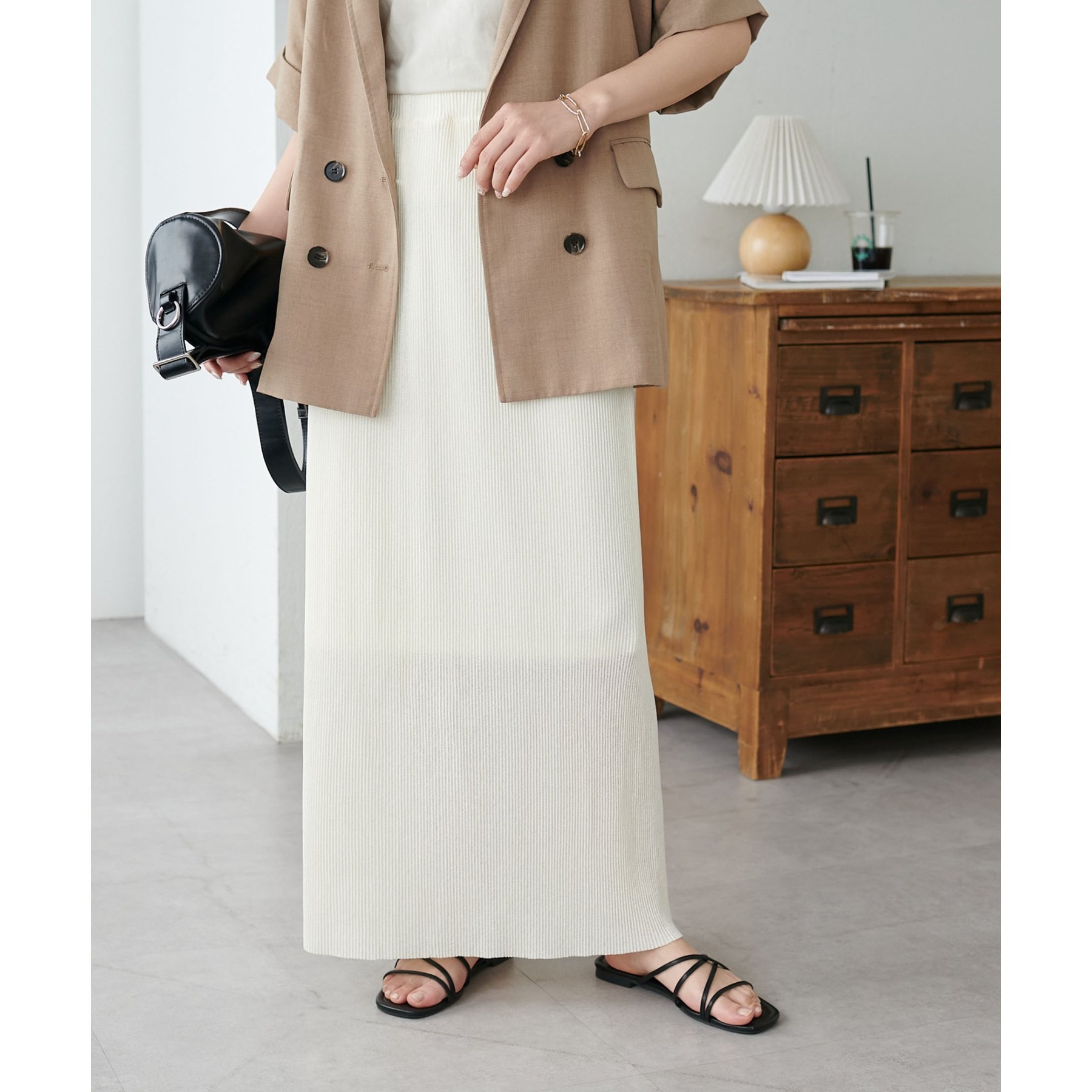 プリーツデザインとナローシルエットが、Iラインをすっきりと見せてくれスタイルアップを叶えます!