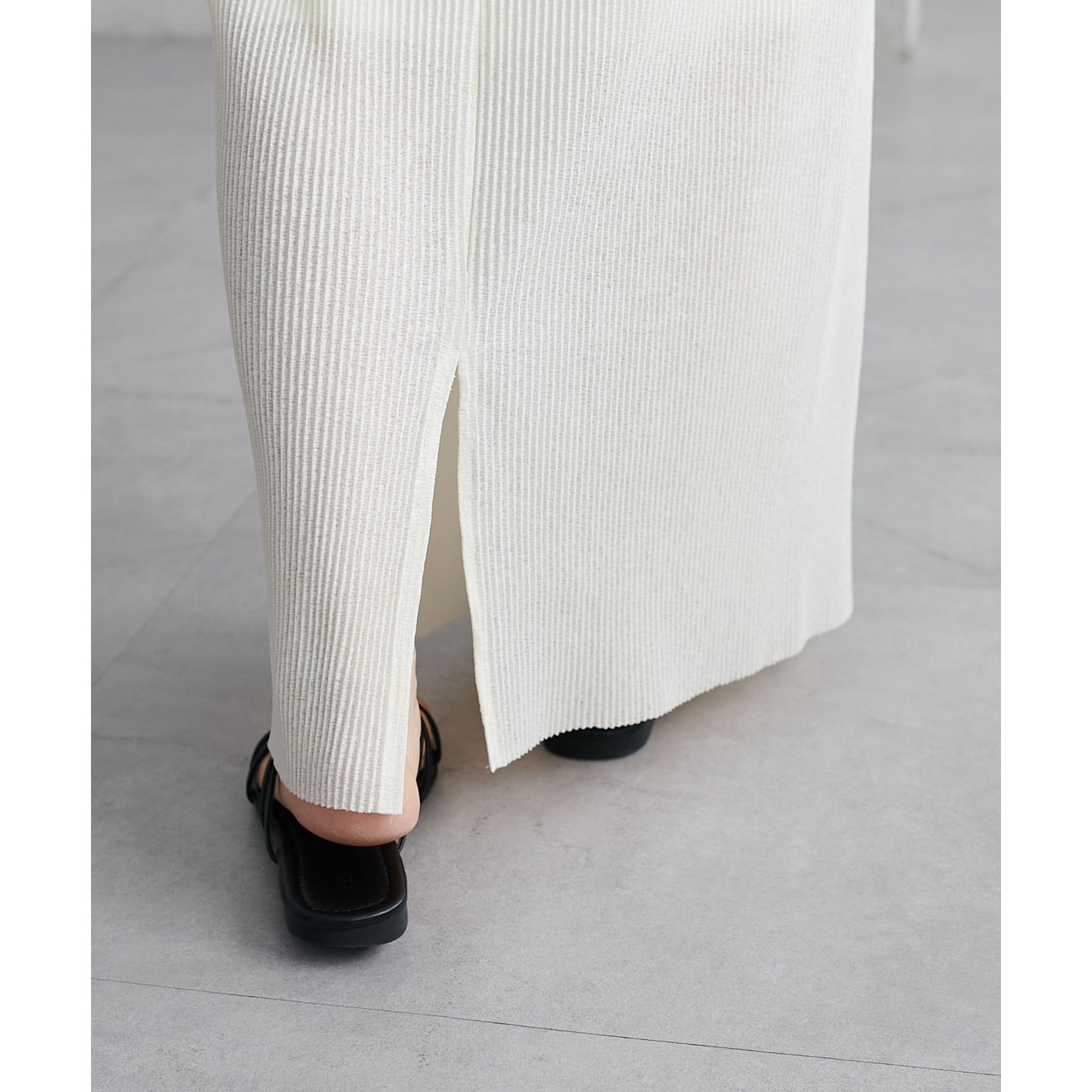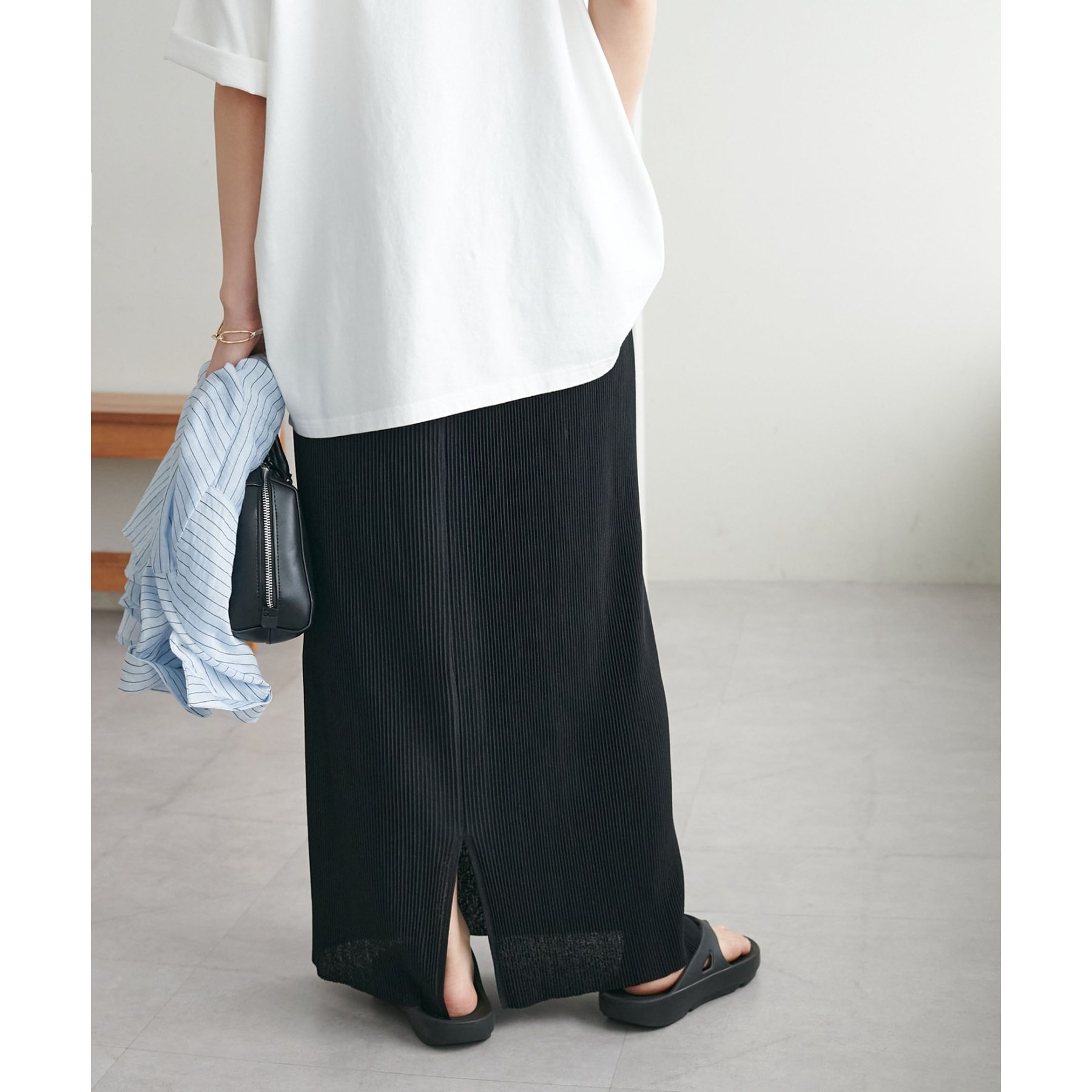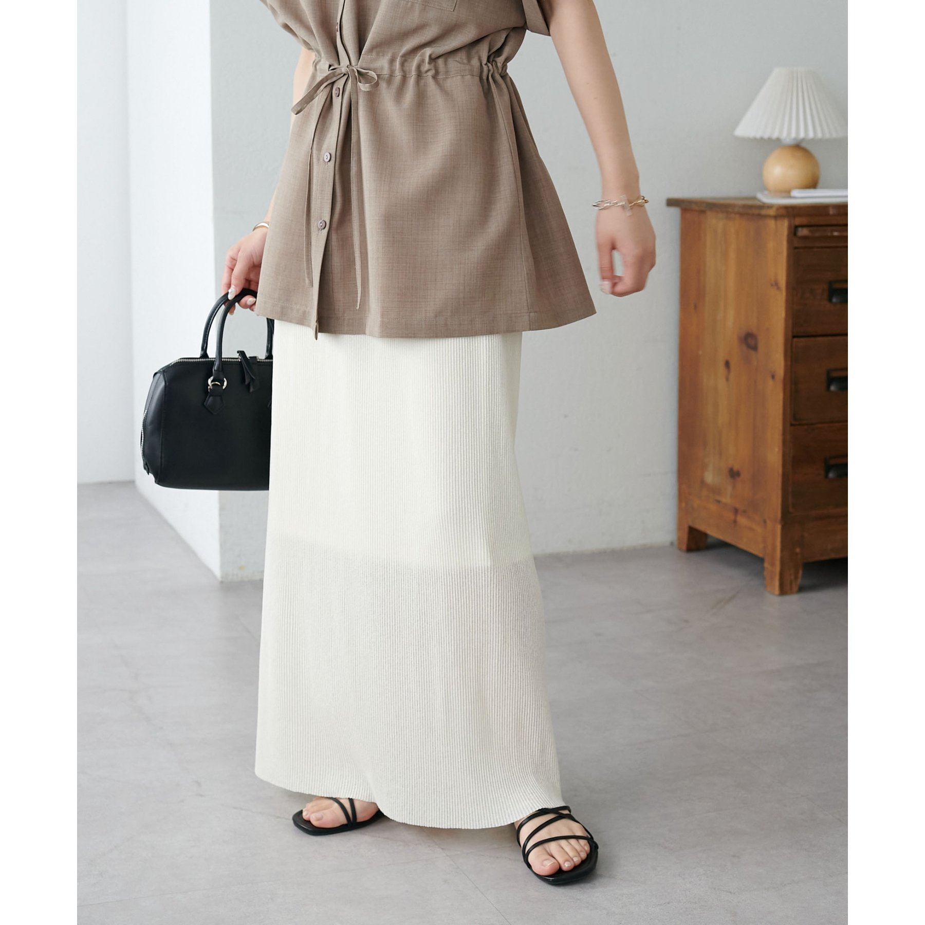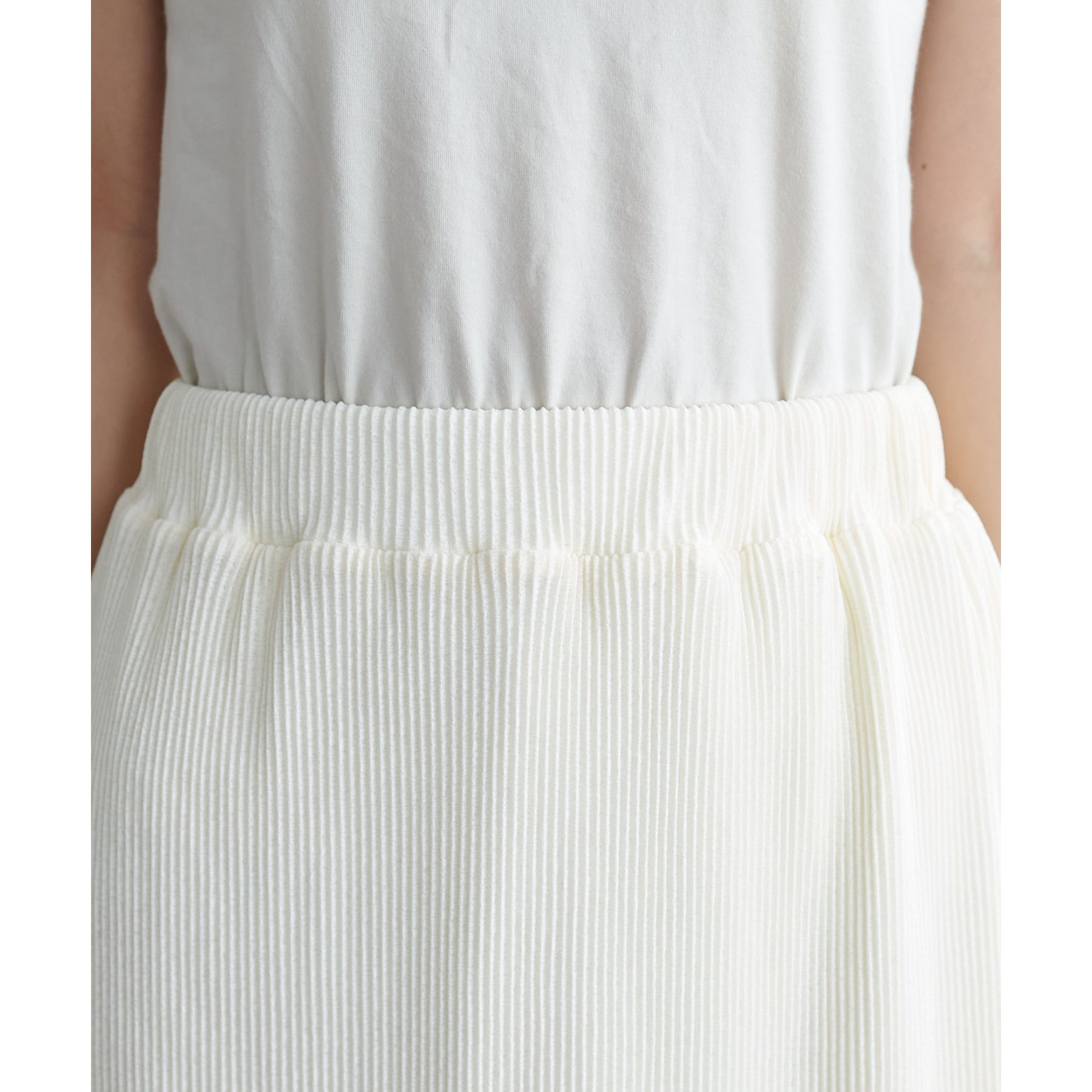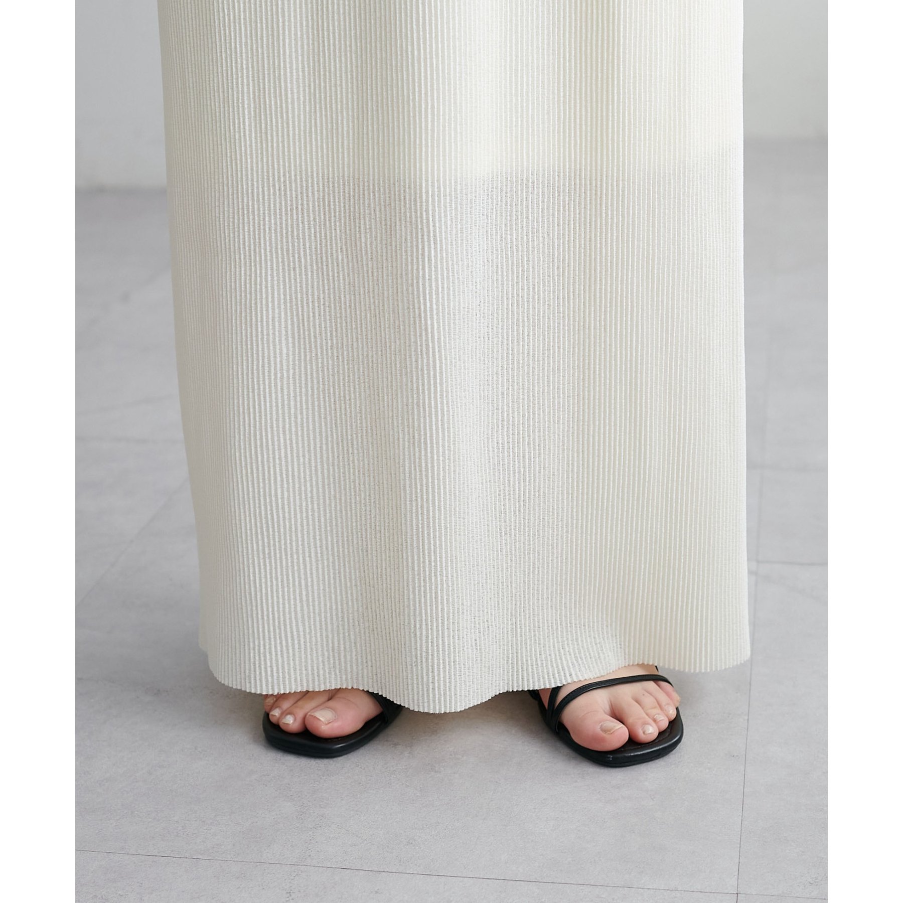 縦のラインを強調する細かなプリーツですっきりとした印象に