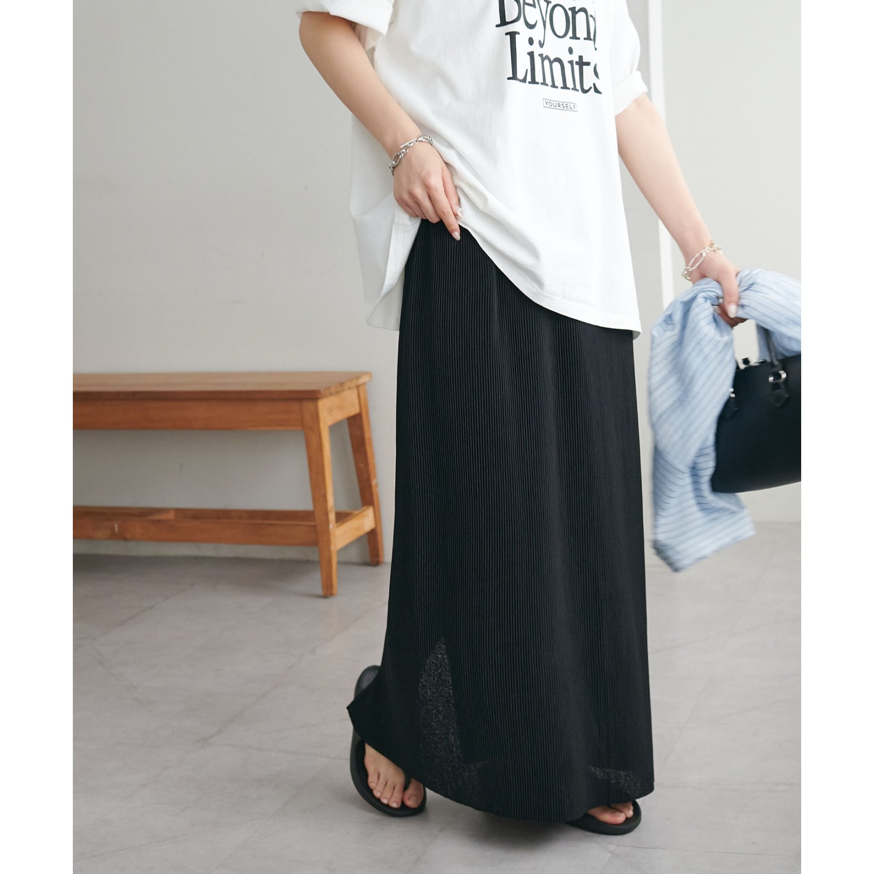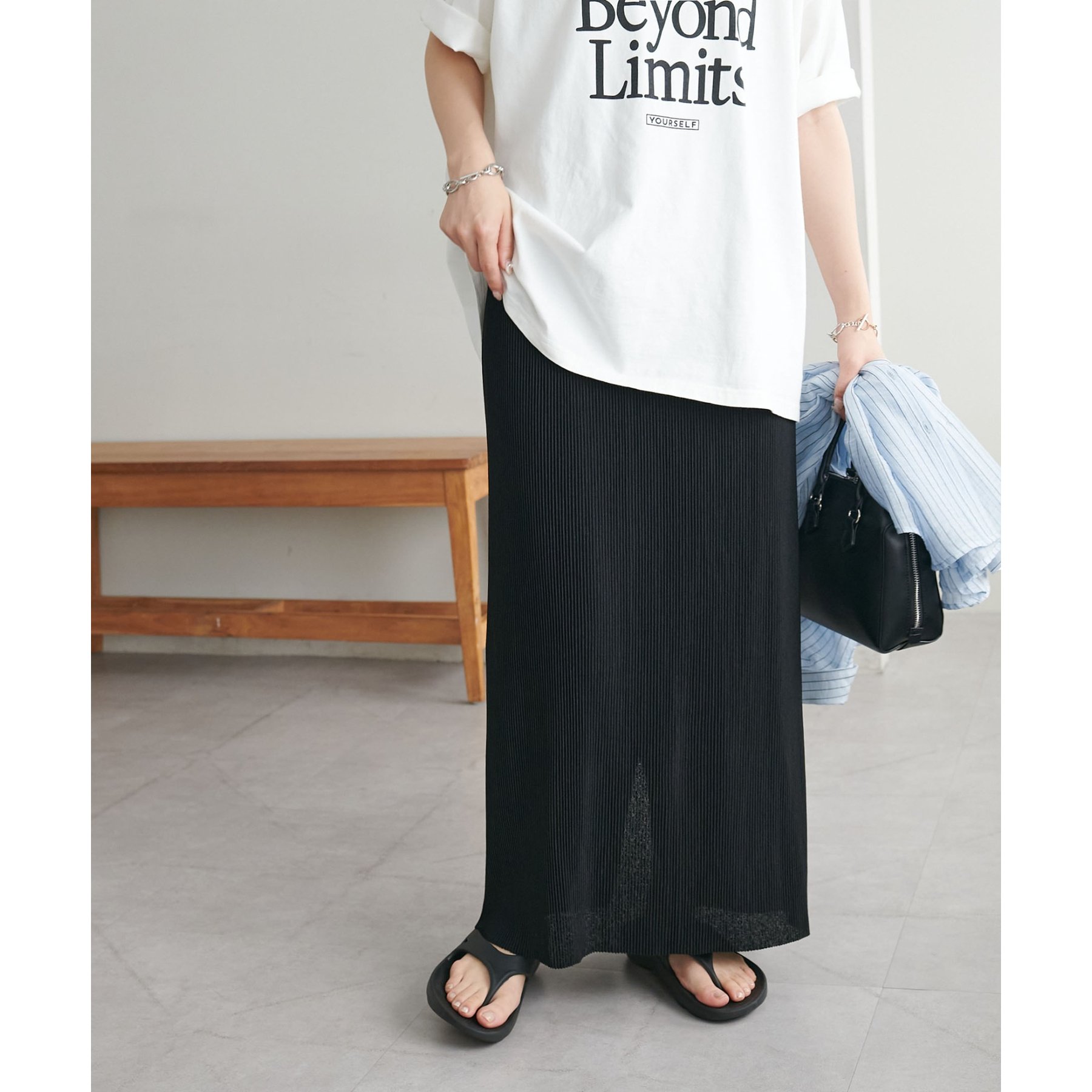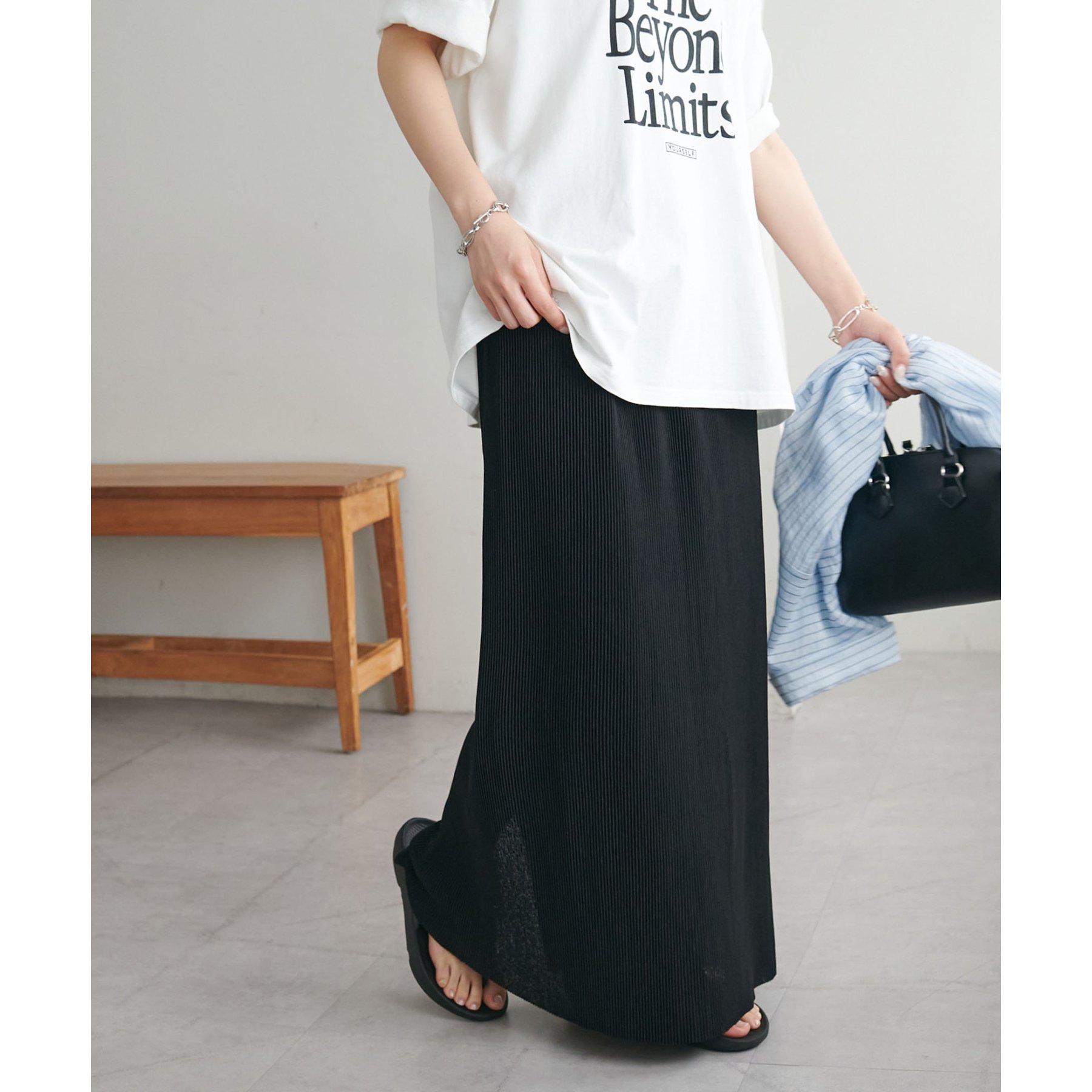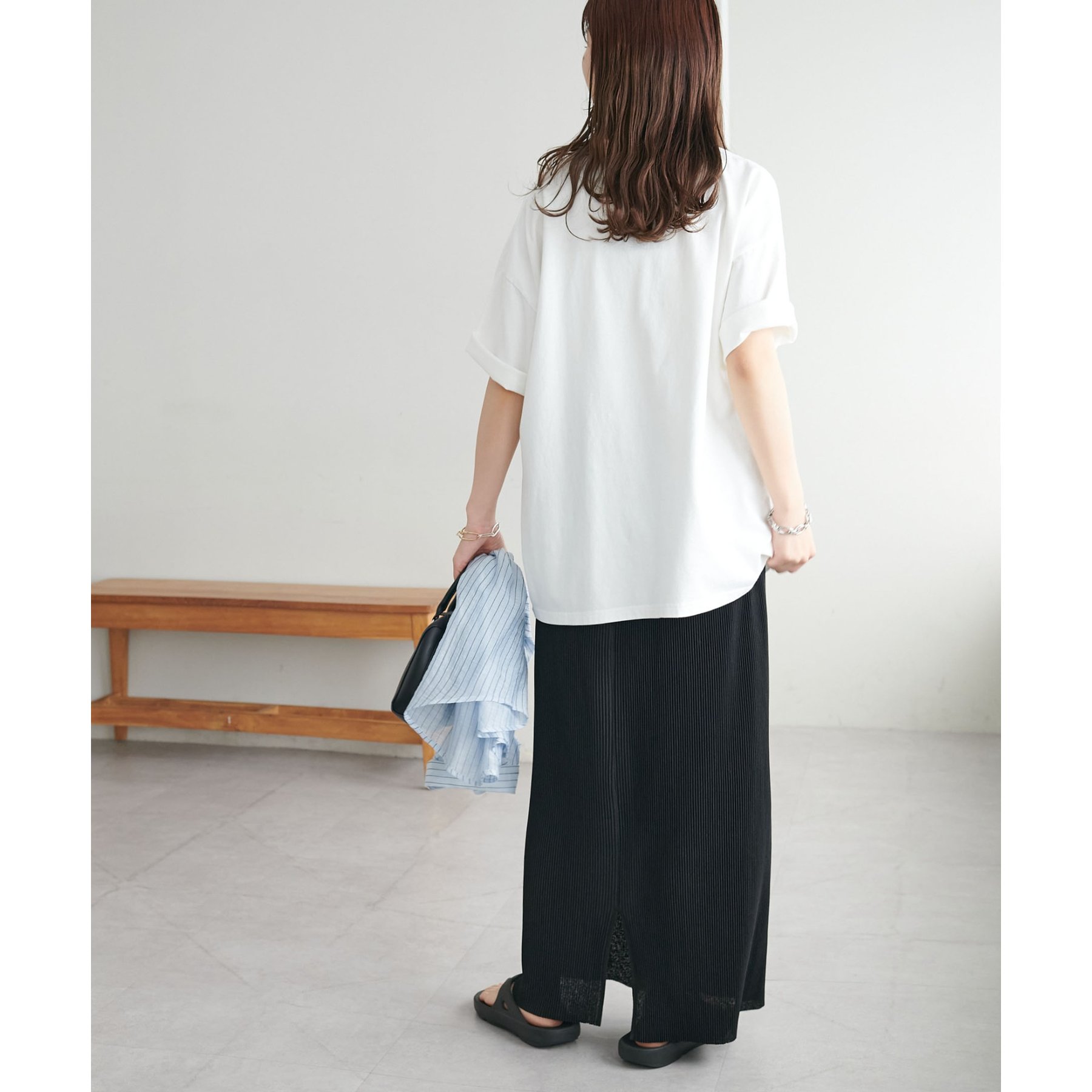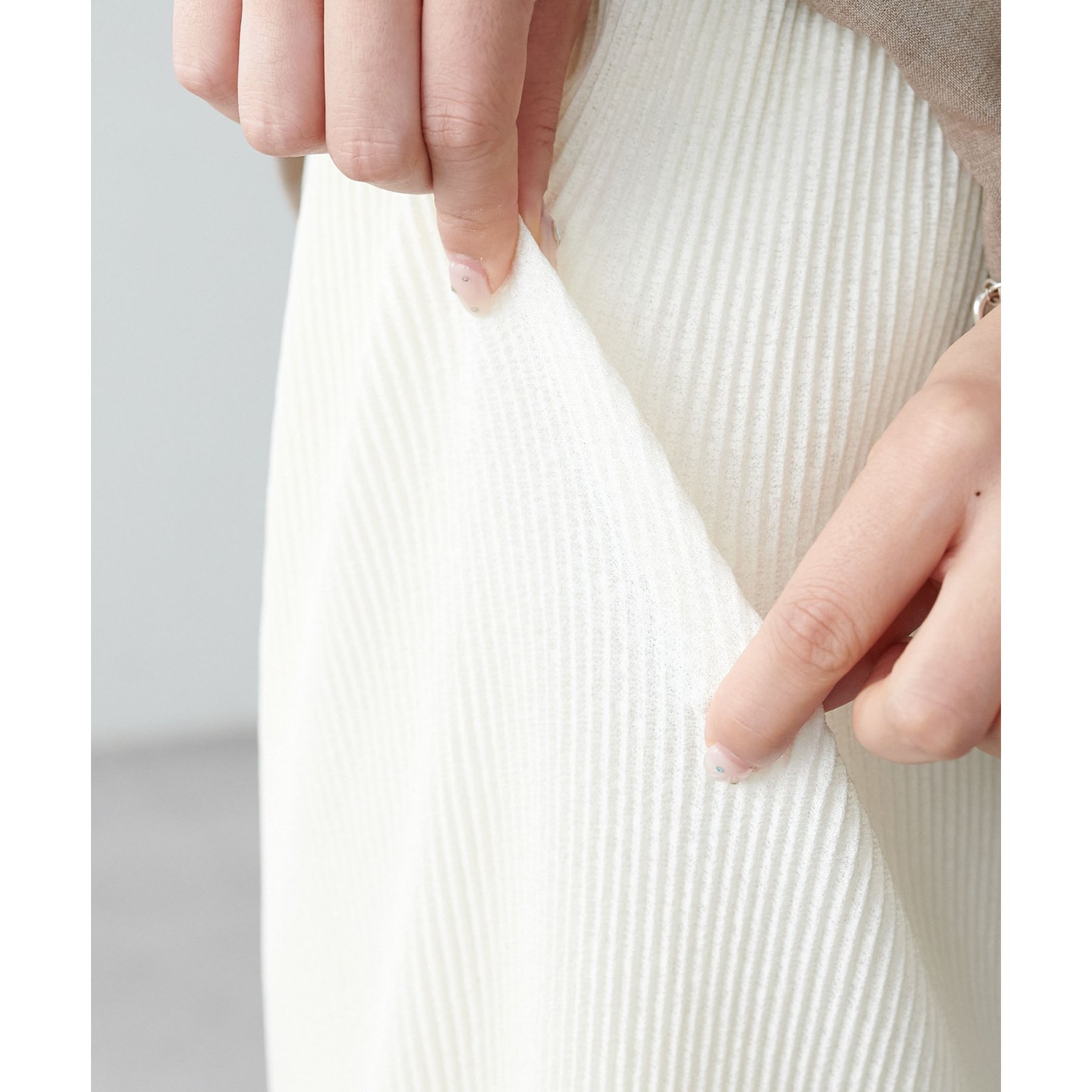 縦のラインを強調する細かなプリーツですっきりとした印象に