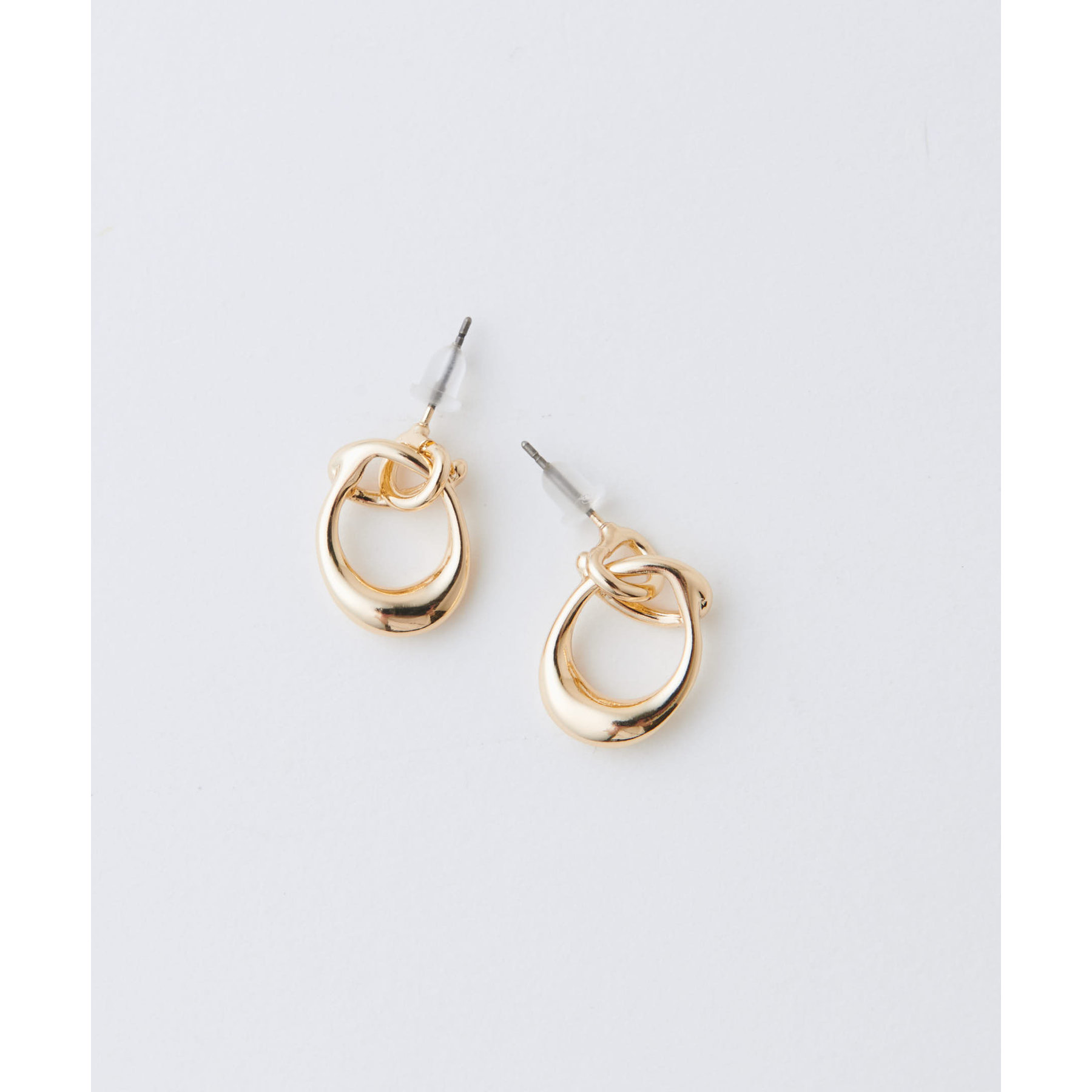 くるんとひねりの効いたフォルムが印象的な、カーリーサークルピアス。