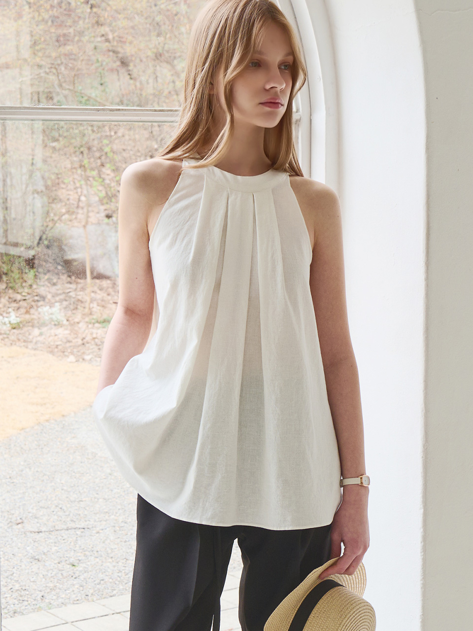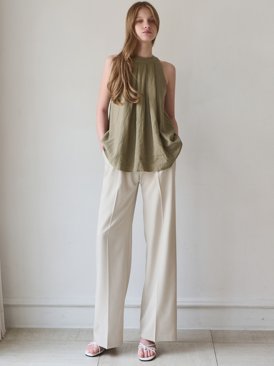 Halter linen sleeveless top_2 Colors