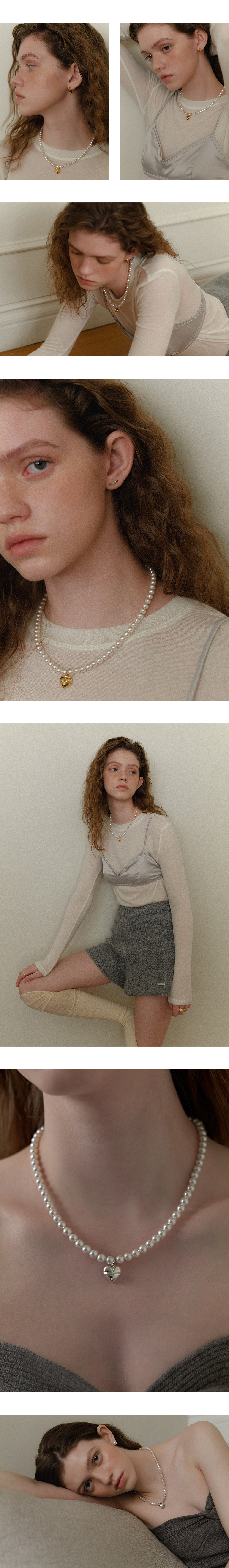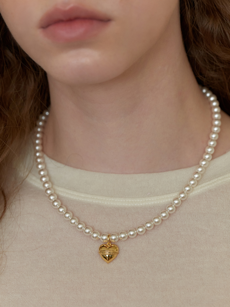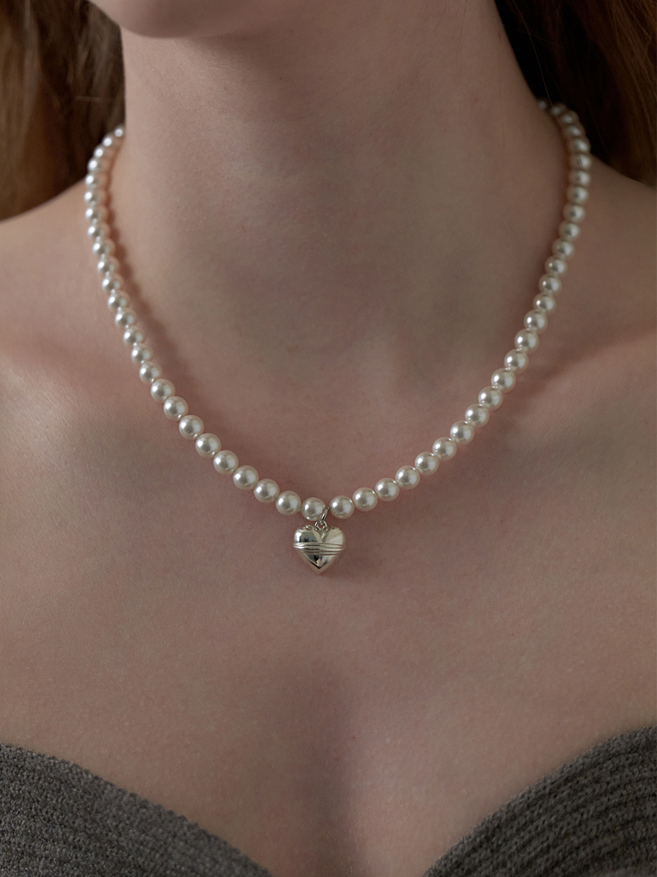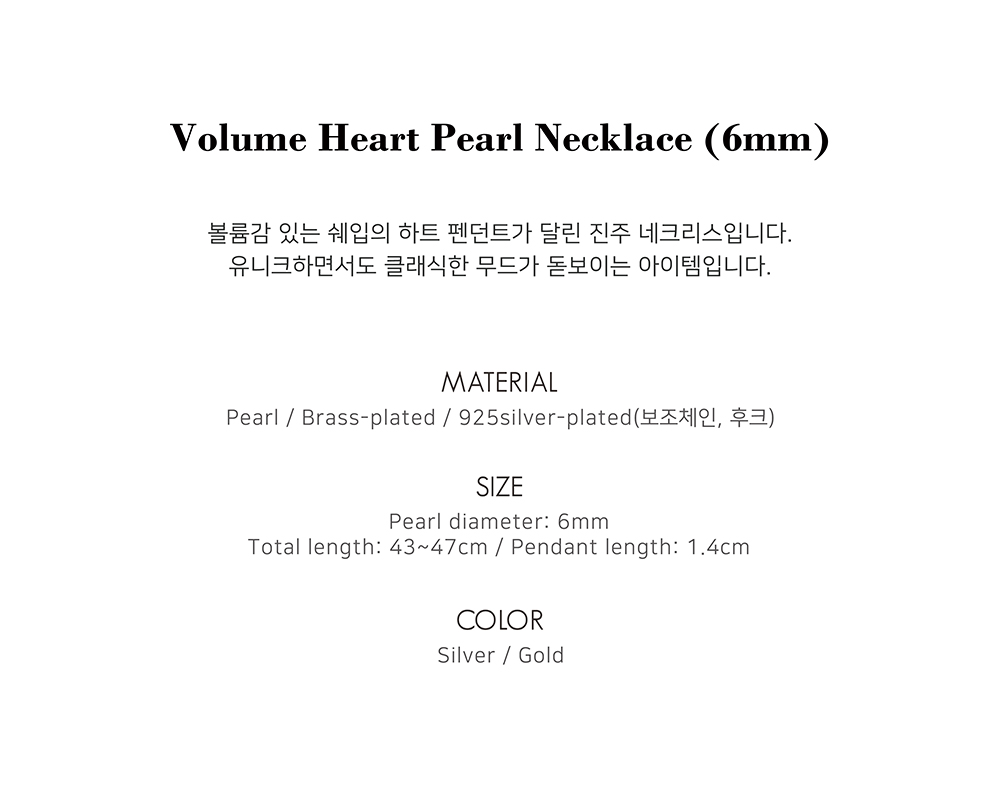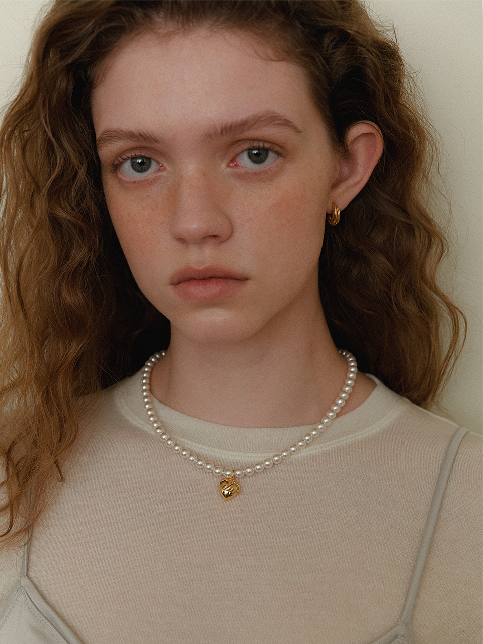 Volume Heart Pearl Necklace (6mm)(2color)