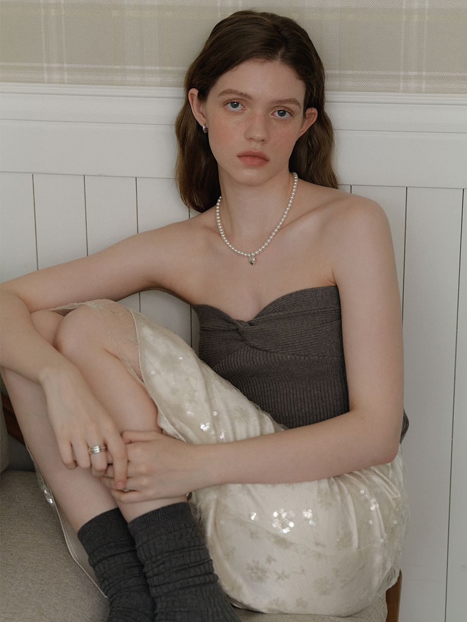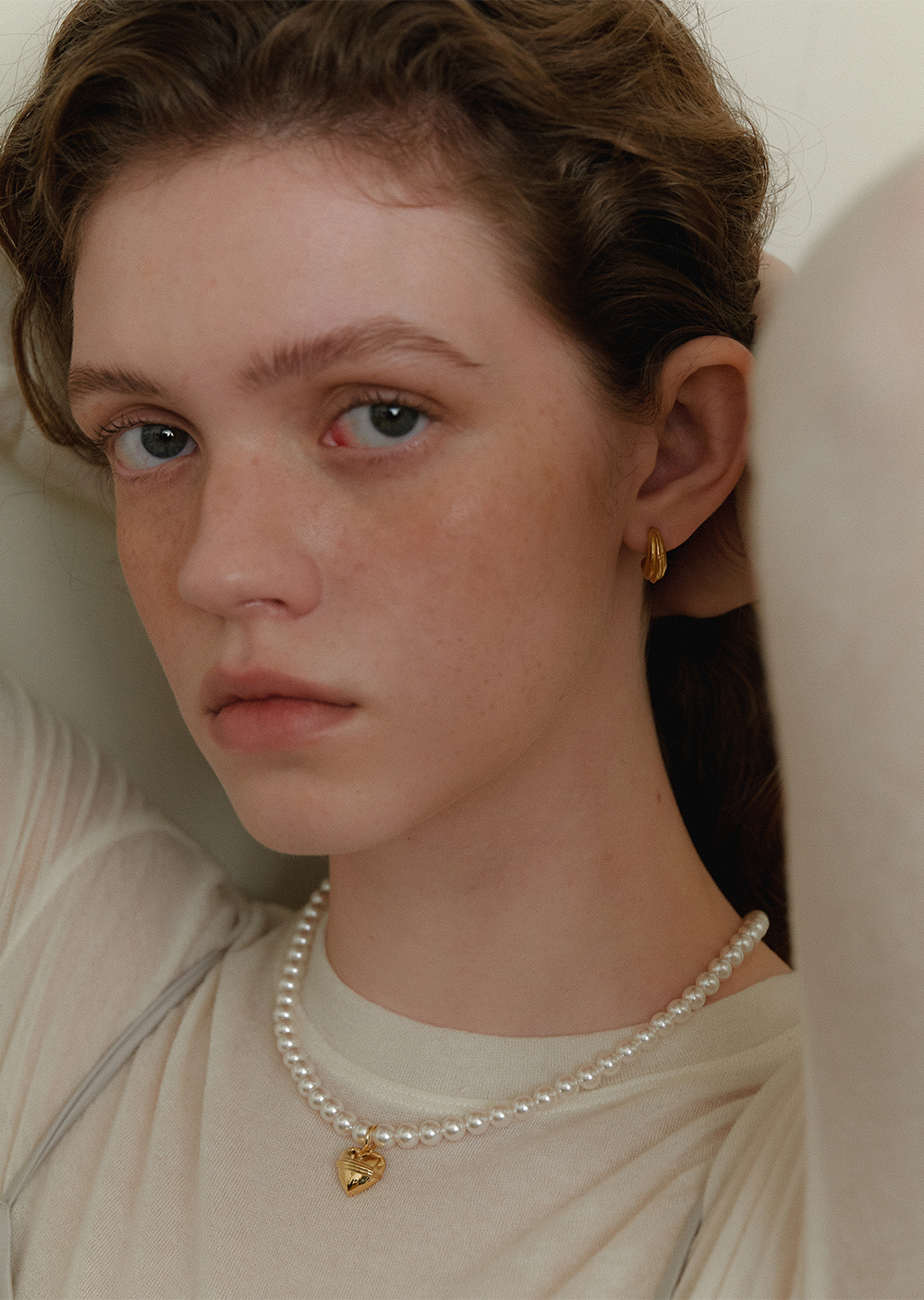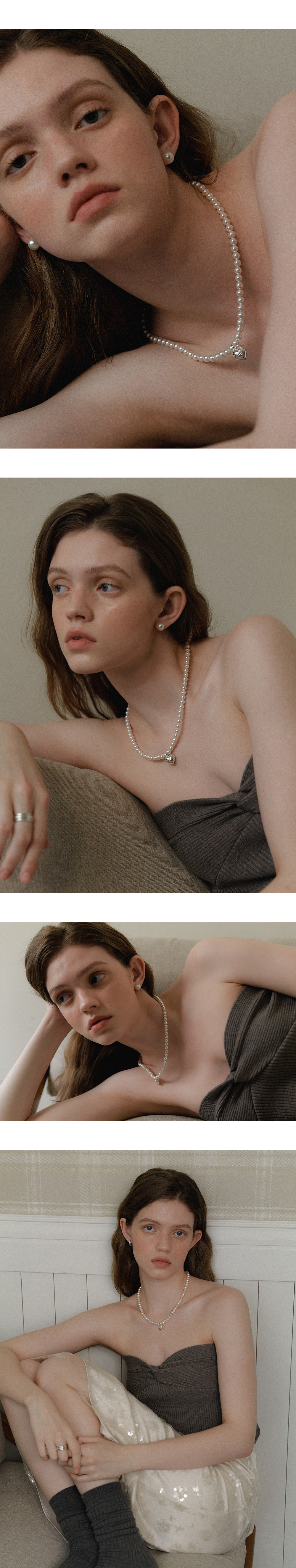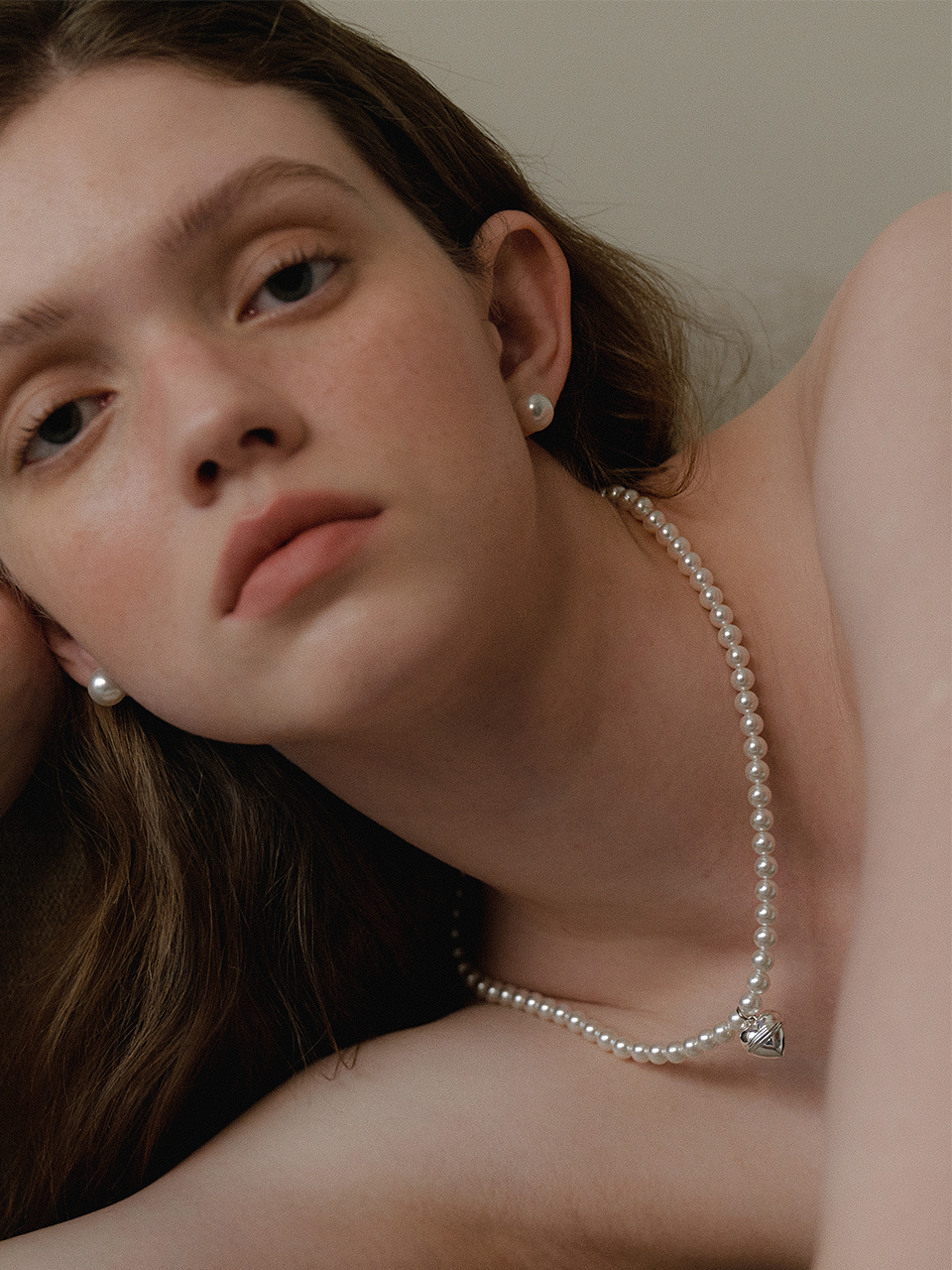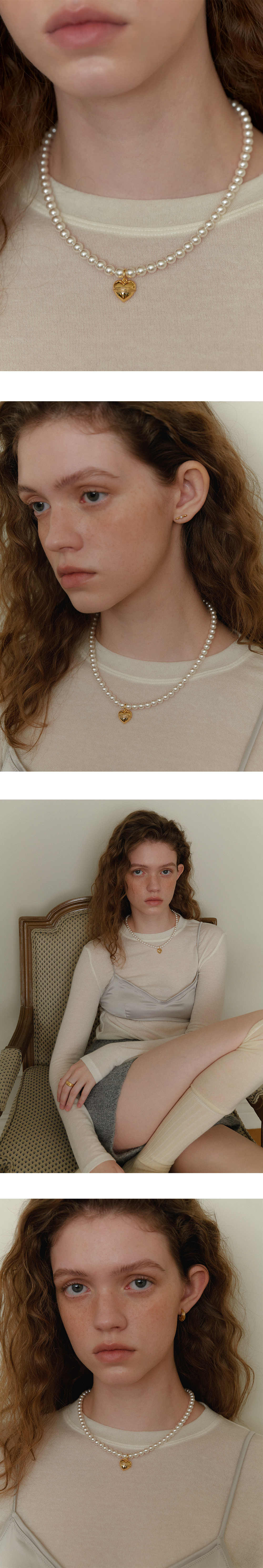 Volume Heart Pearl Necklace (6mm)(2color)