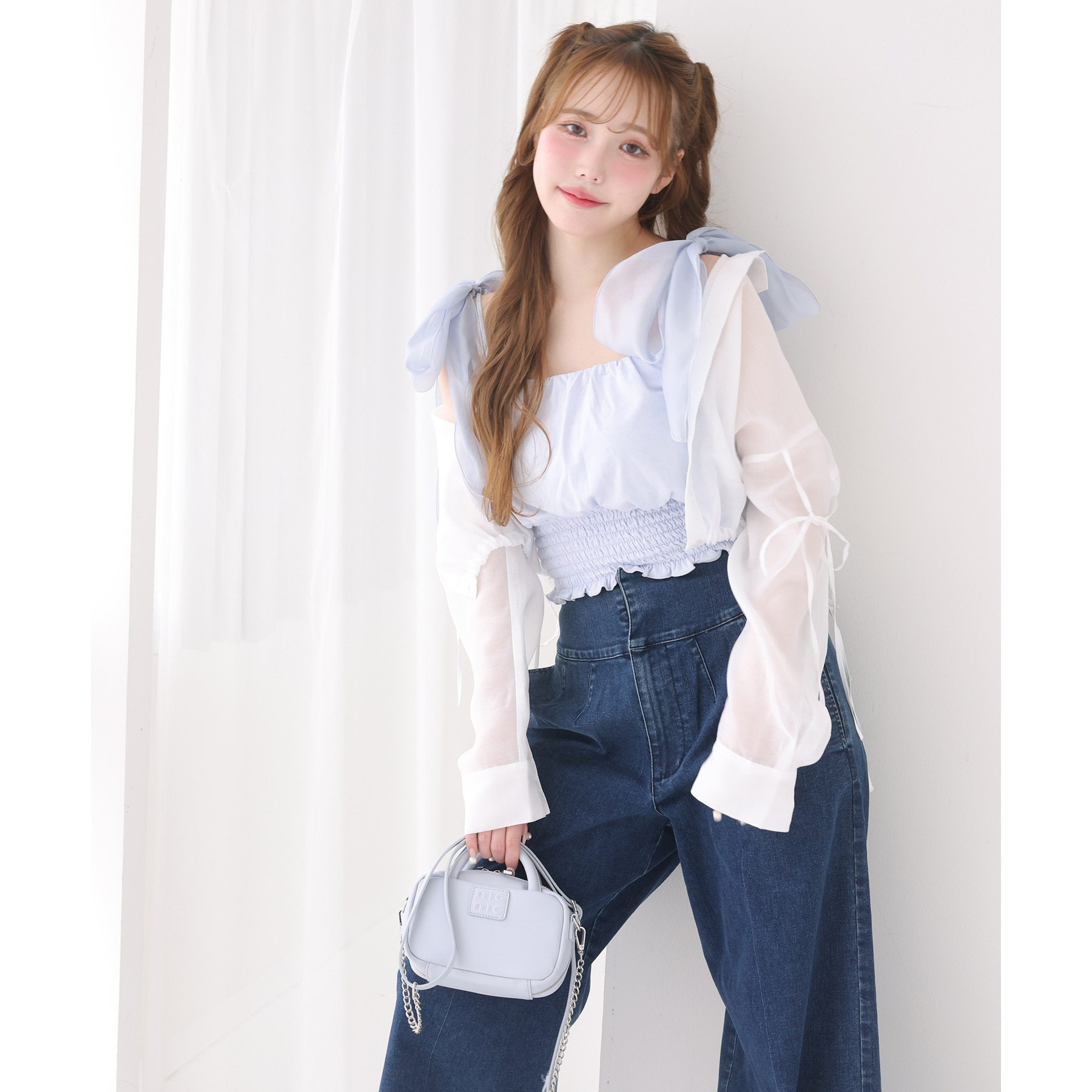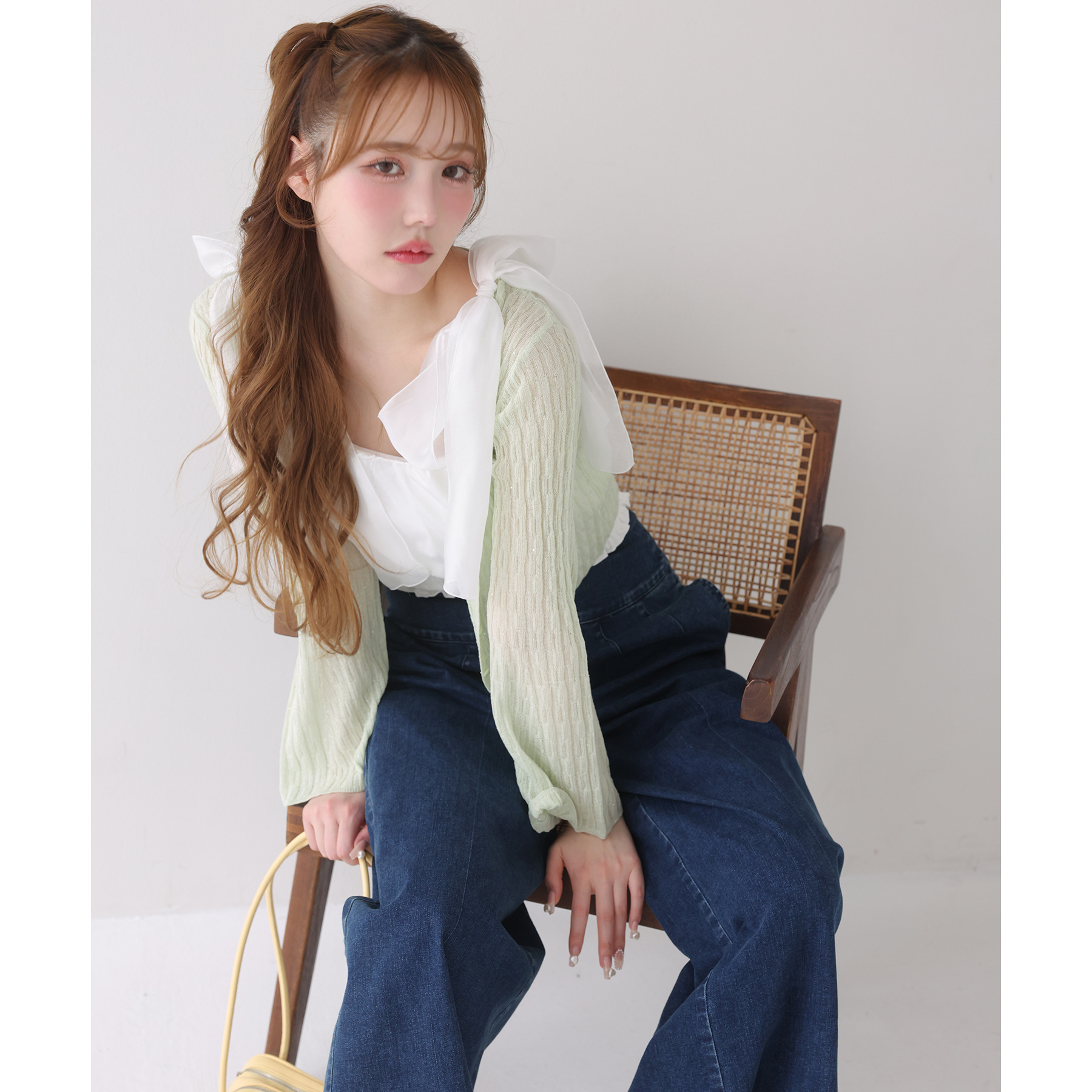 シアー羽織を羽織れば、こなれ感の出るコーデに。