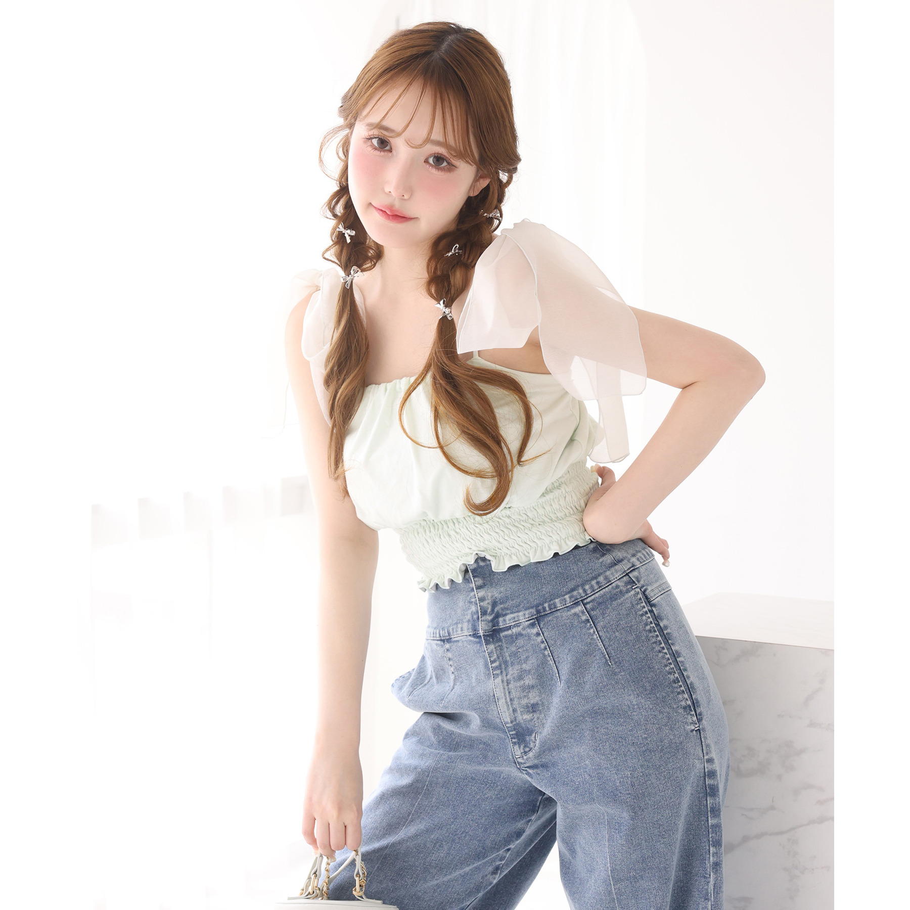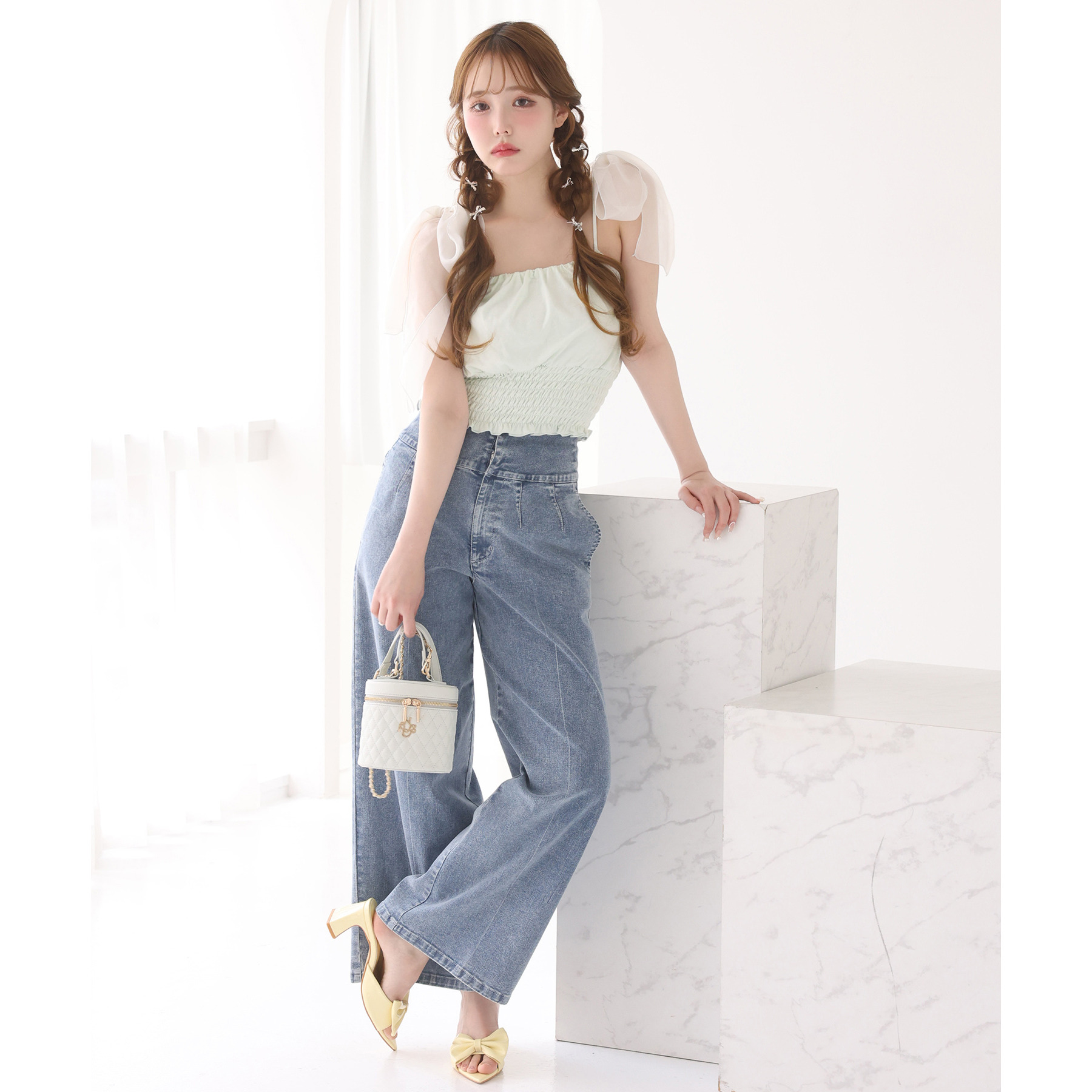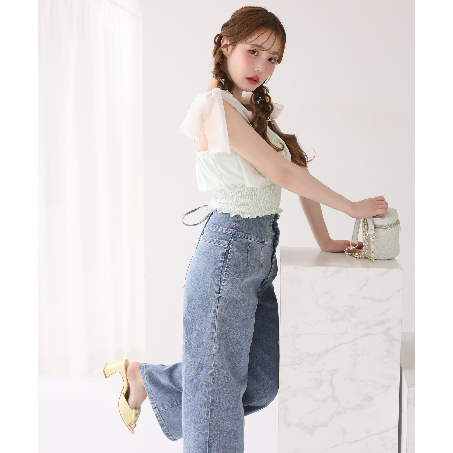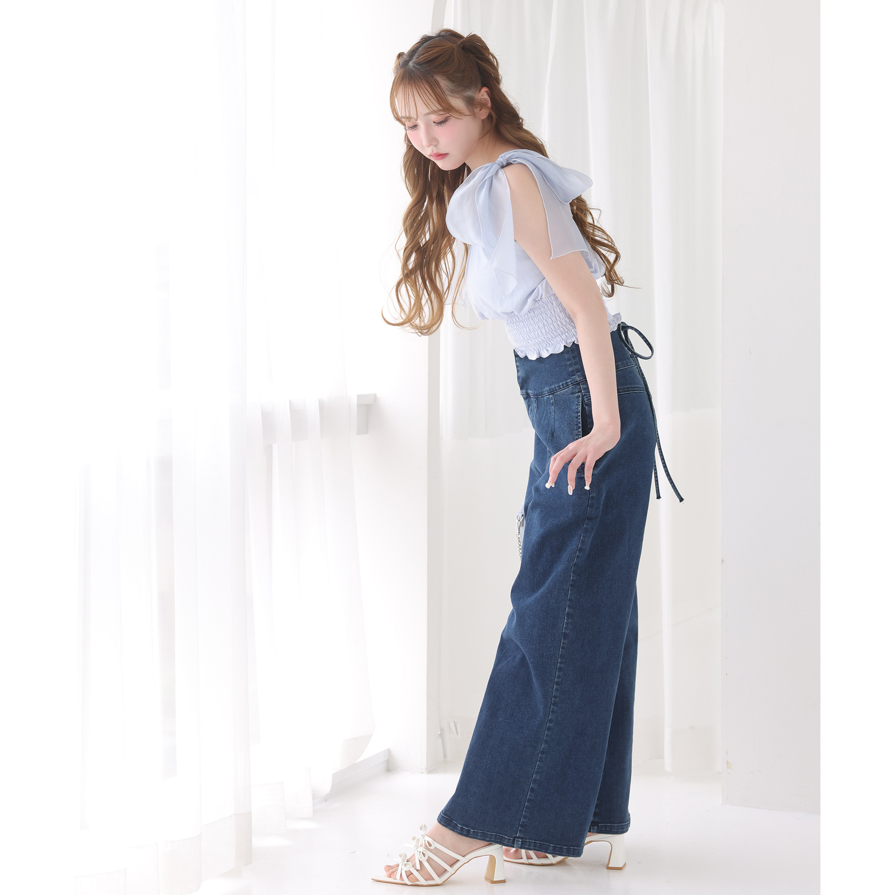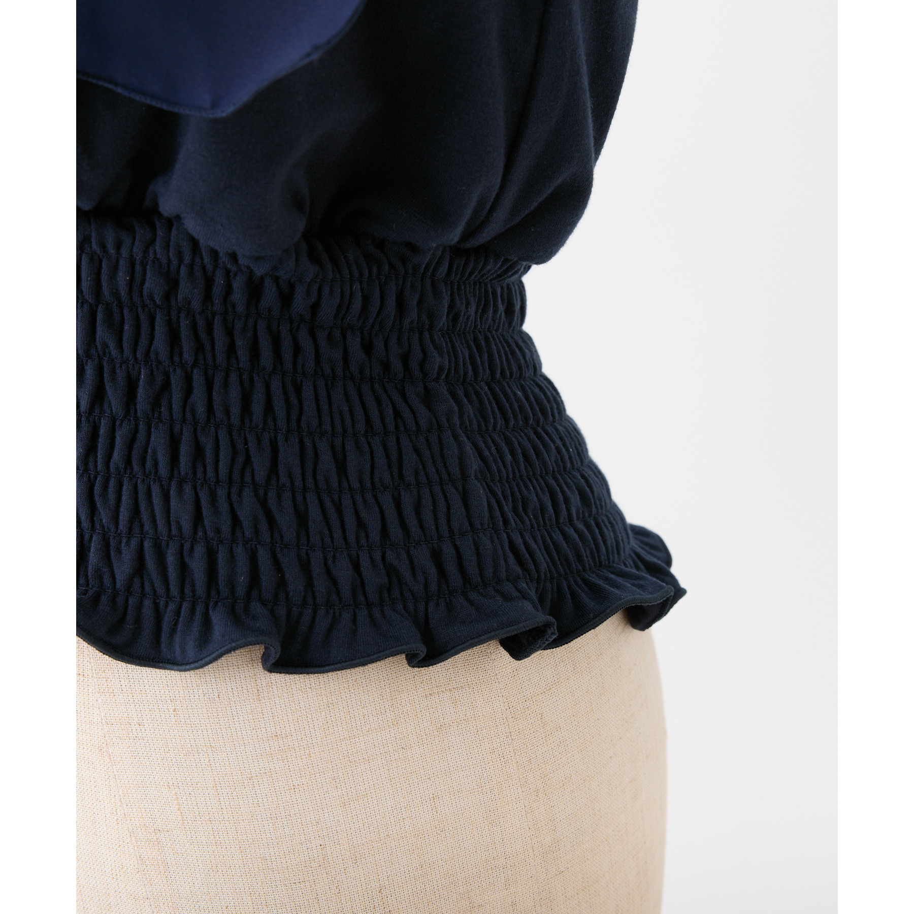ウエストはシャーリングデザインになっているので、スタイルアップ効果も◎