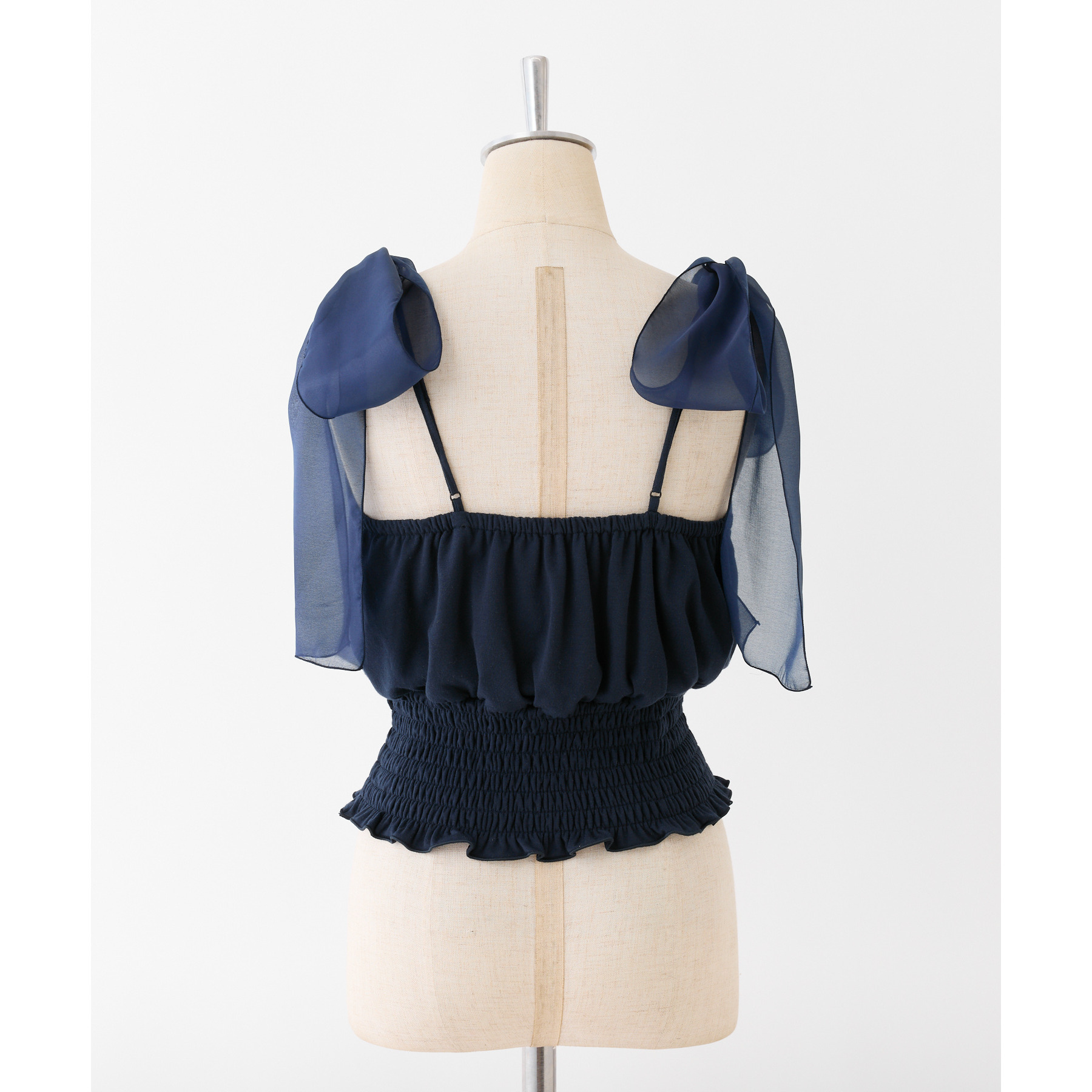 肩のリボンは取り外しができ、肩紐アジャスターで調節できます。