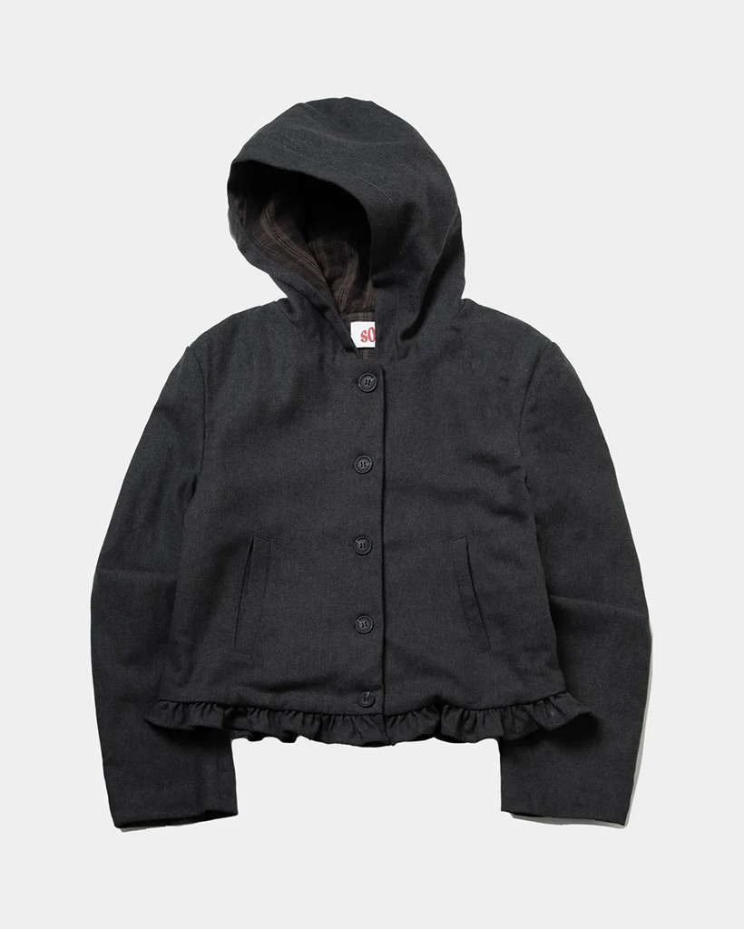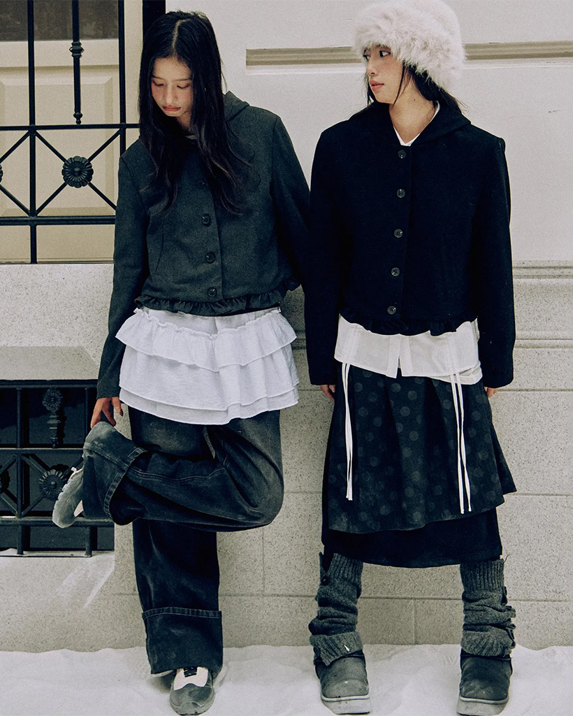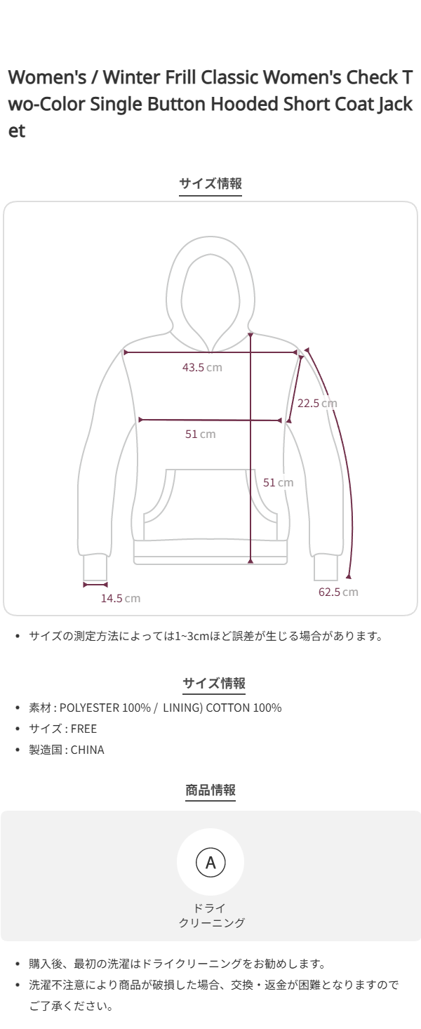 Winter Frill Classic Women's Check Two-Color Single Button Hooded Short Coat Jacket _2COLOR