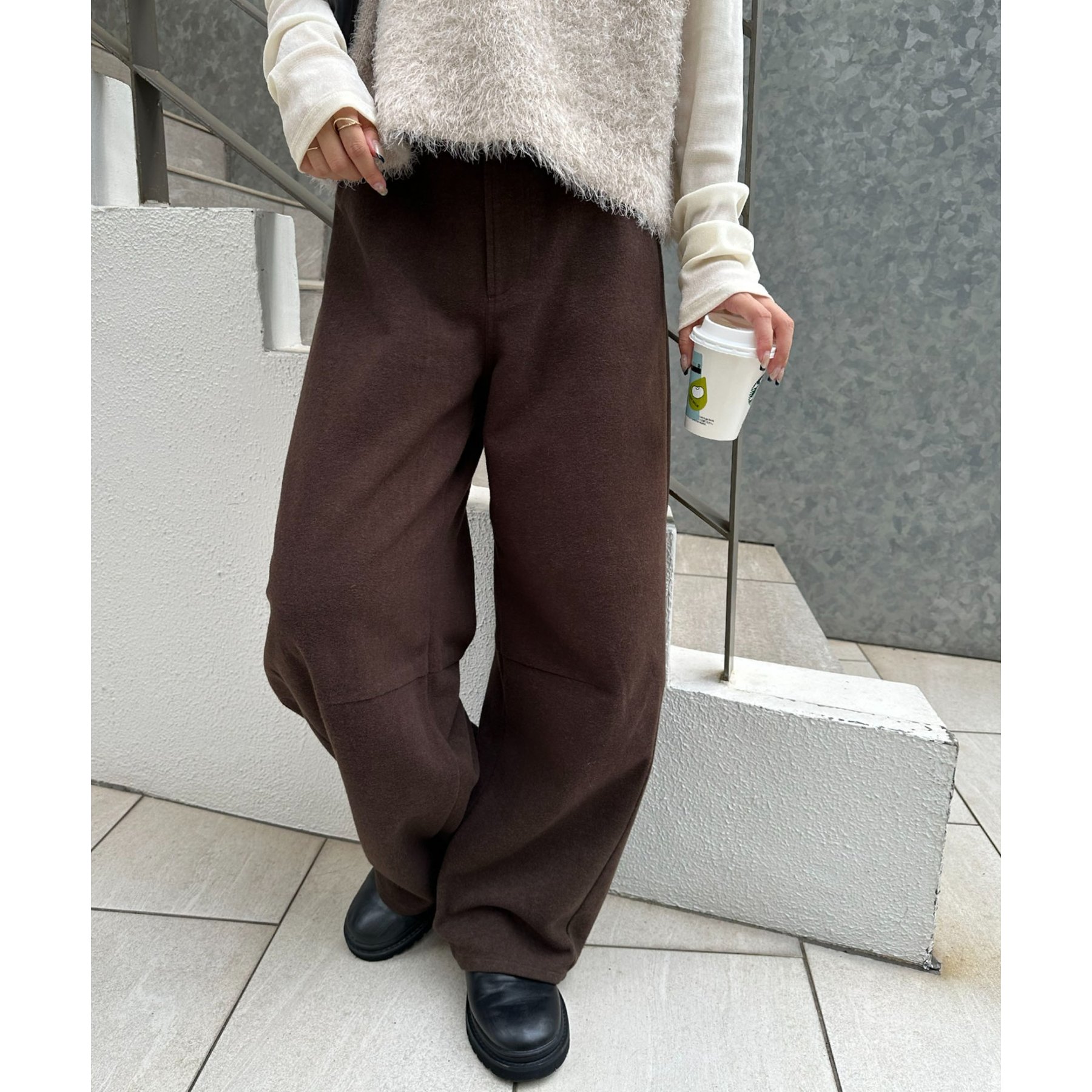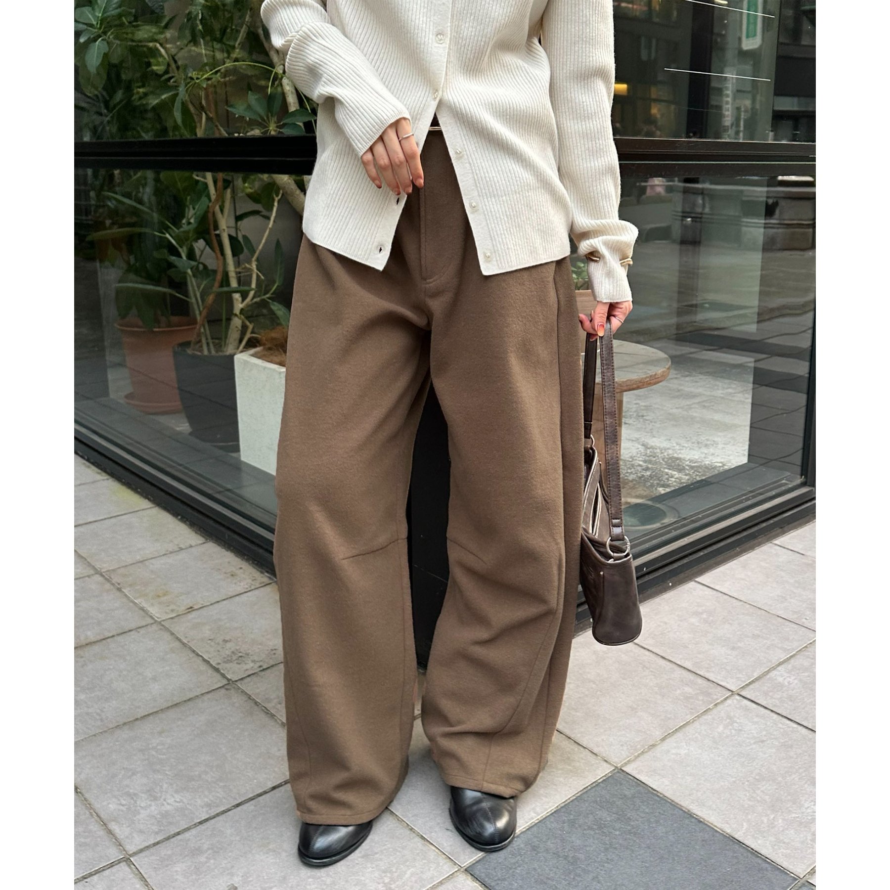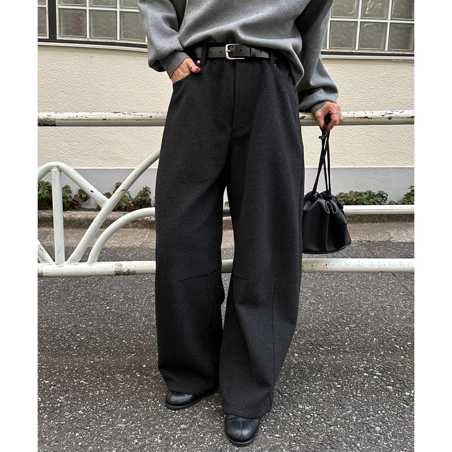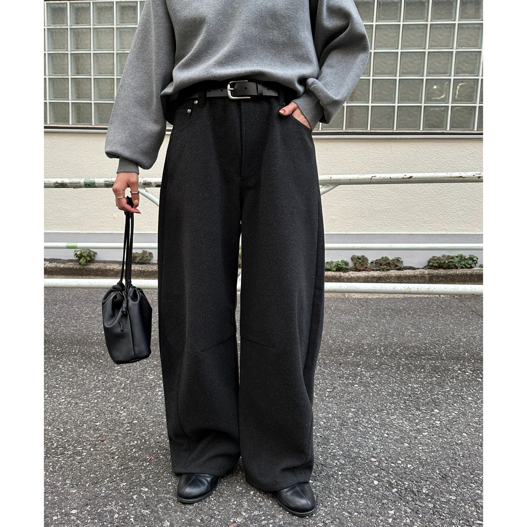 上品なウールライク素材で仕立てた、程よく丸みのあるバレルシルエットが魅力のユニセックスパンツ。