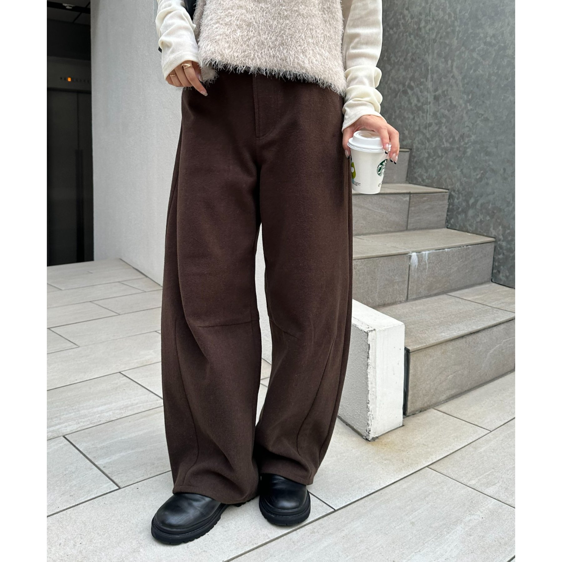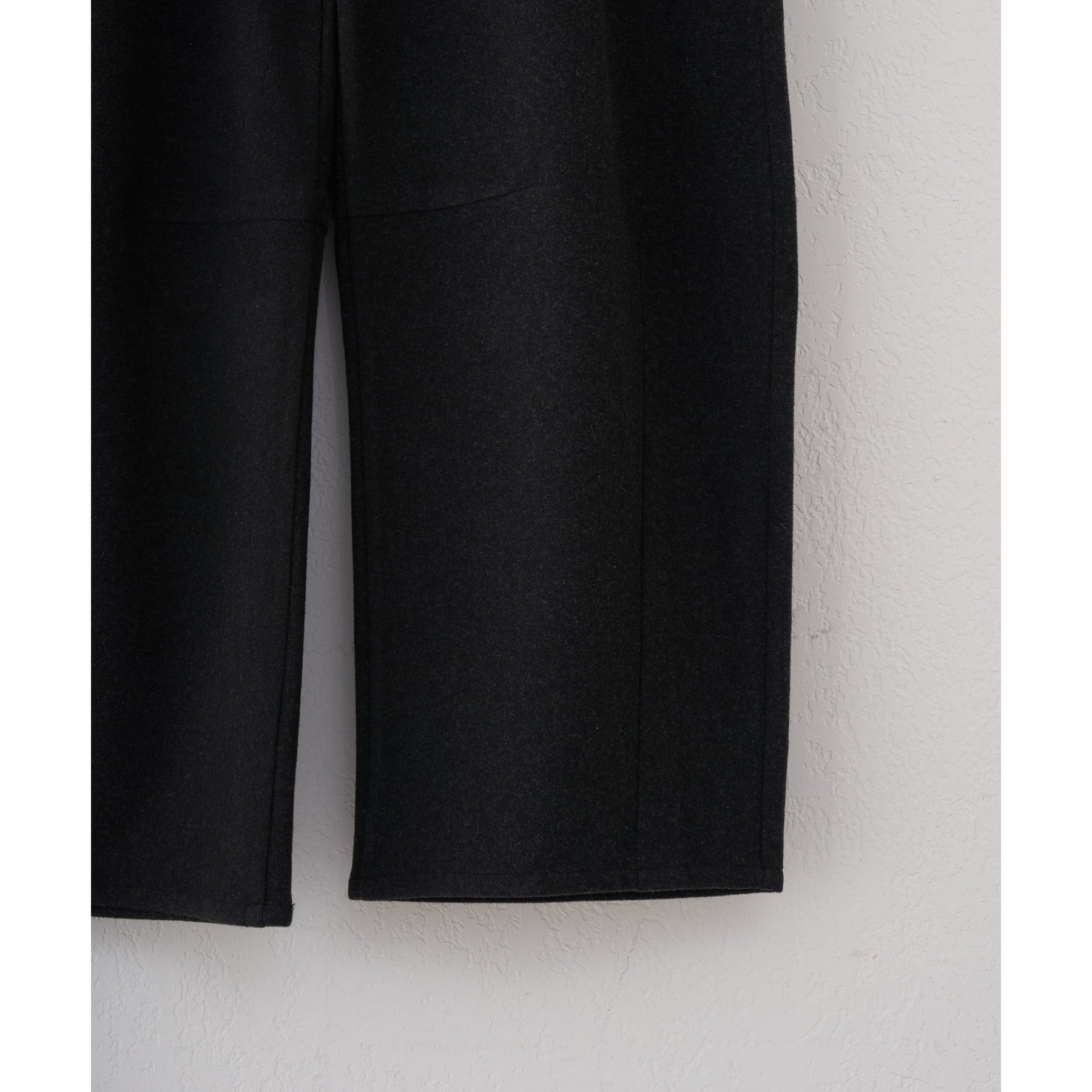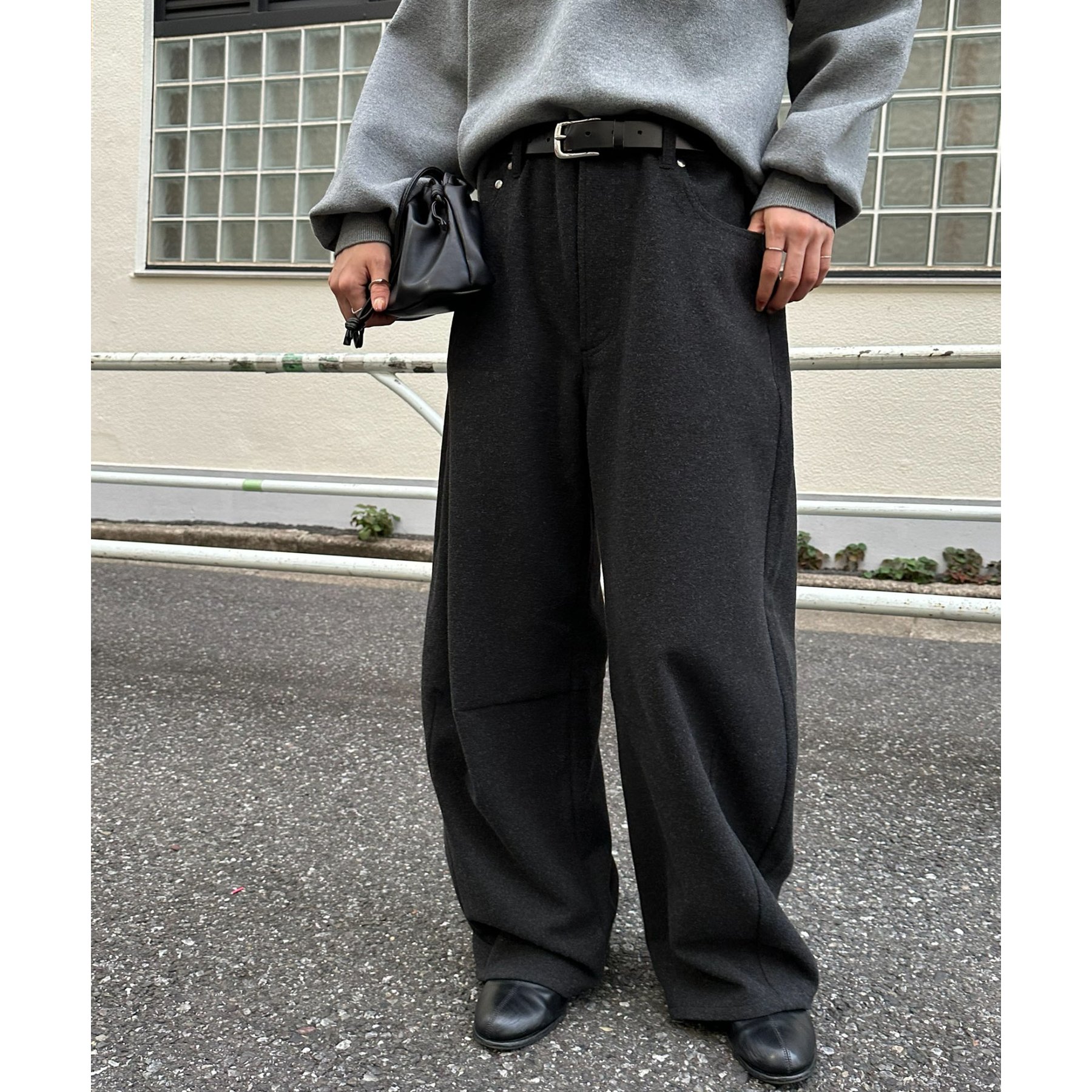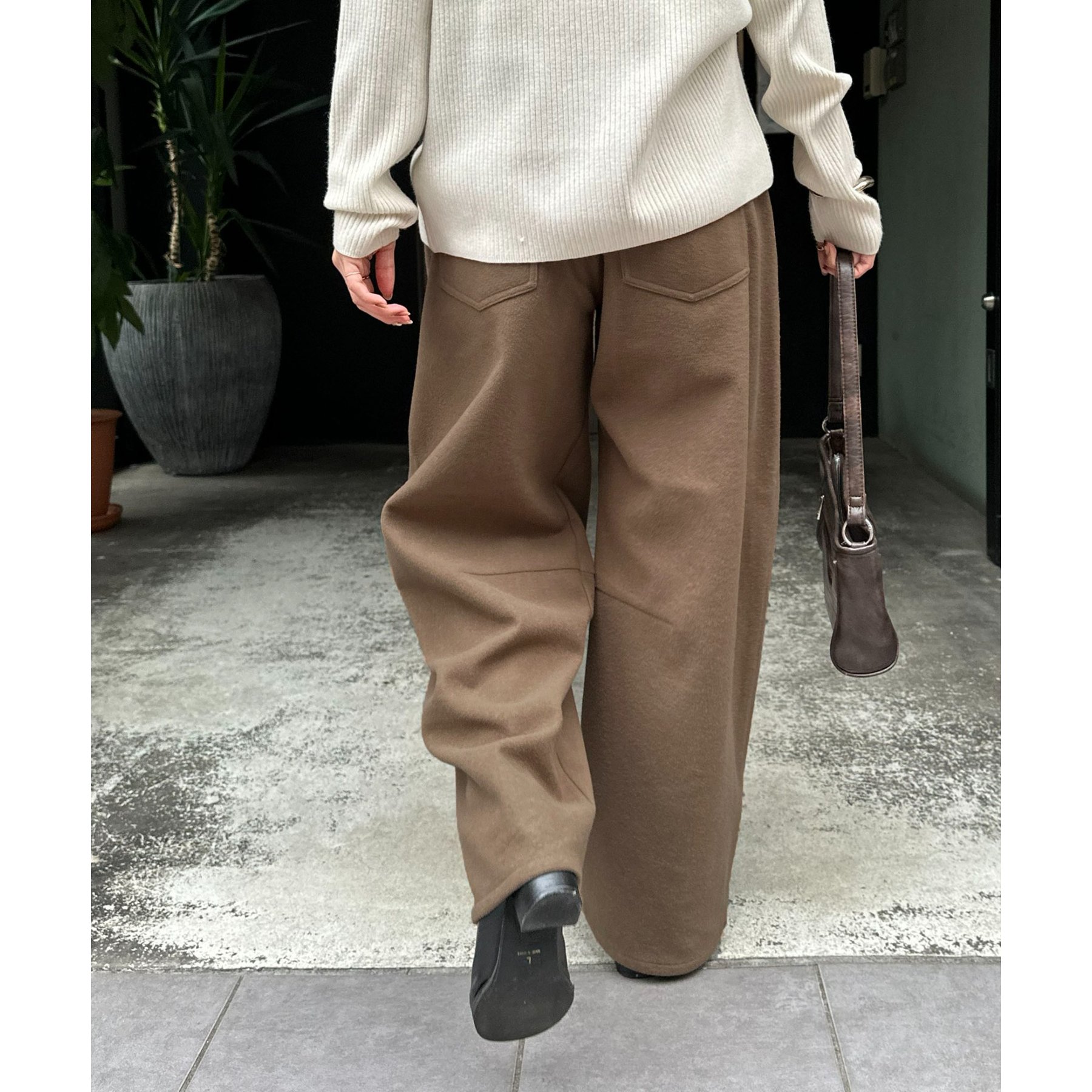 上品なウールライク素材で仕立てた、程よく丸みのあるバレルシルエットが魅力のユニセックスパンツ。
